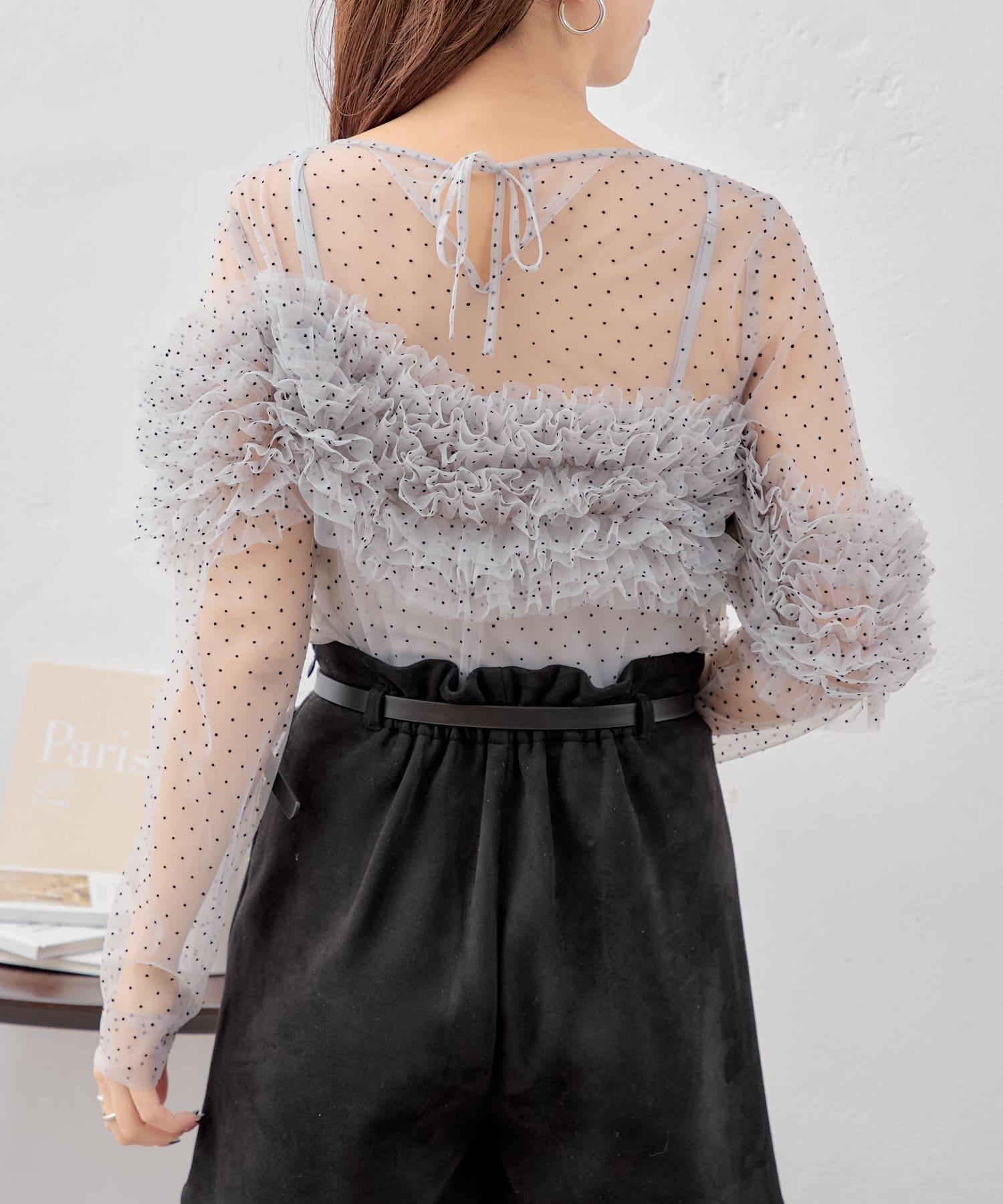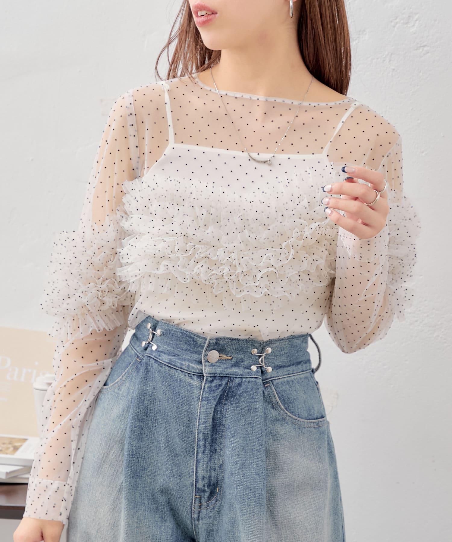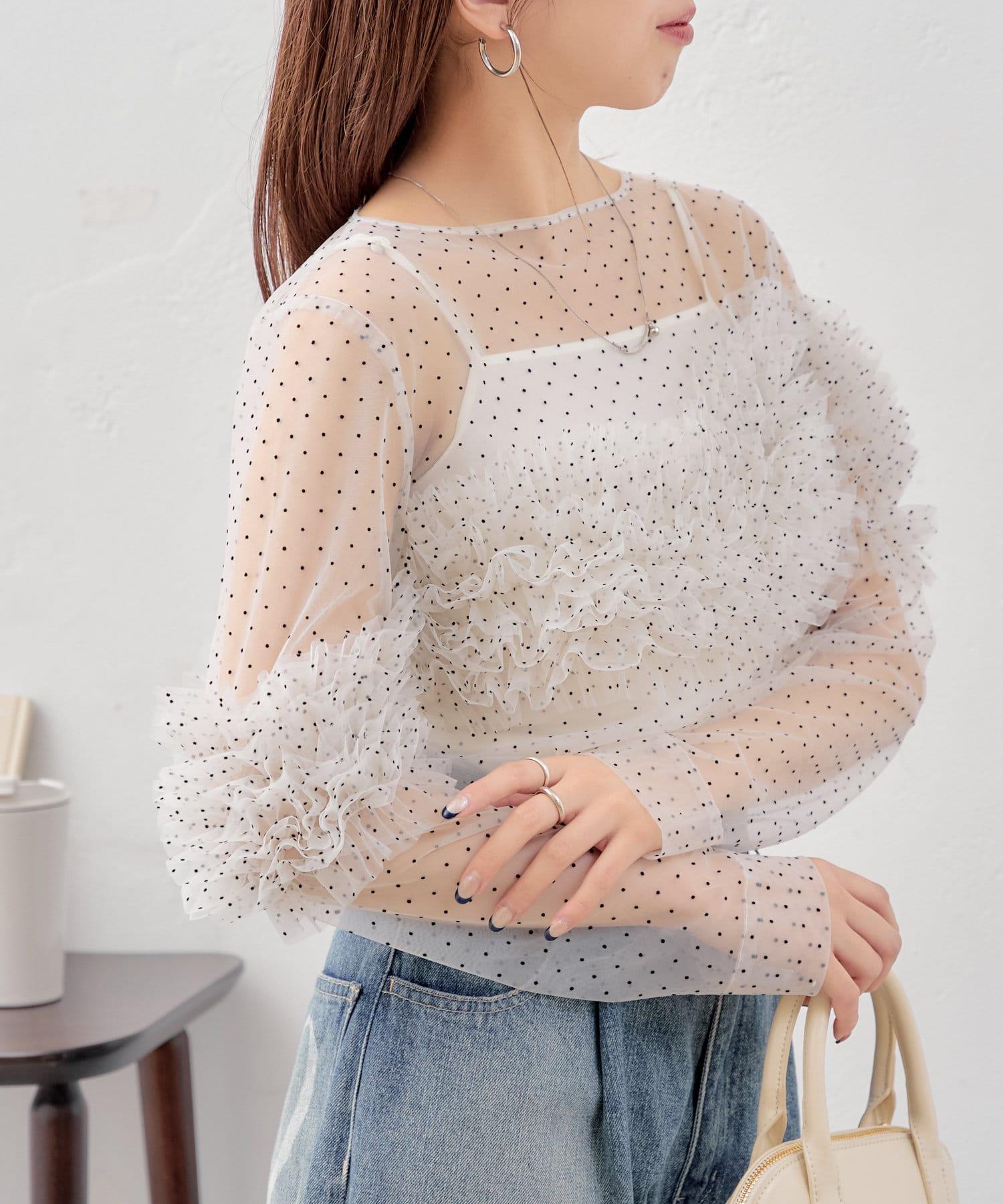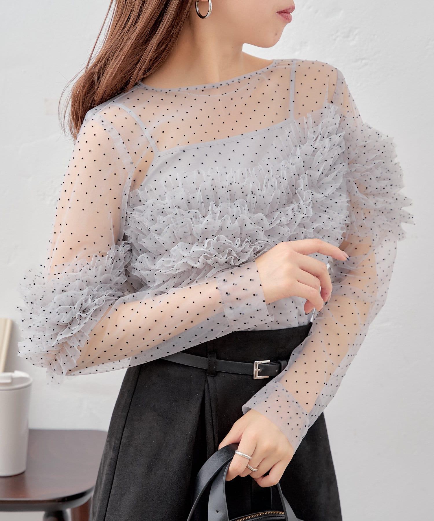 多用途薄紗上衣,帶有點狀圖案,適合多種疊穿風格