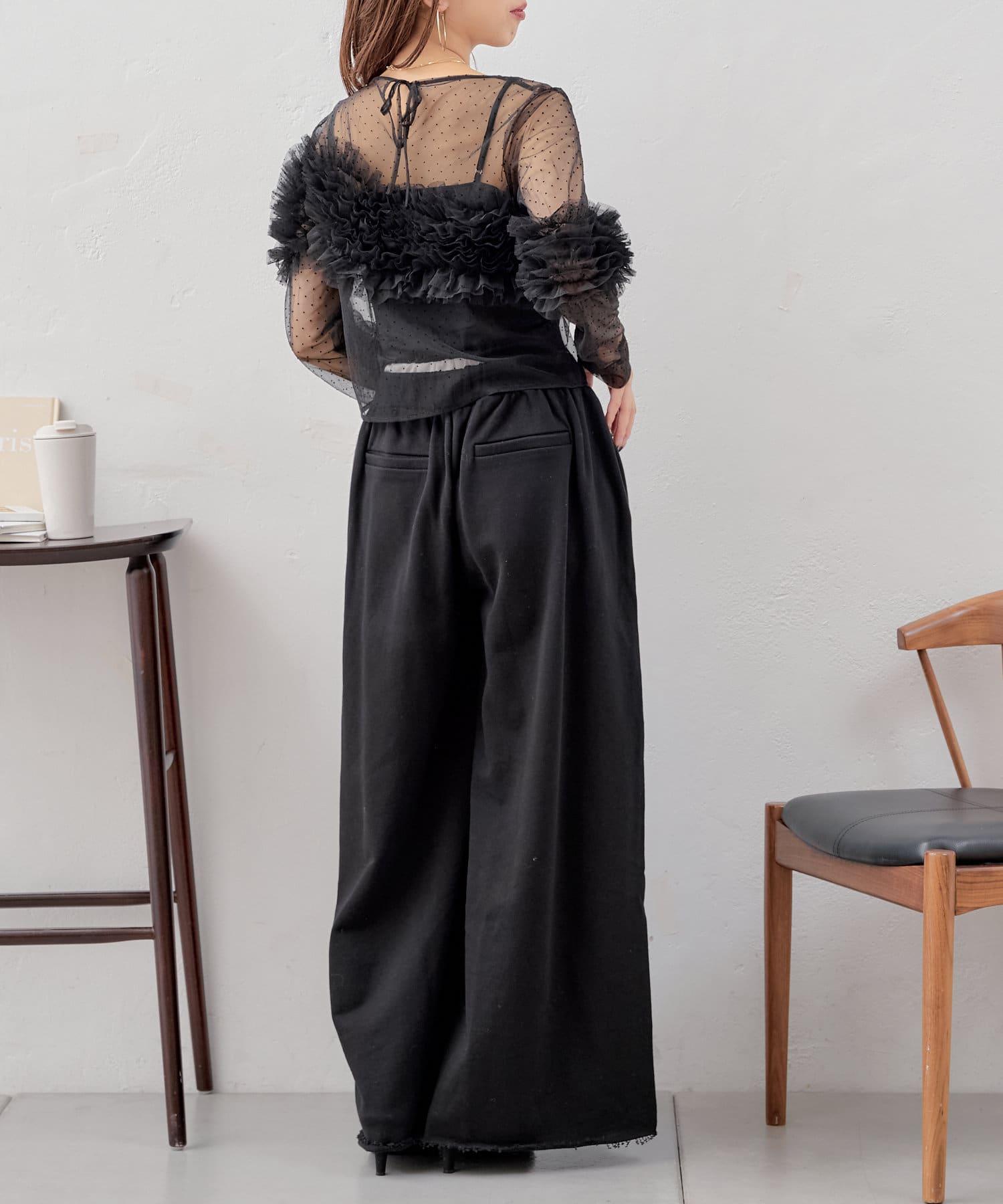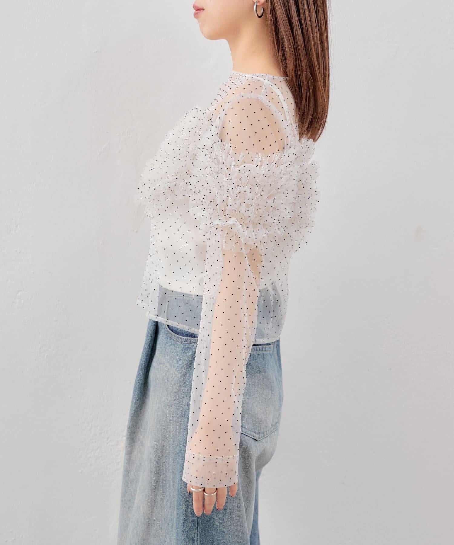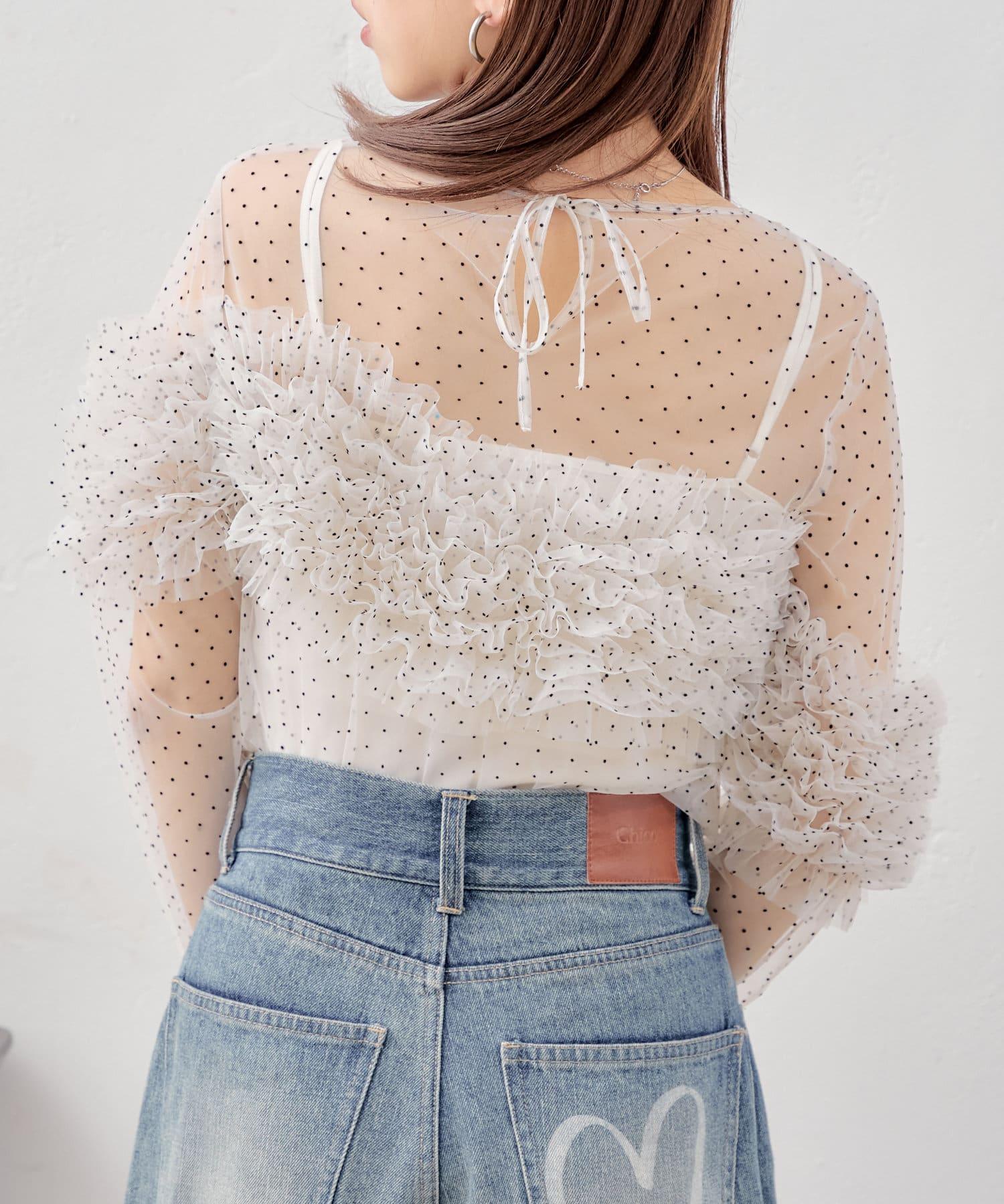 【Chico】立體荷葉邊網紗襯衫