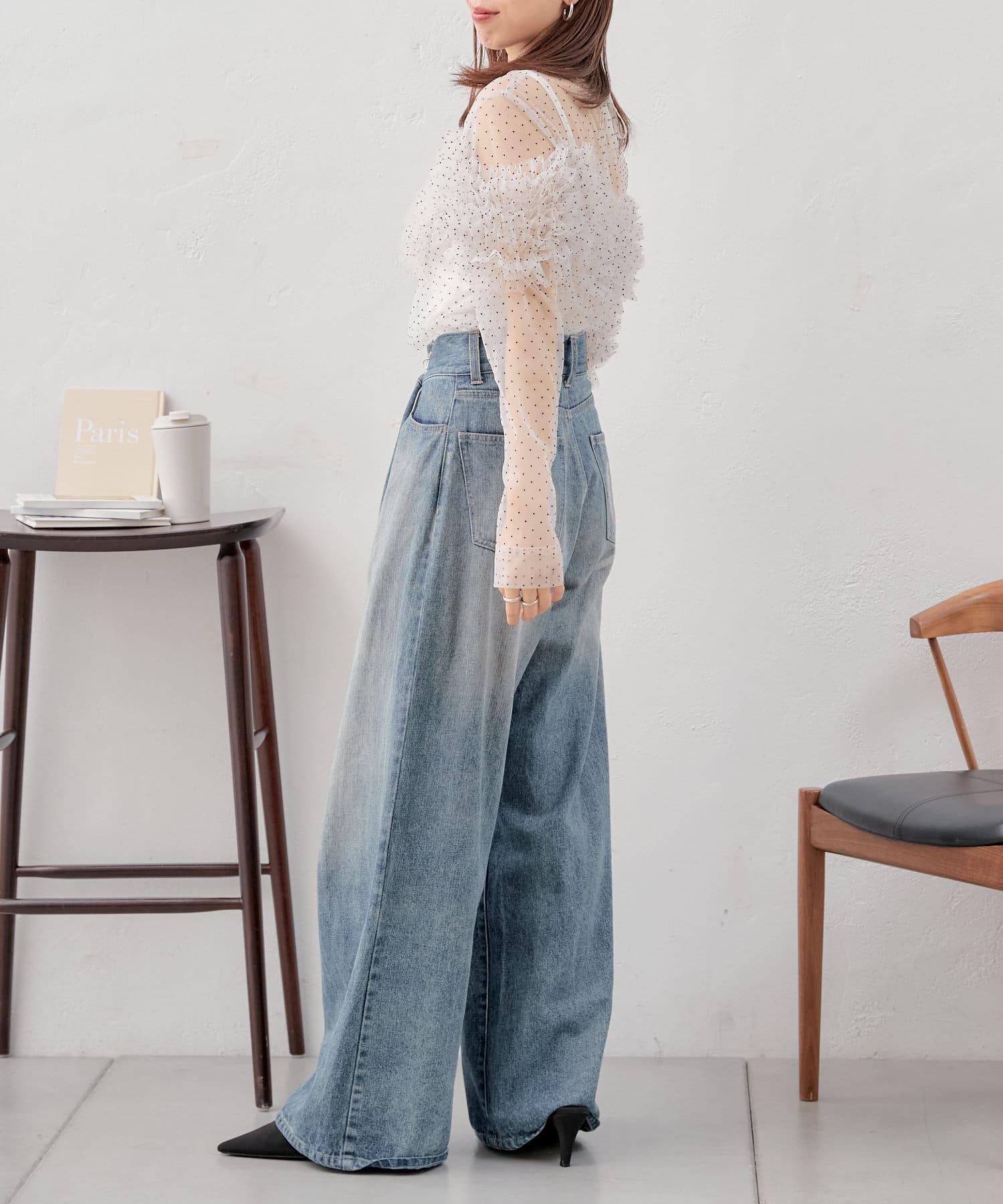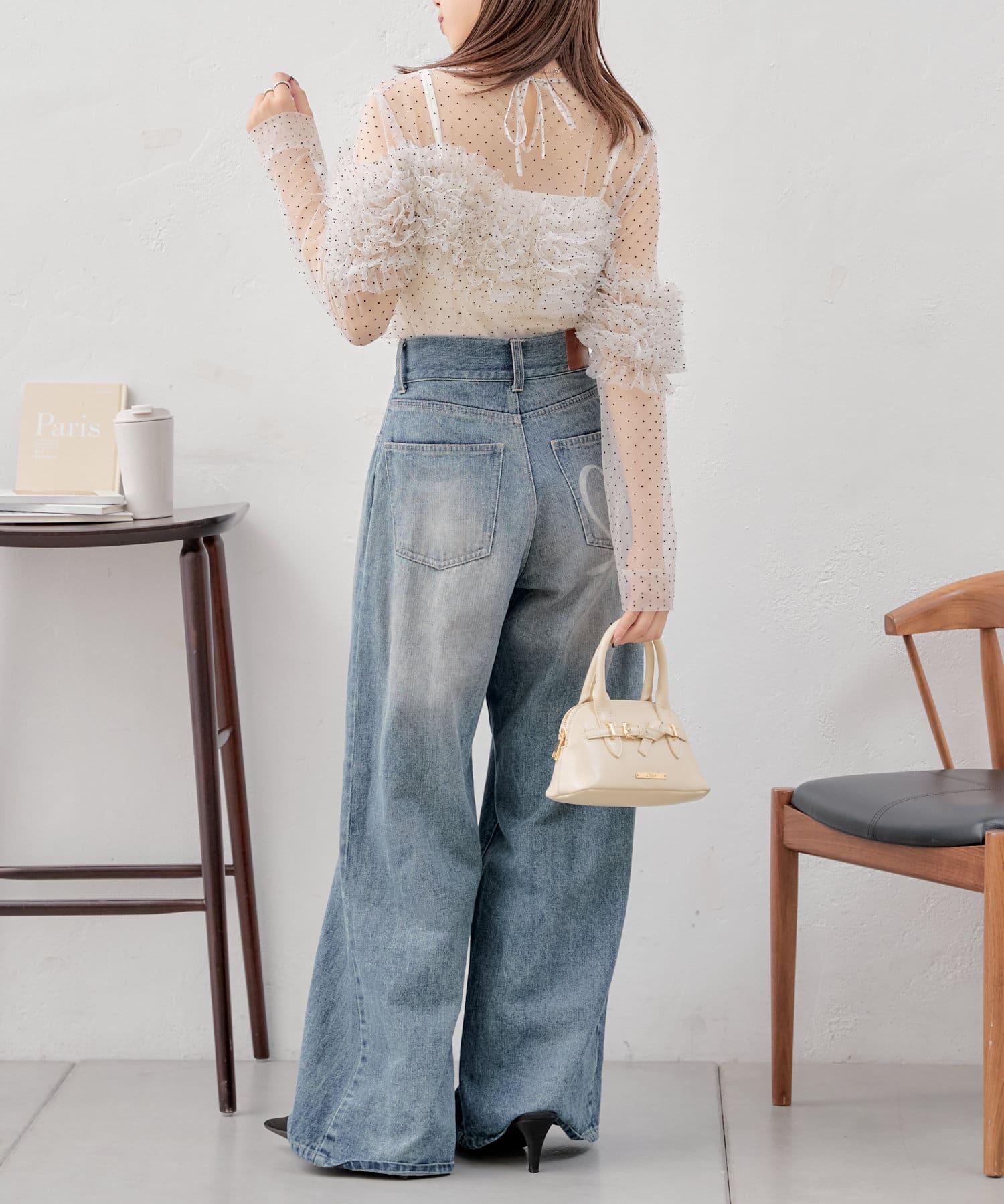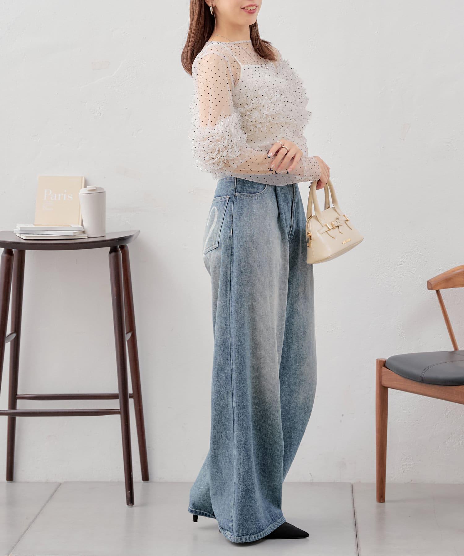 【Chico】立體荷葉邊網紗襯衫
