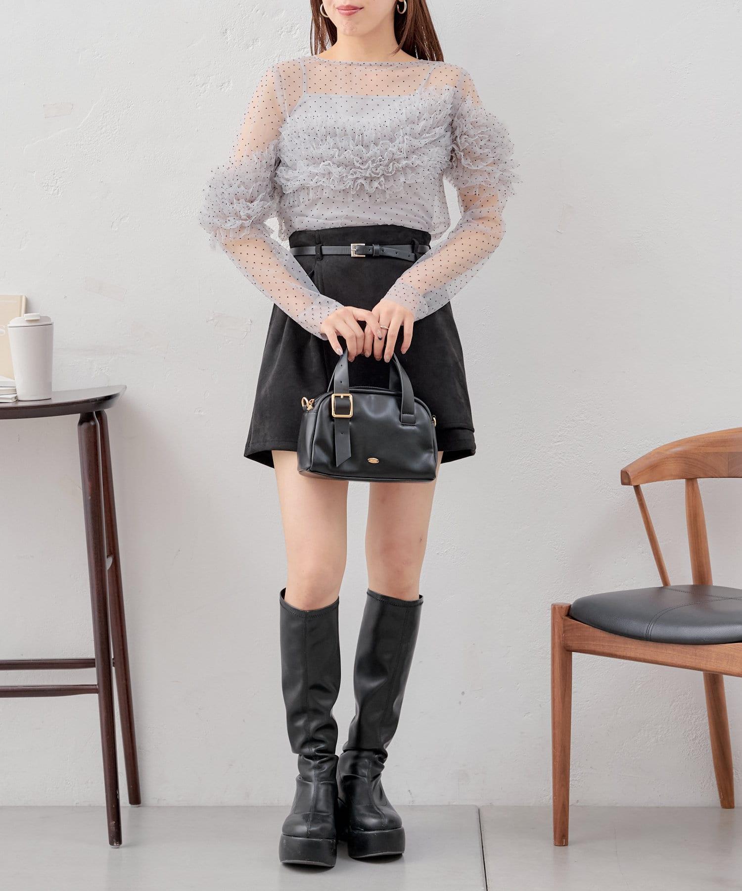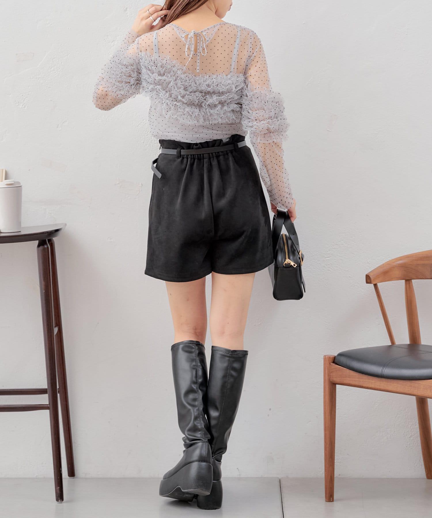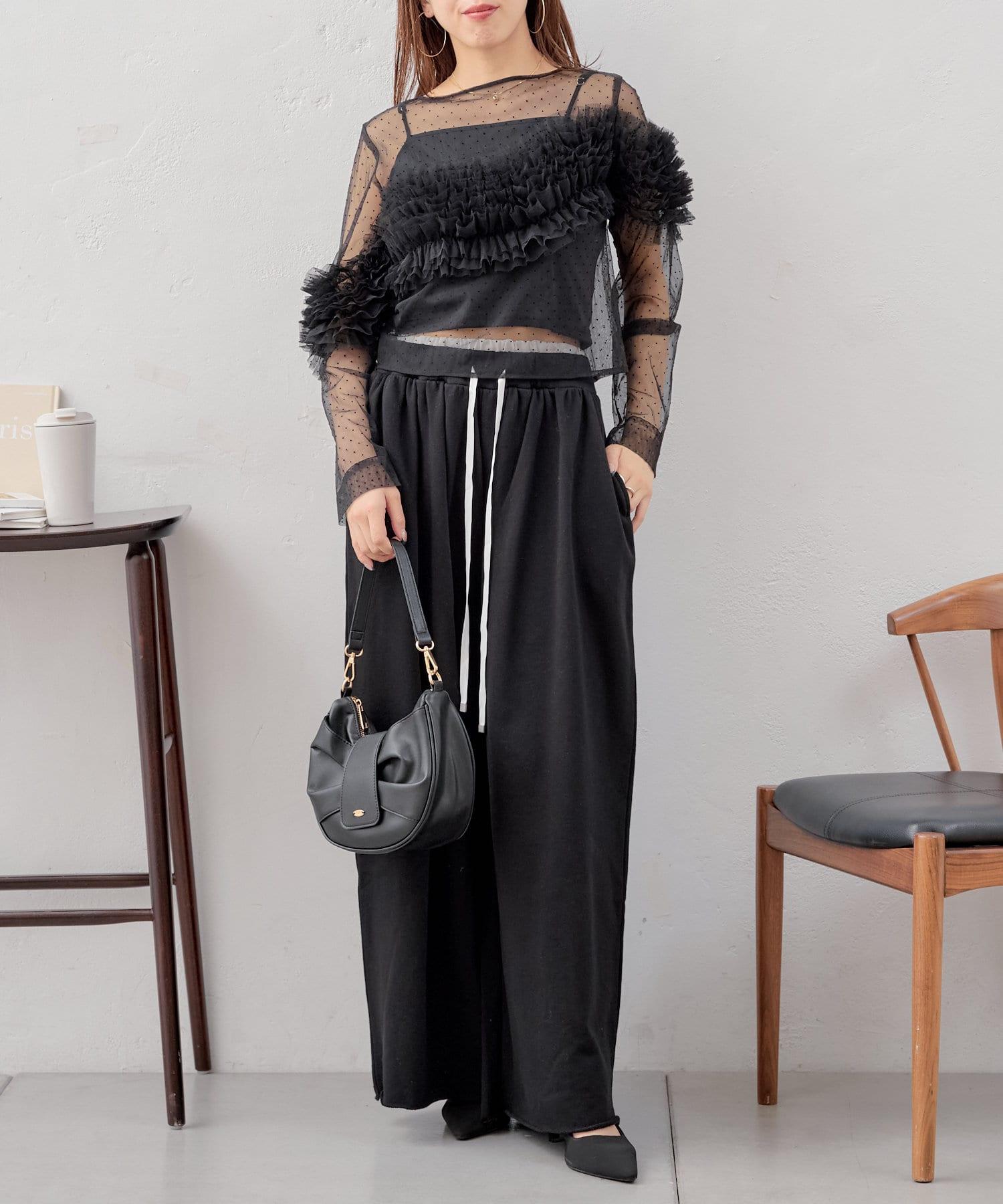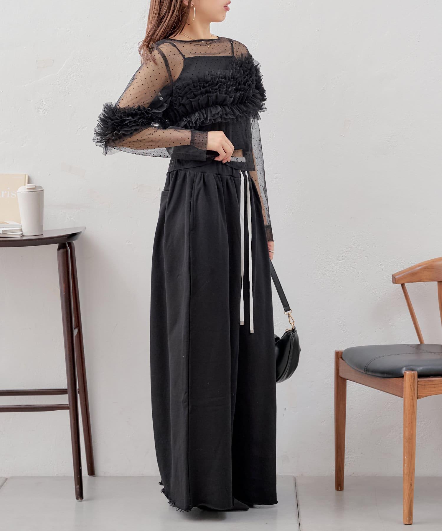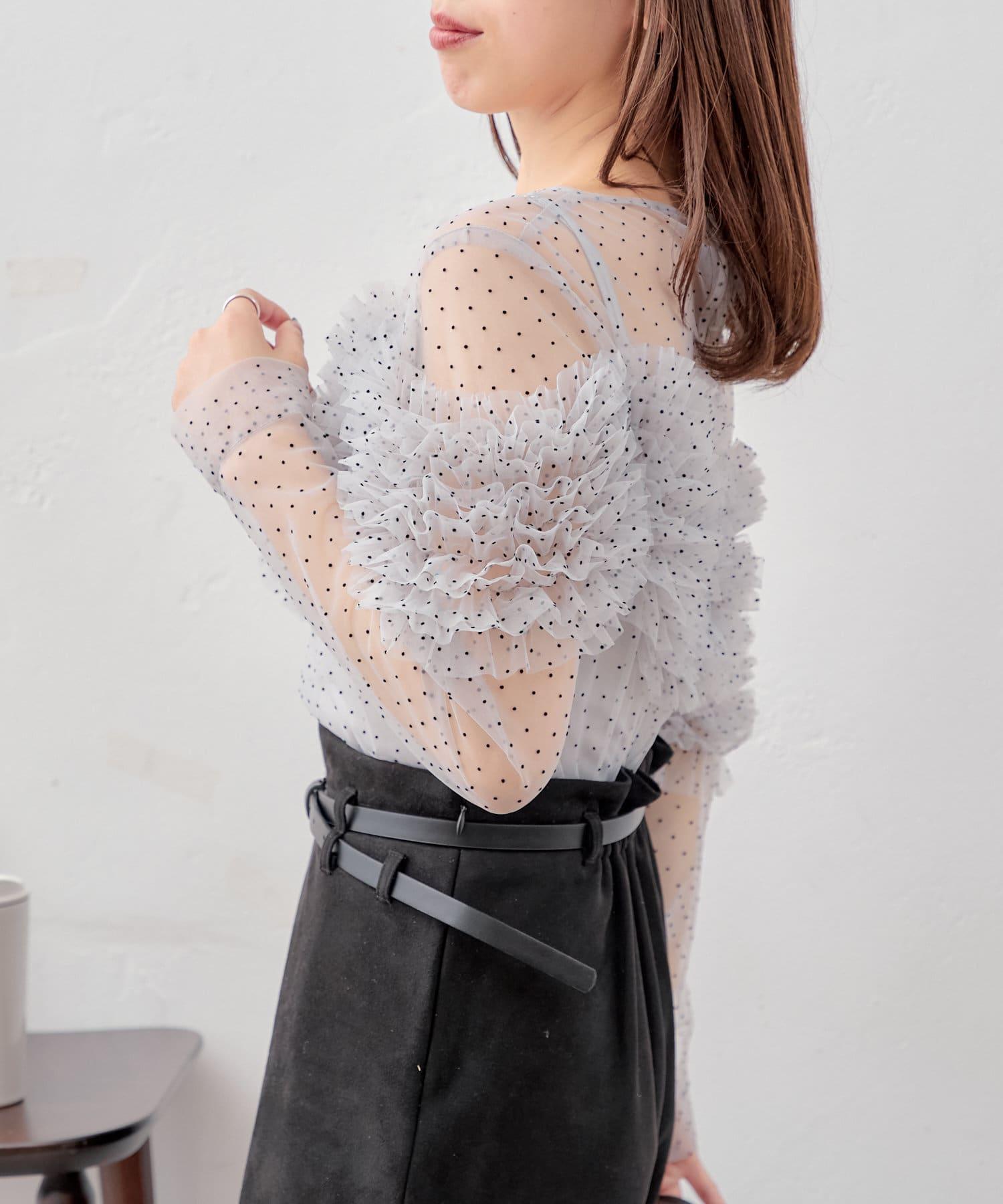 上衣採用透視面料,但袖子上的荷葉邊也可以用來遮擋手臂。