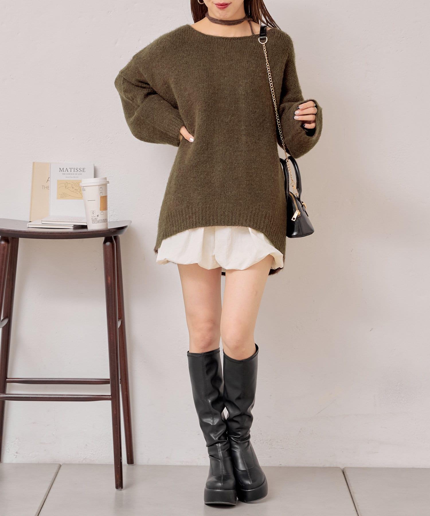 蓬鬆材質的寬鬆針織連衣裙,讓您恰到好處地展示肌膚♡。