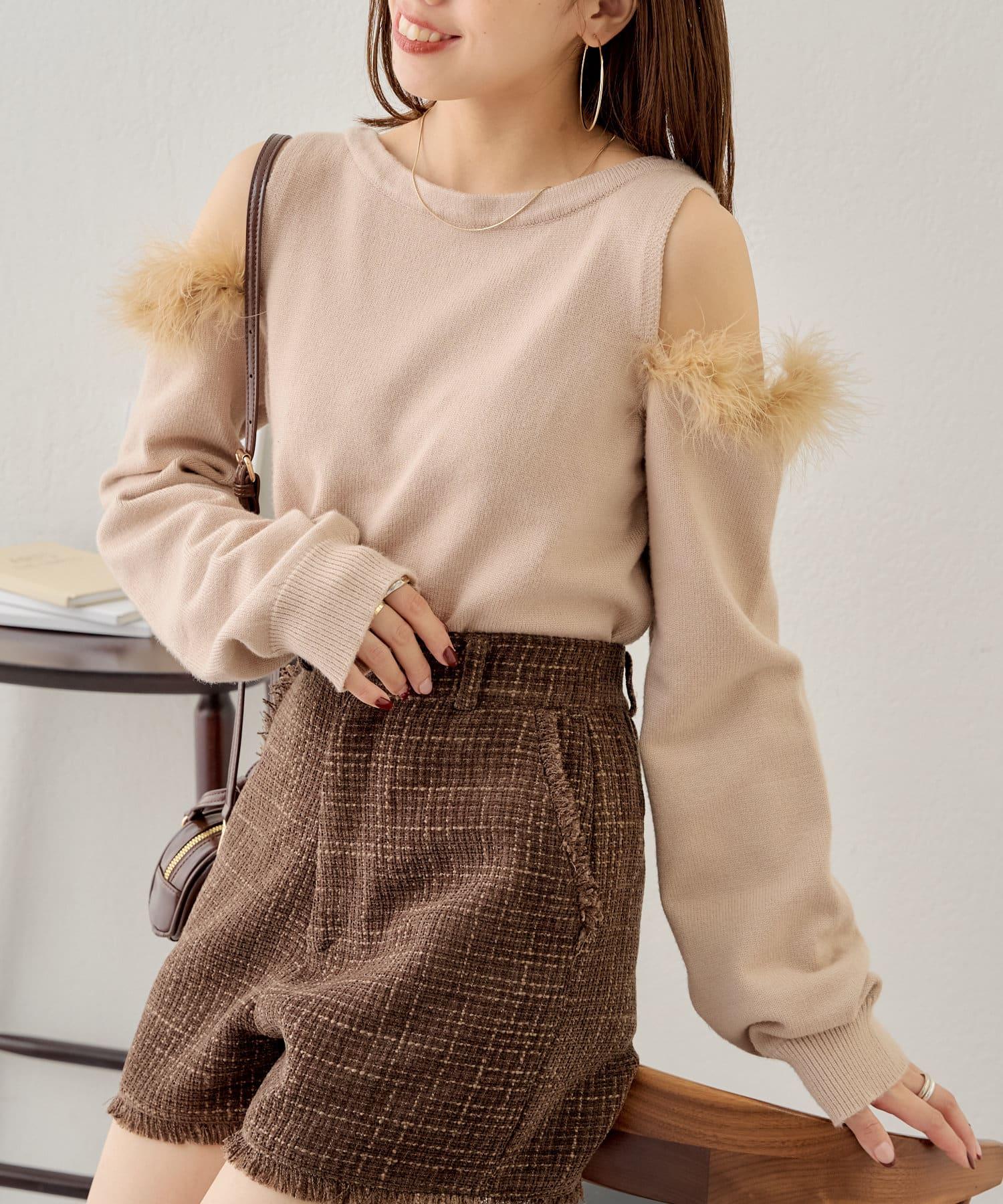 帶有皮草和開衩的女性化甜美針織衫 ♡♡♡♡♡♡