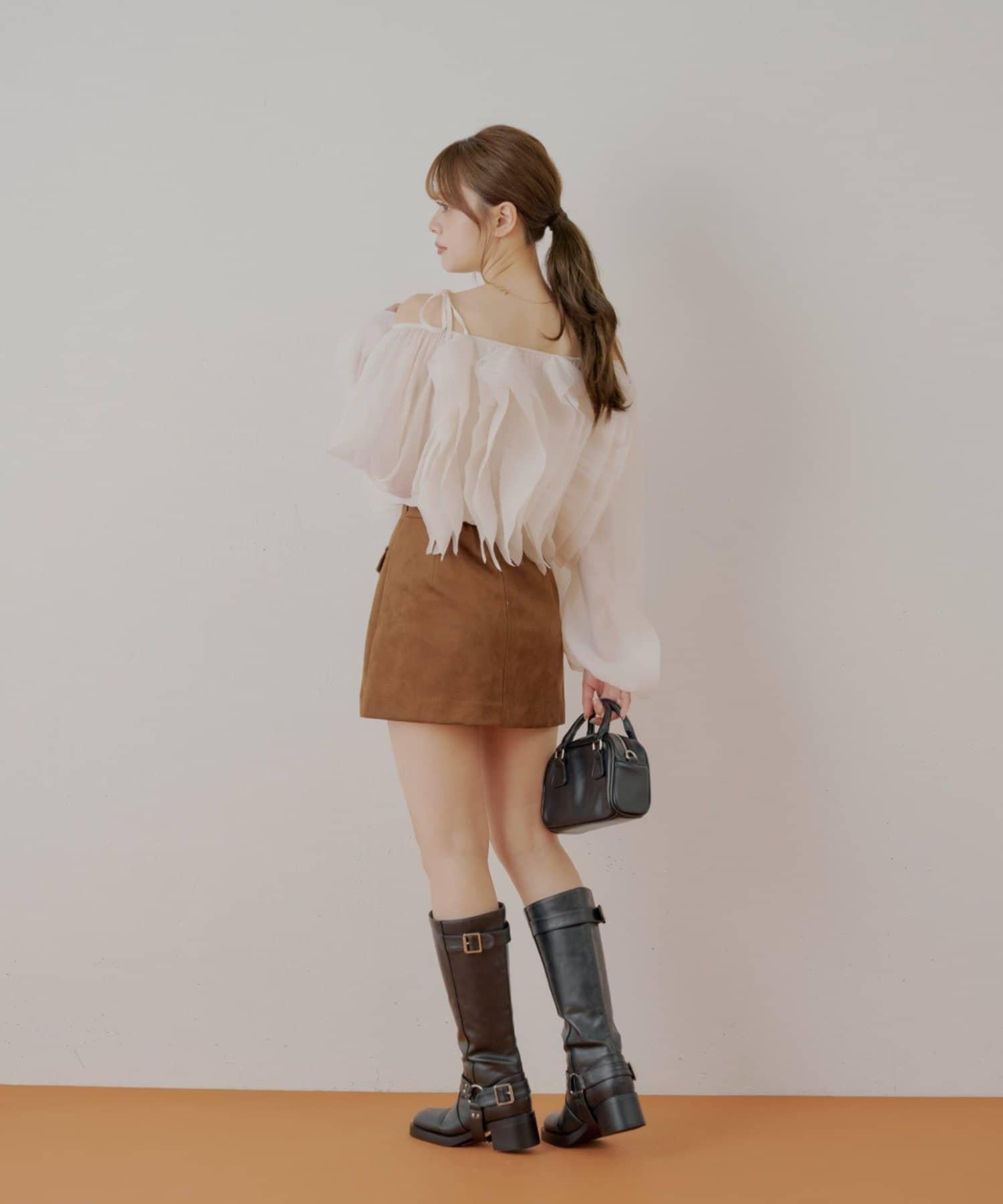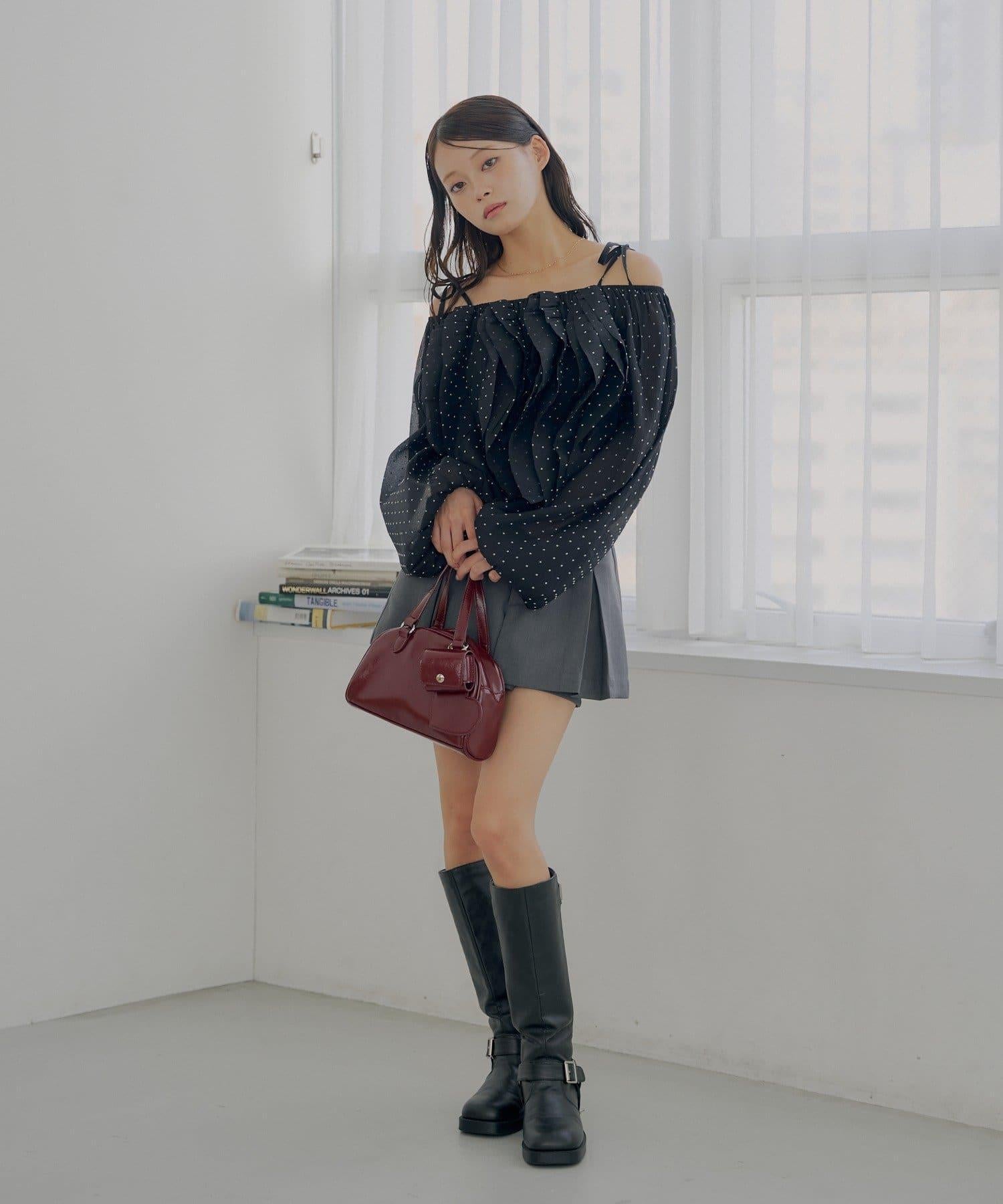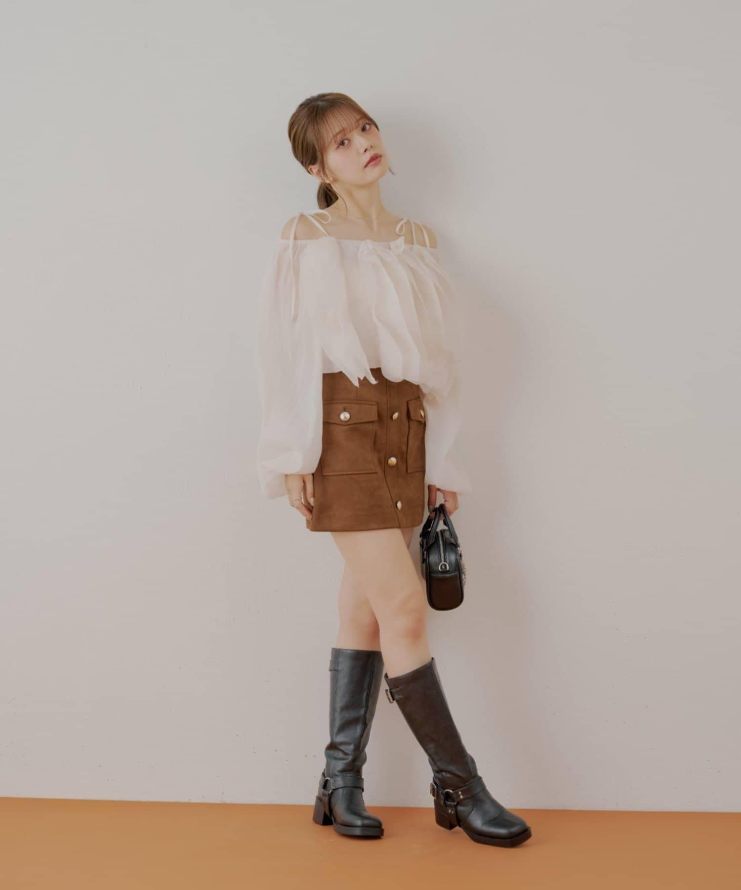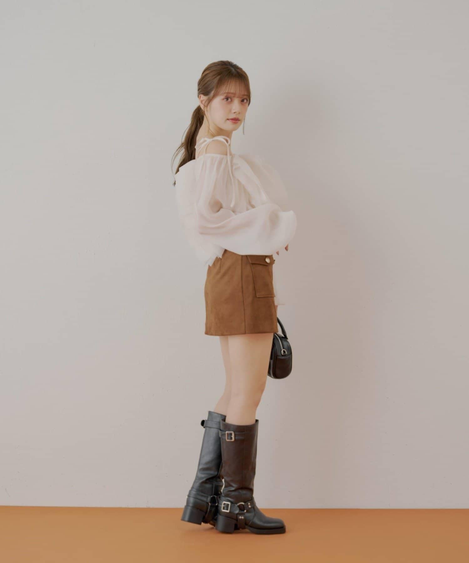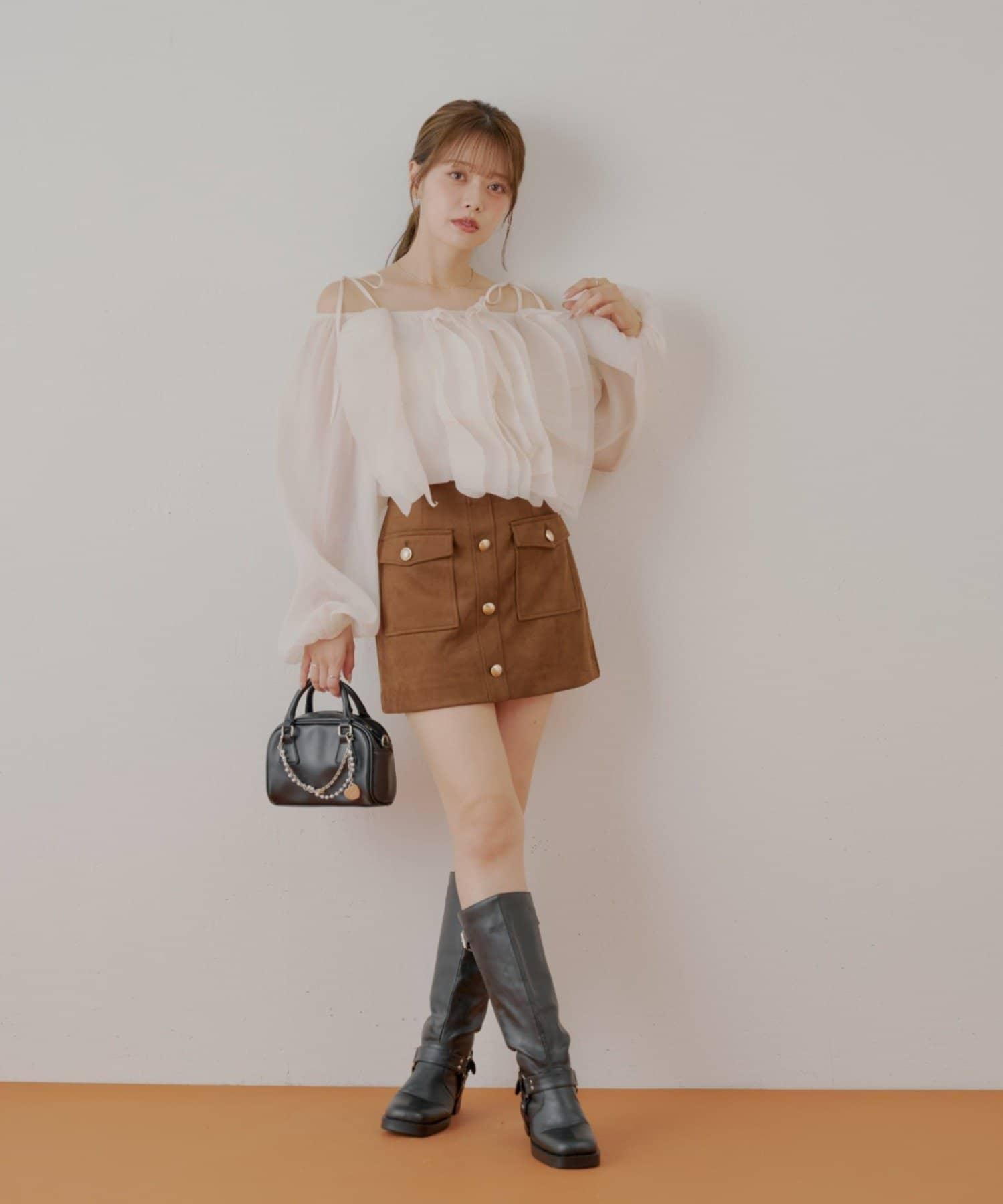 也可搭配迷你打底褲,打造可愛的女性造型。