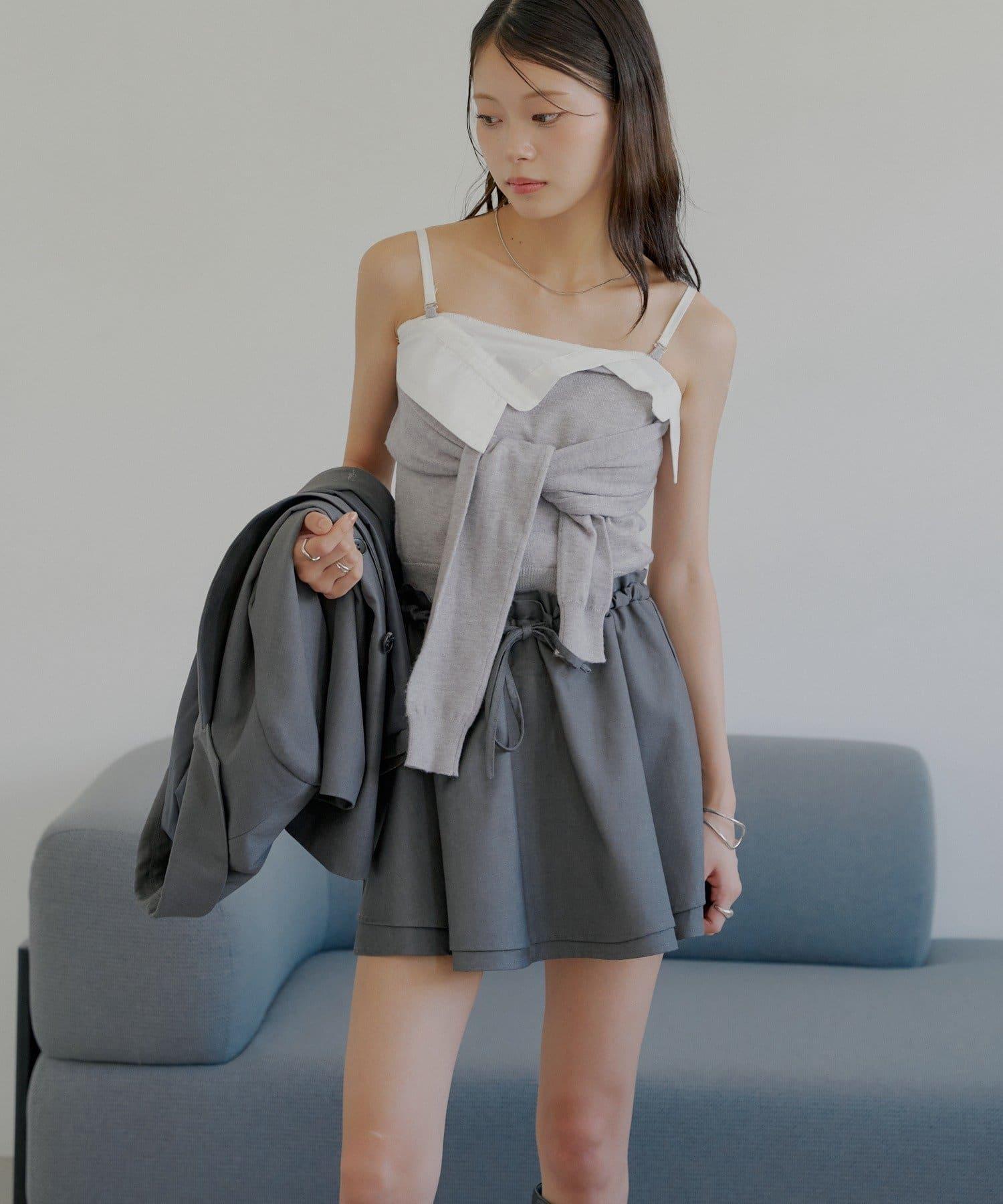 上衣採用相同材質,可與相同材質的上衣搭配作為套裝穿著。