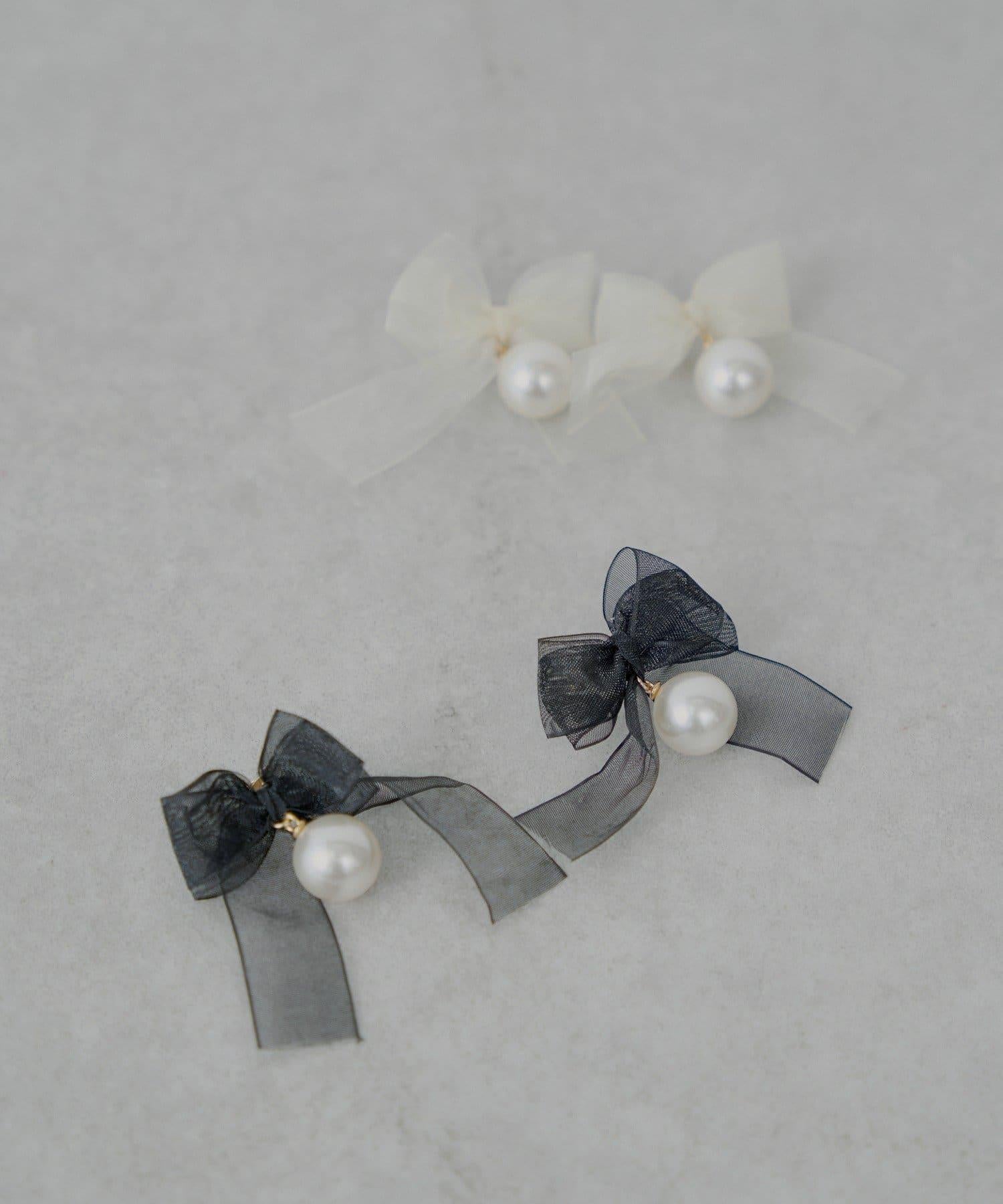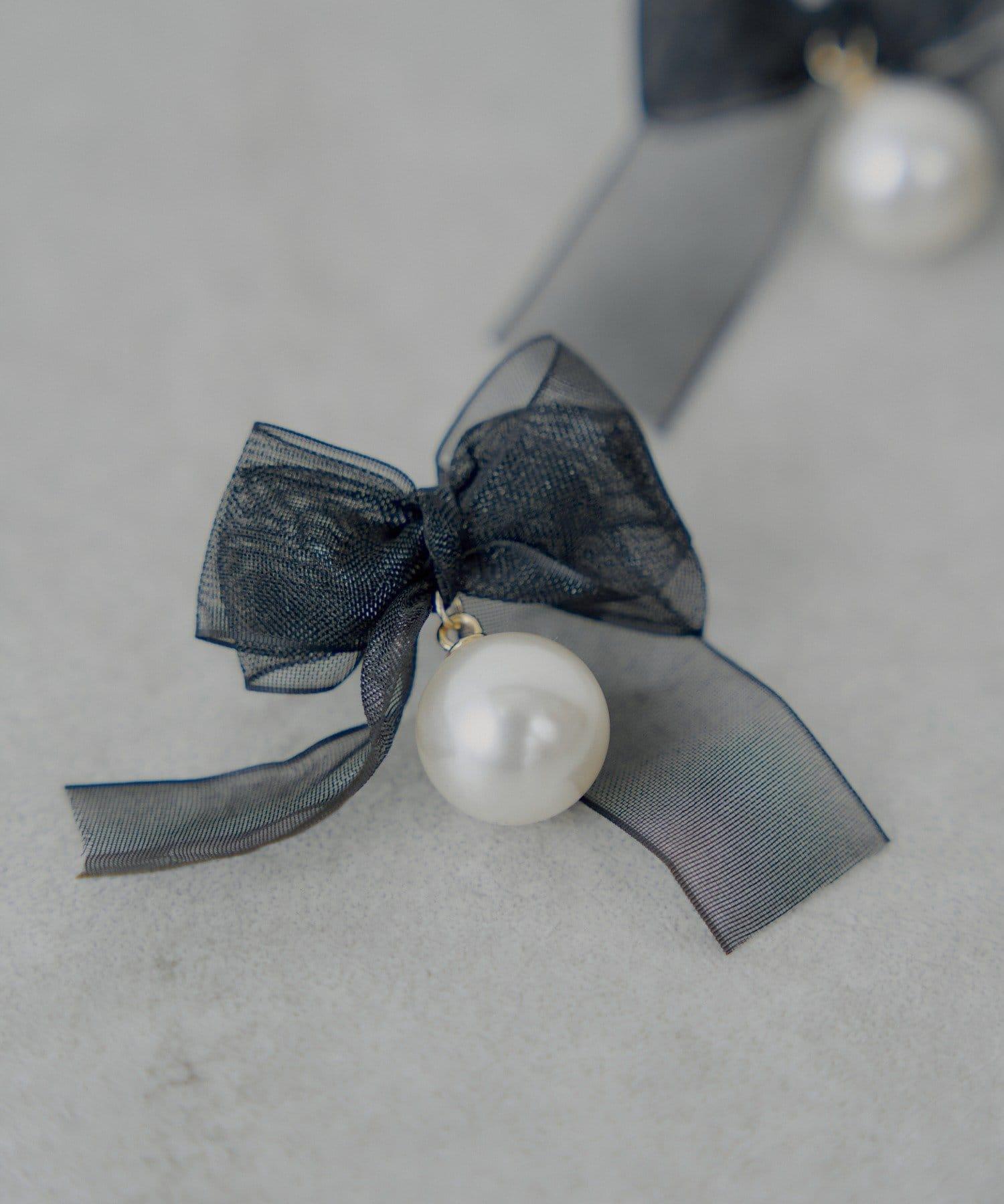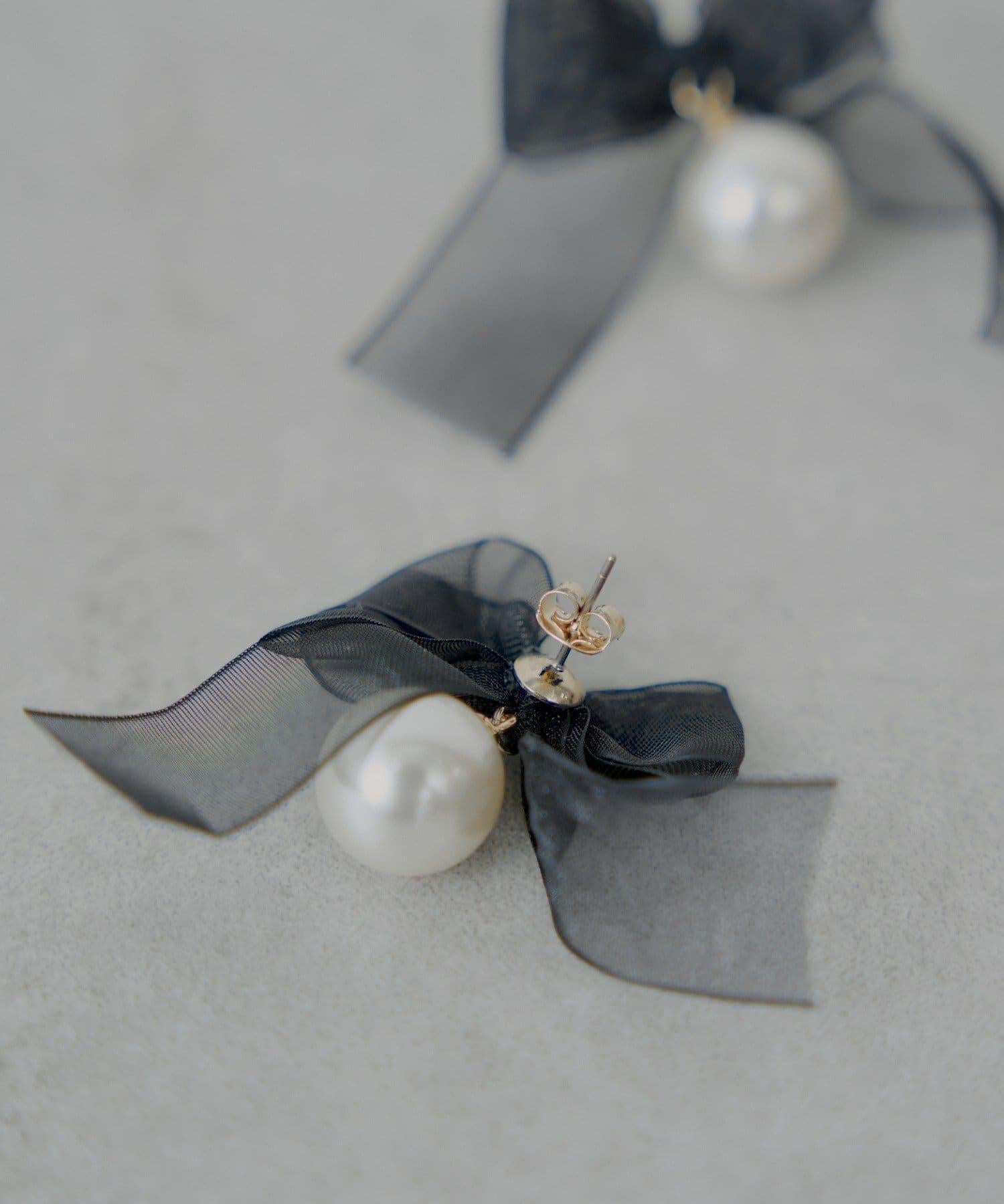 這對可愛的成人耳環由優雅閃亮的珍珠和透明絲帶組合而成!