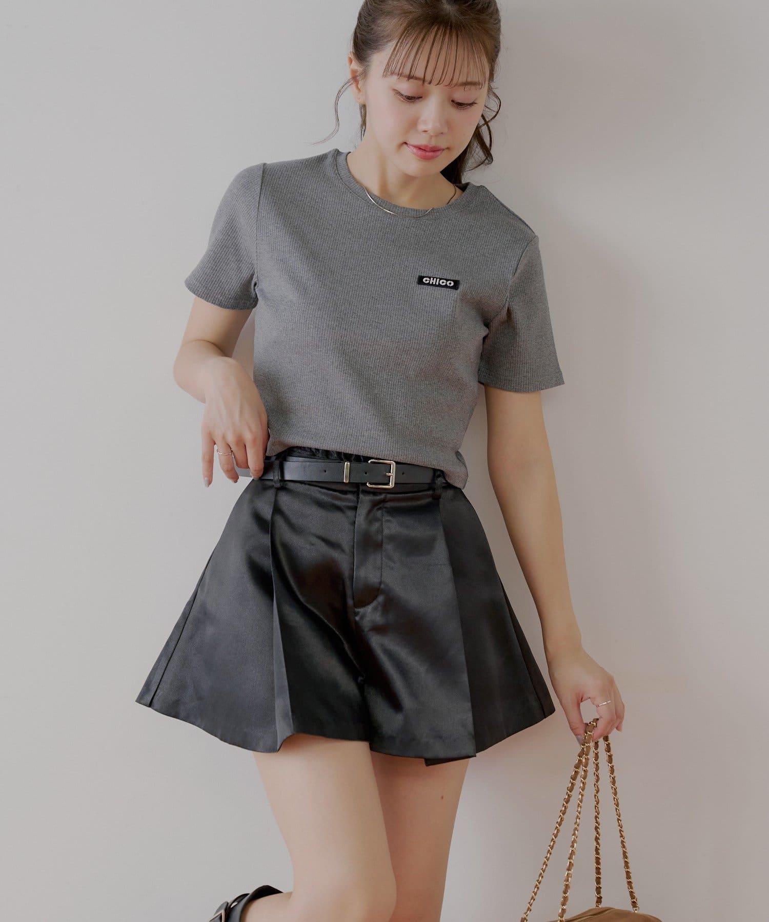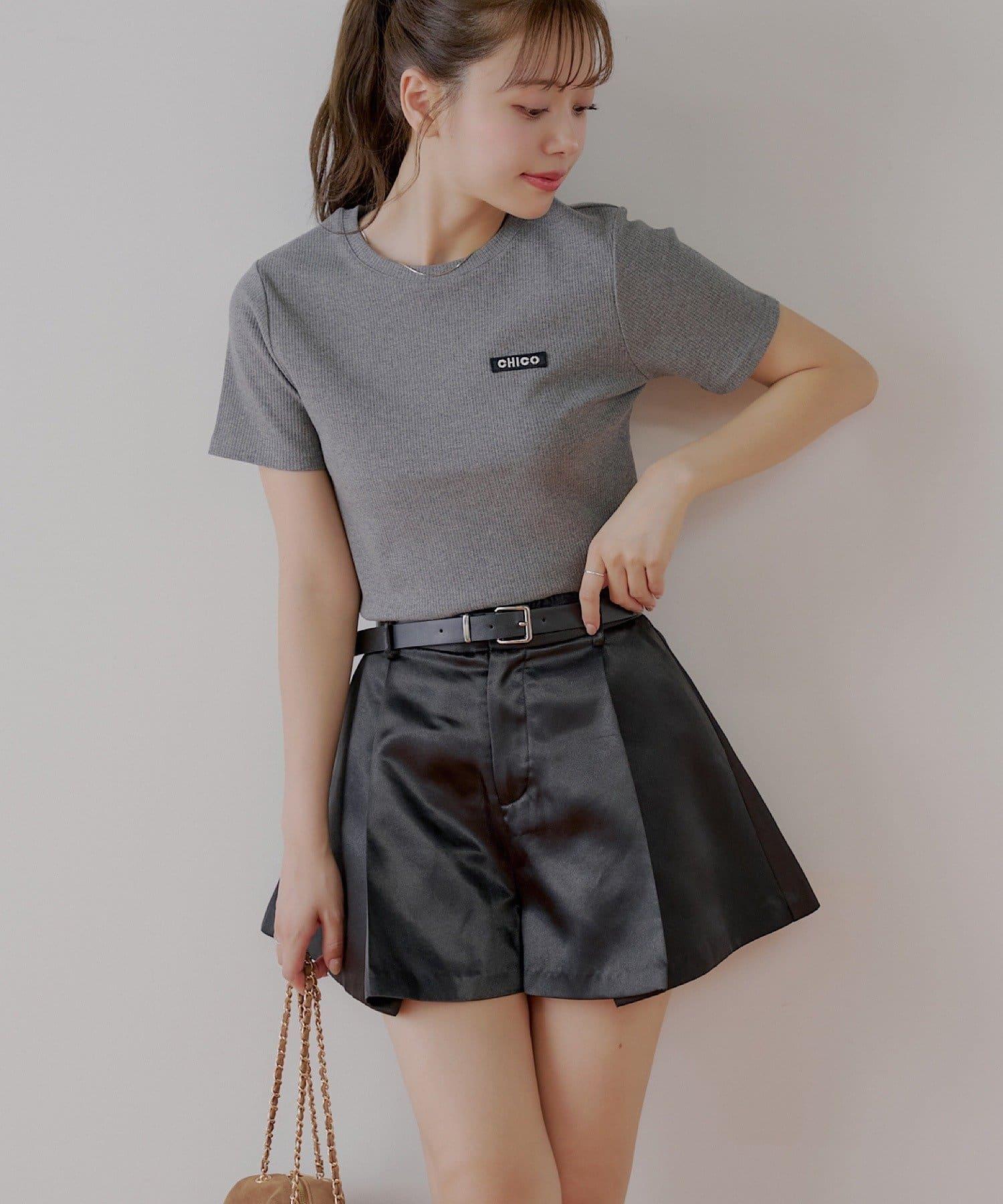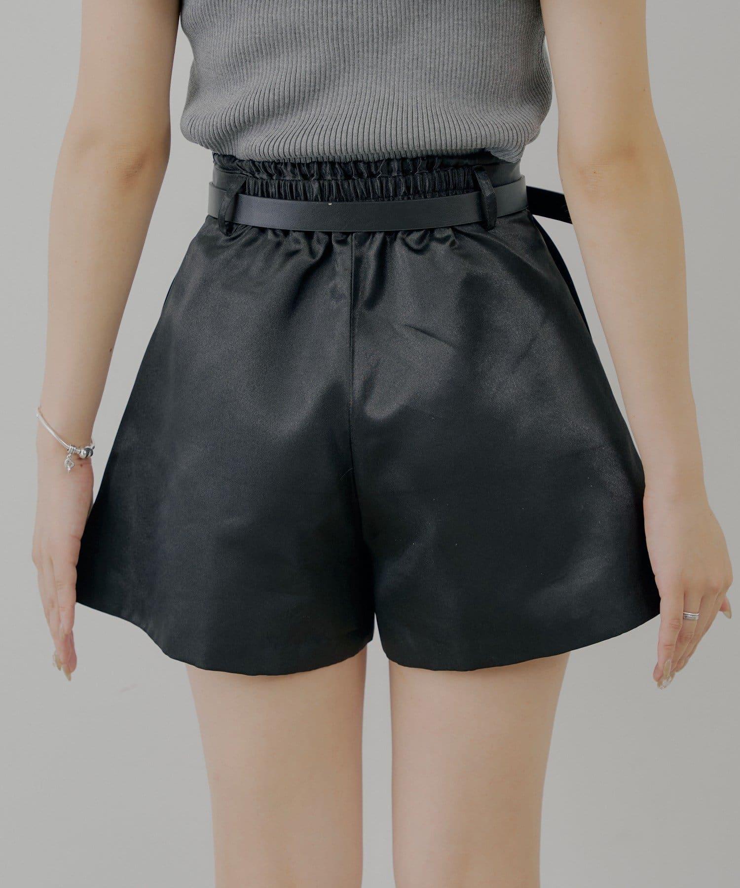 【Chico】配腰帶蓬鬆緞面短褲