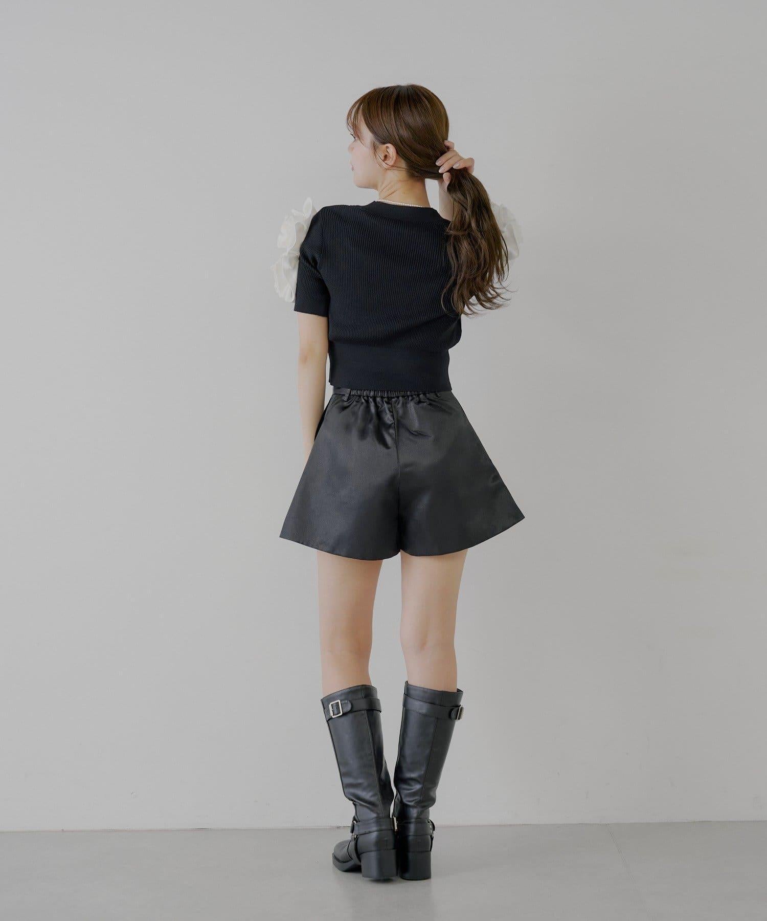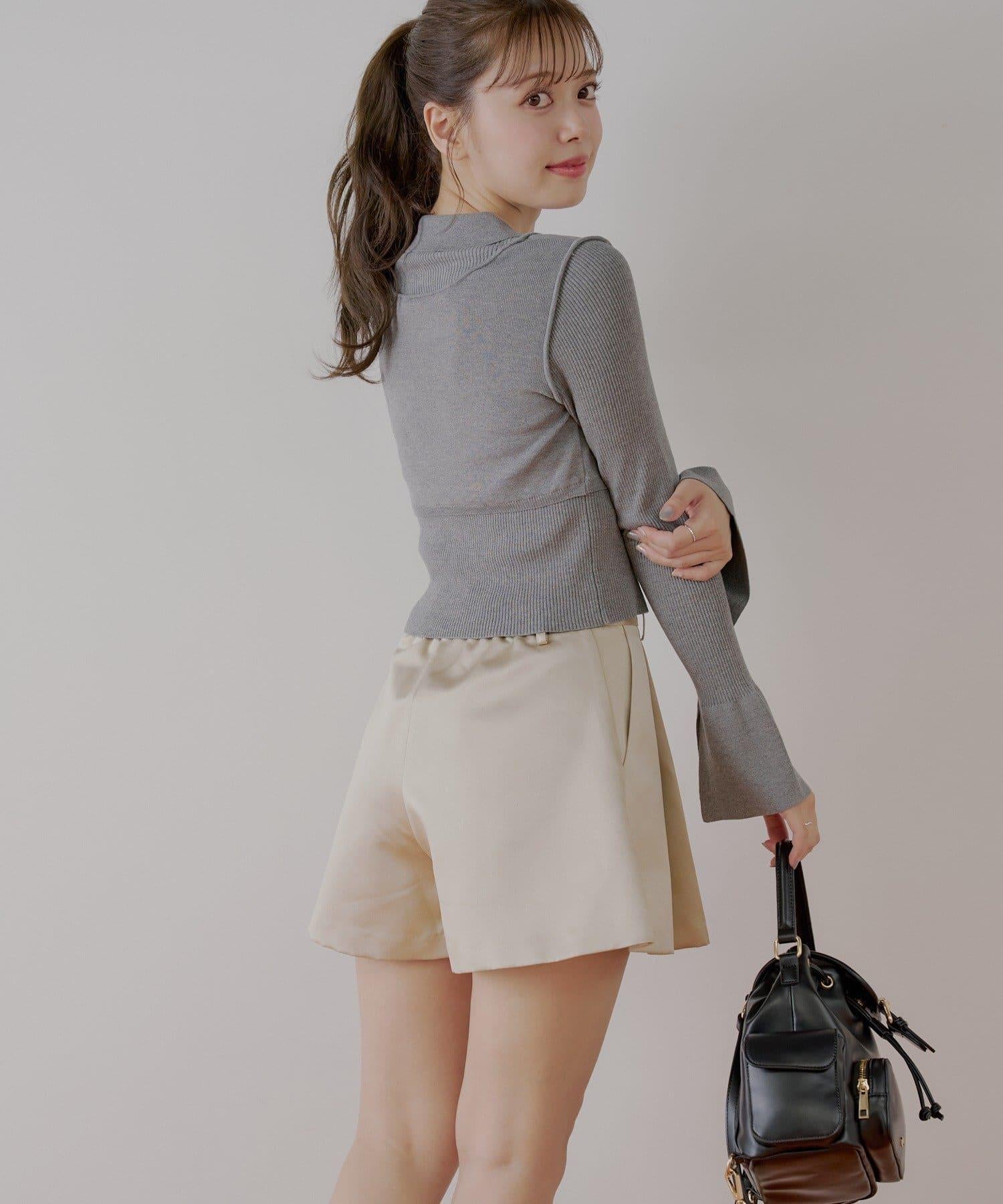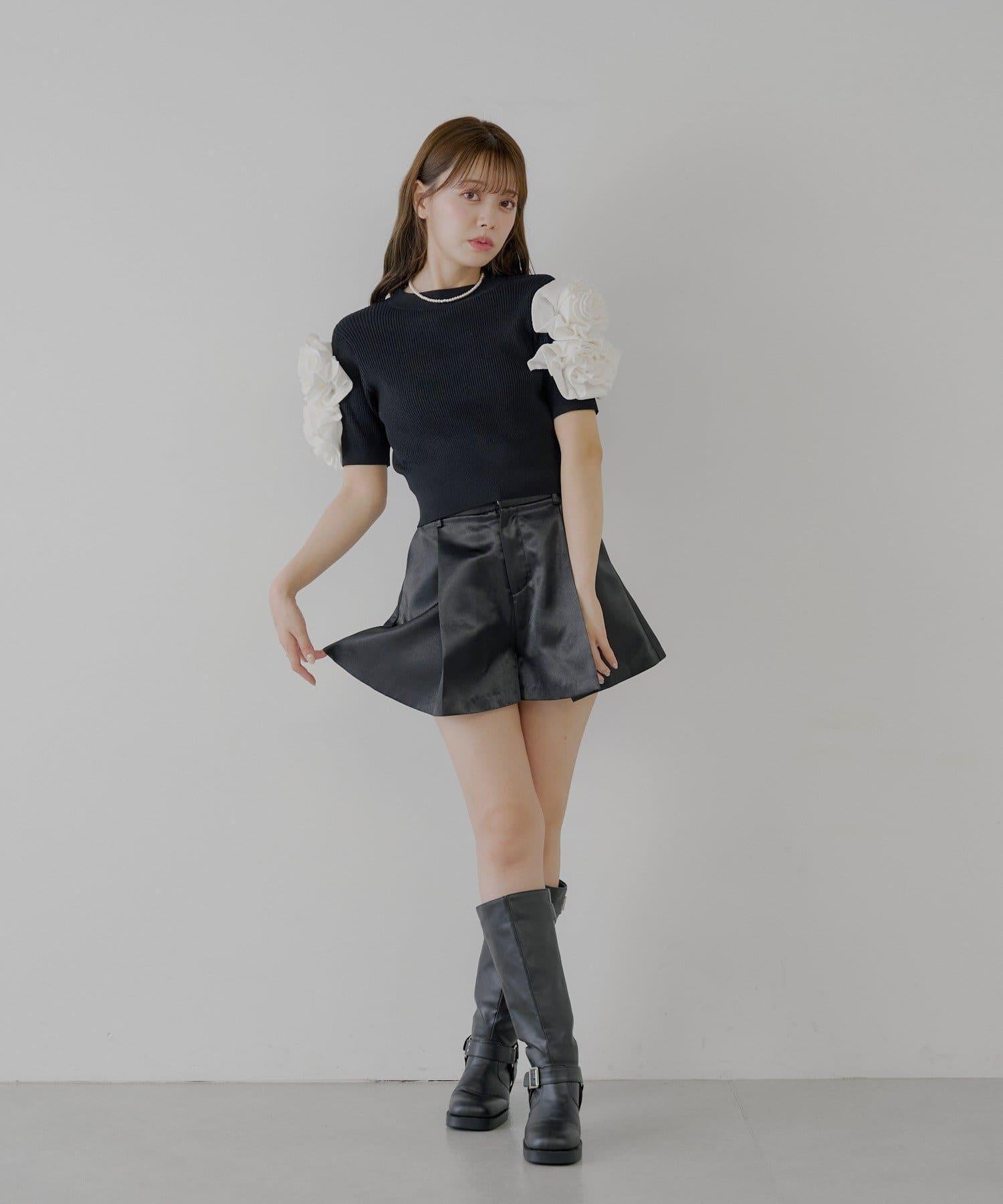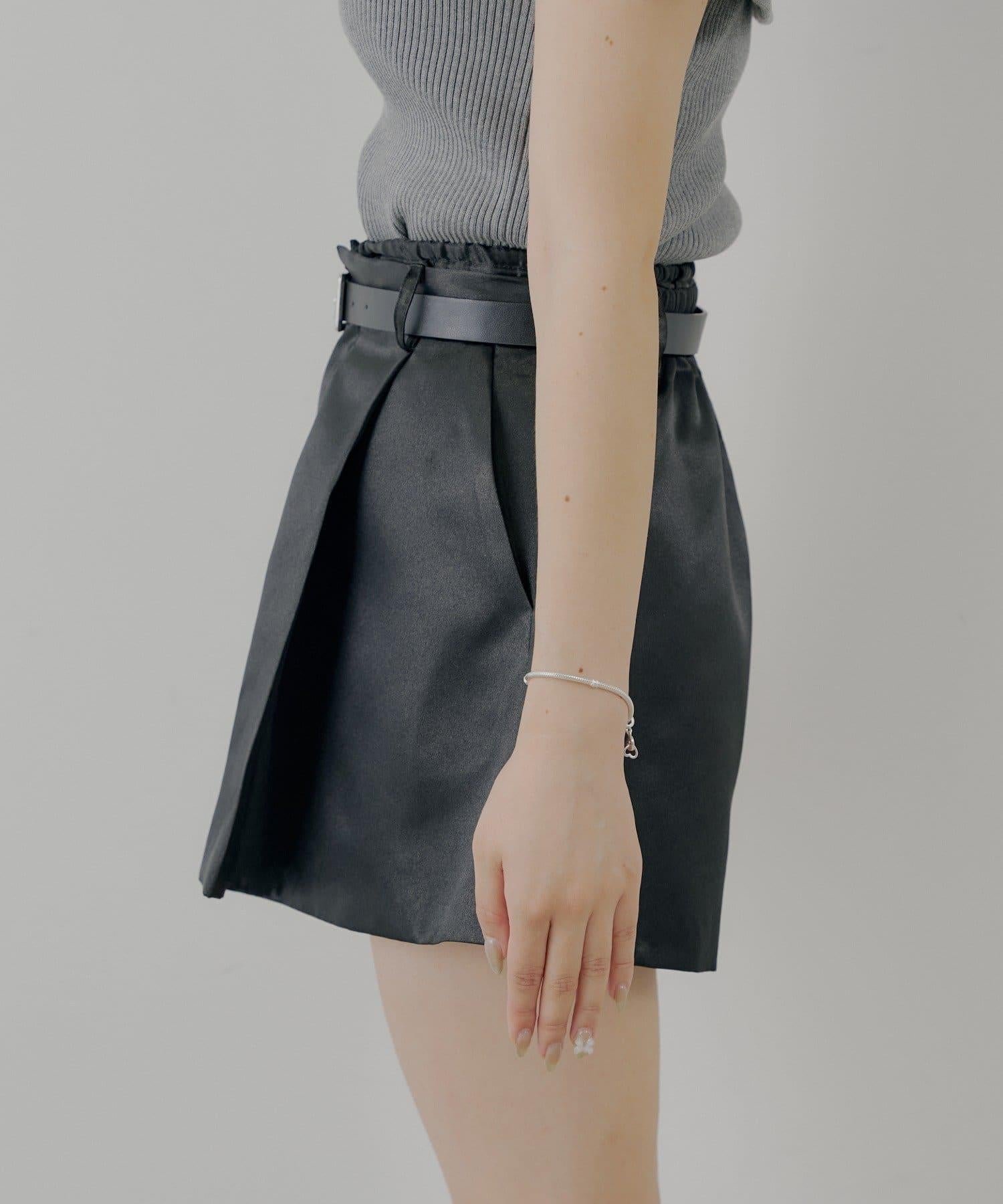 【Chico】配腰帶蓬鬆緞面短褲