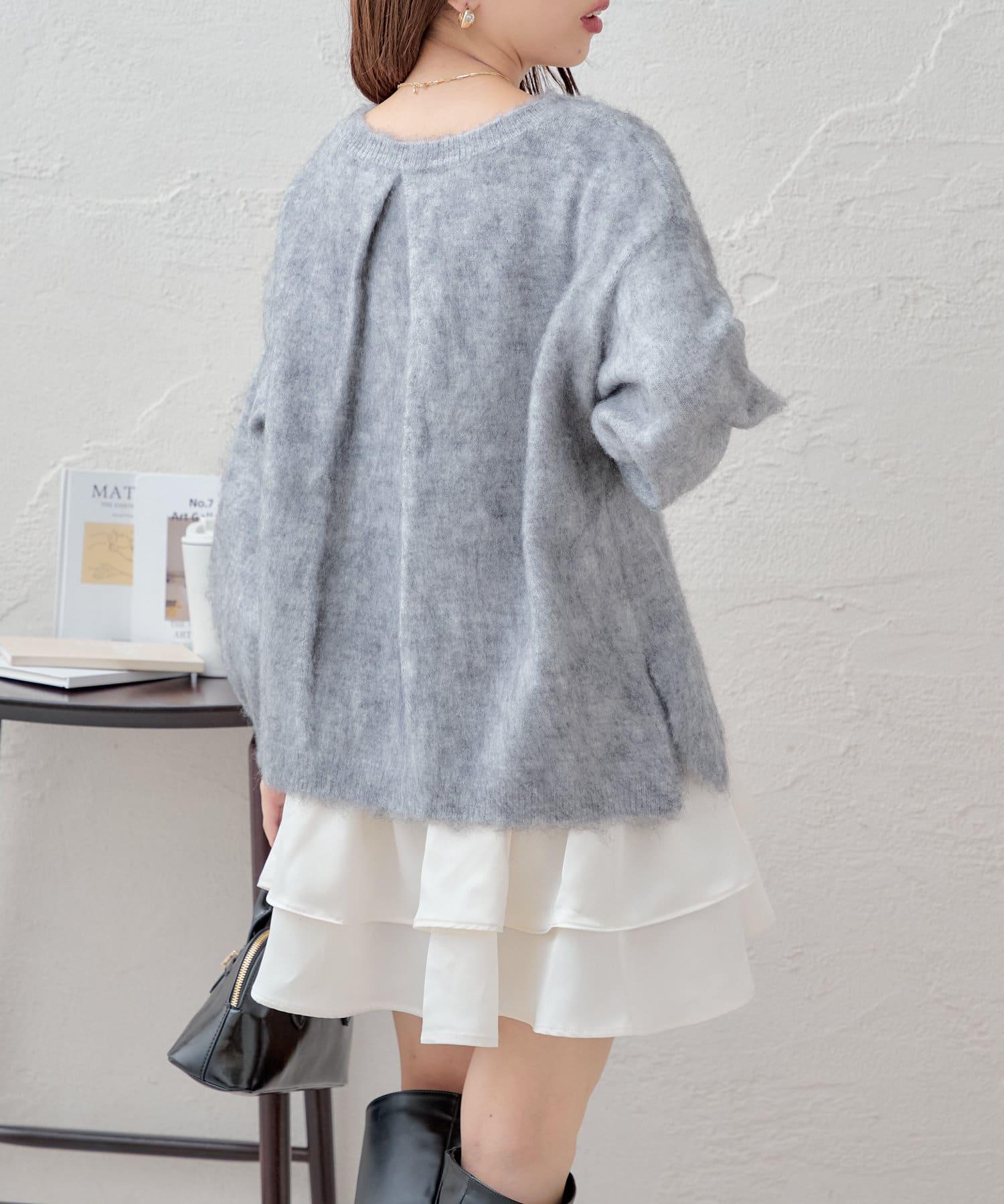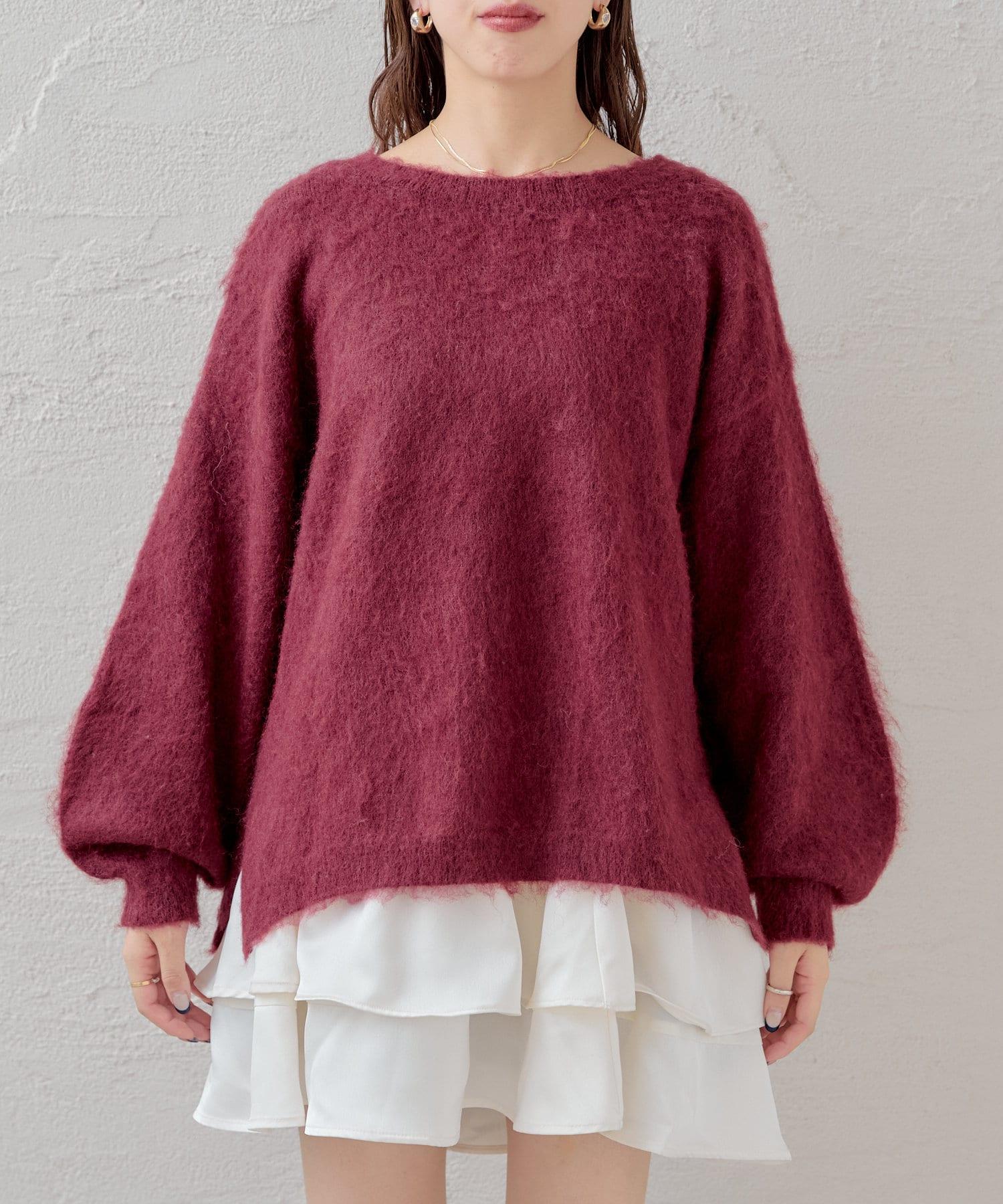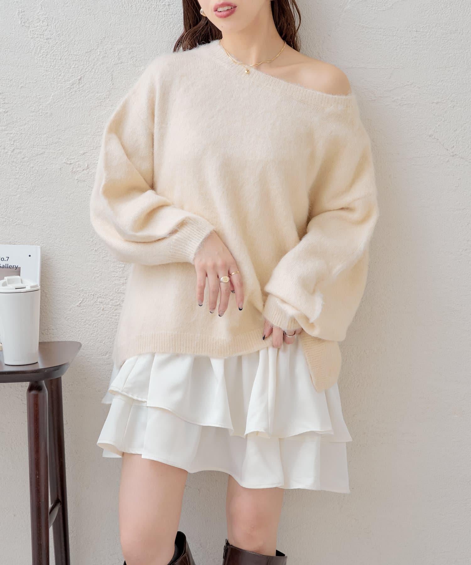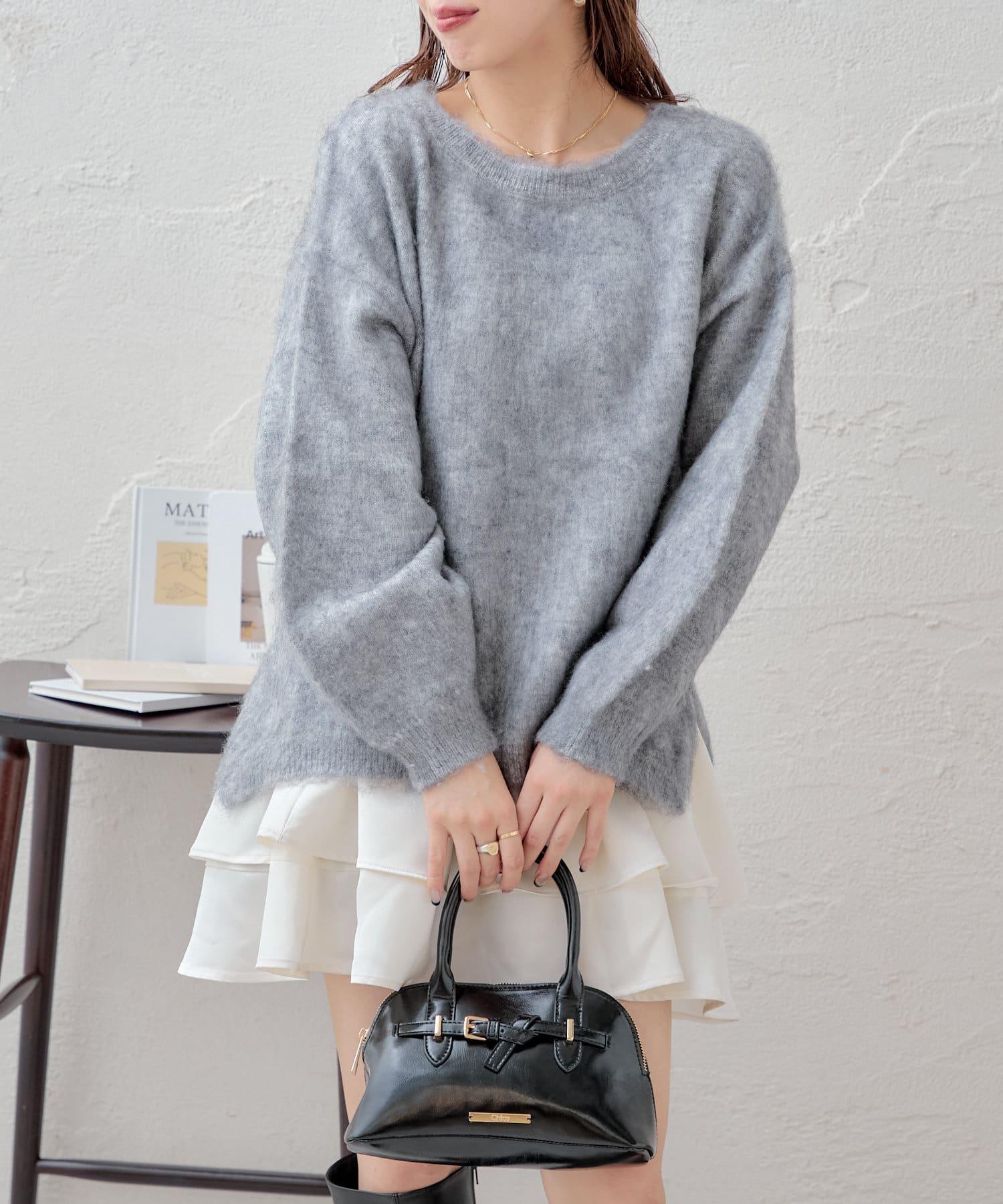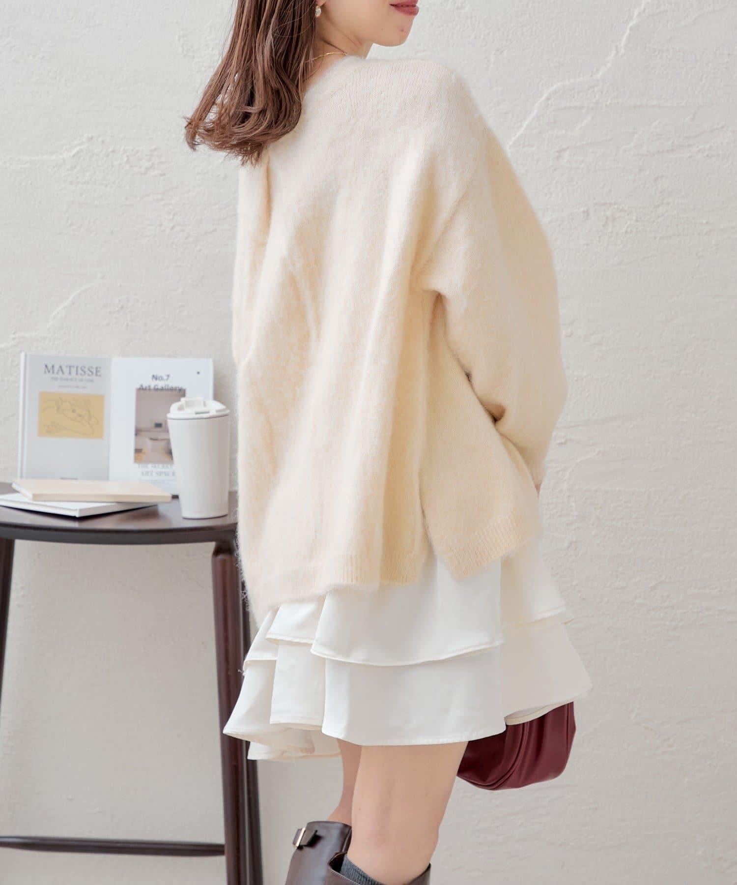 【Chico】長毛寬鬆針織衫×荷葉邊迷你連衣裙套裝
