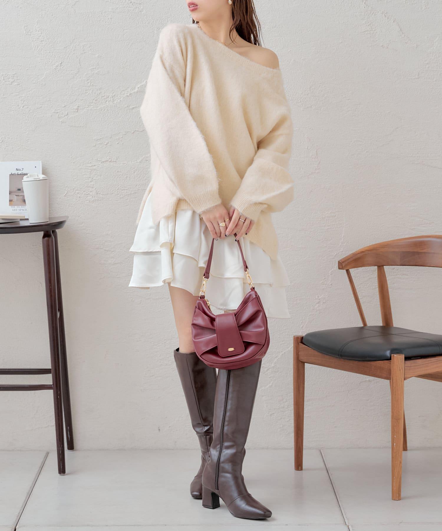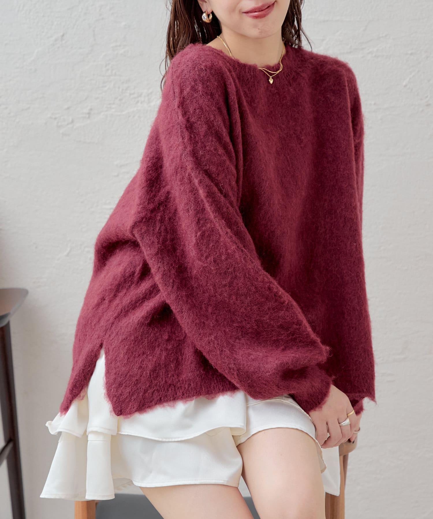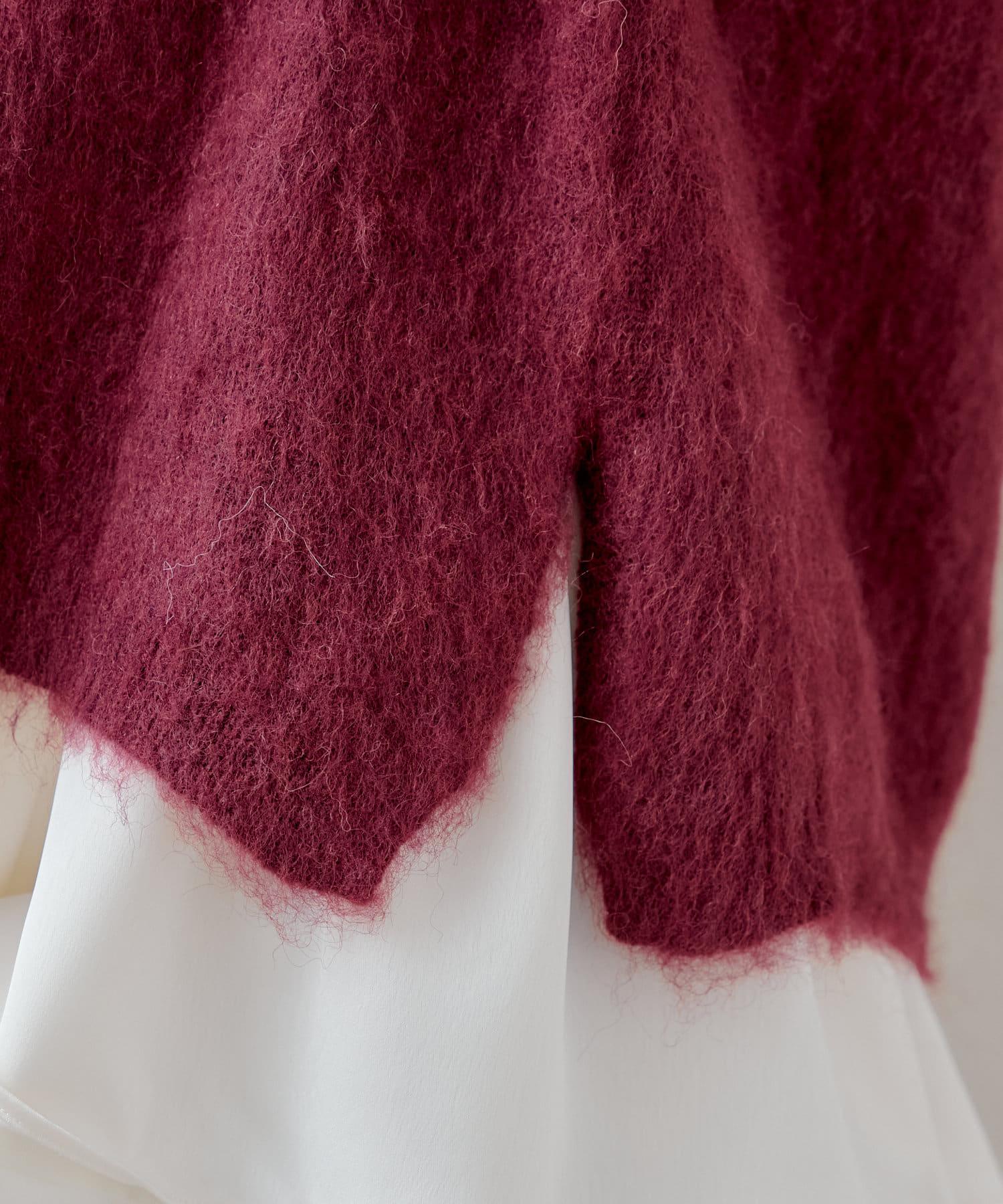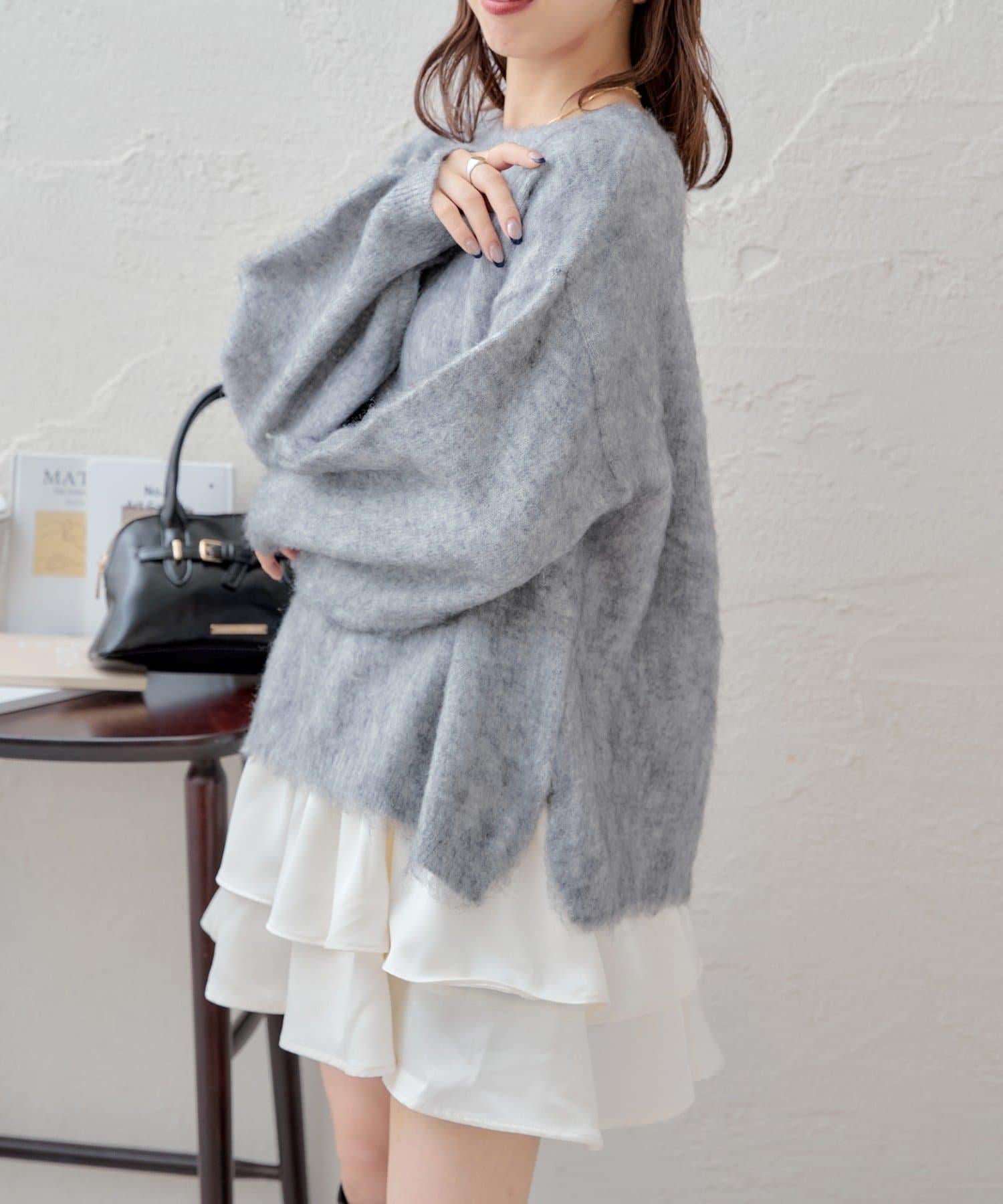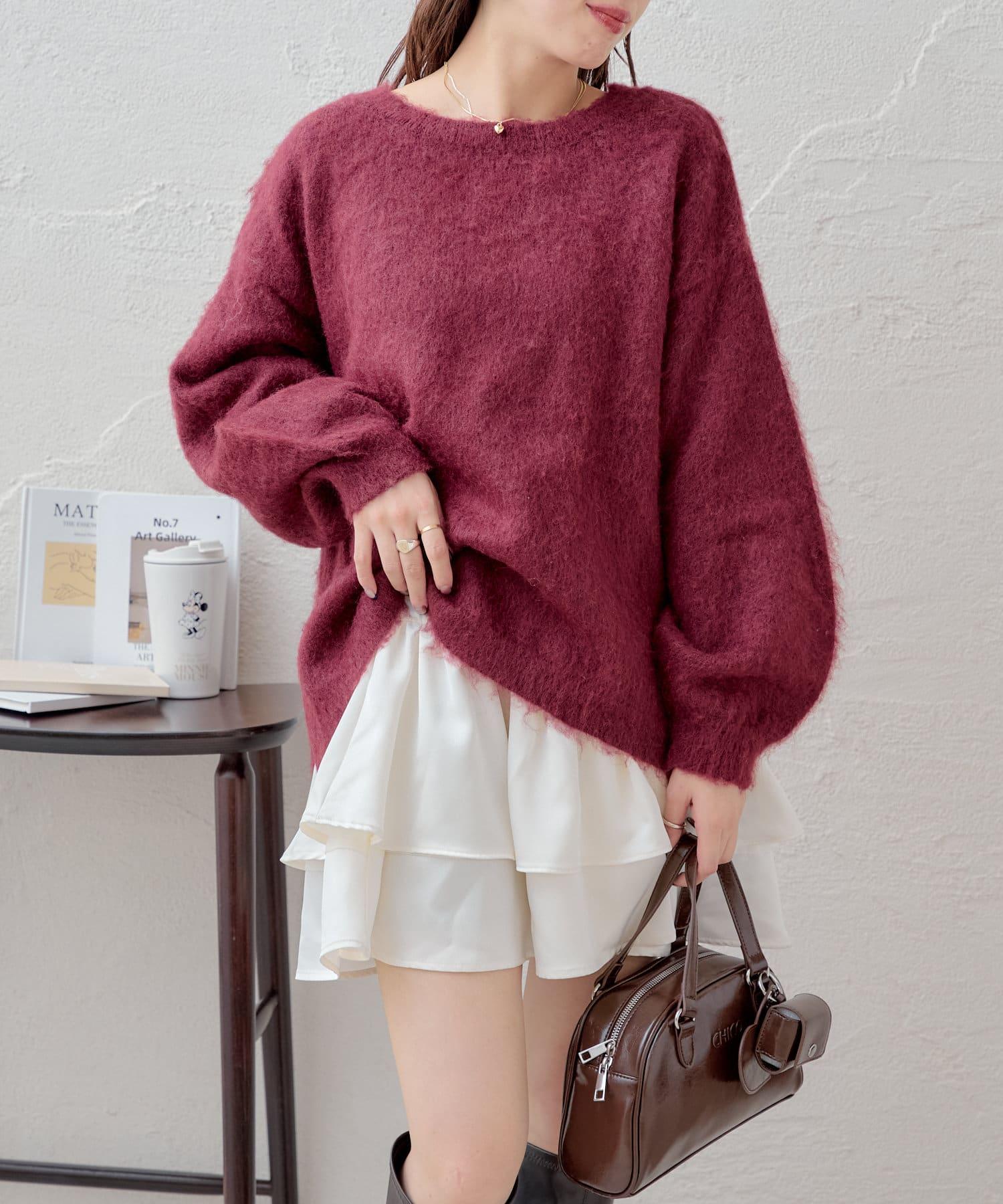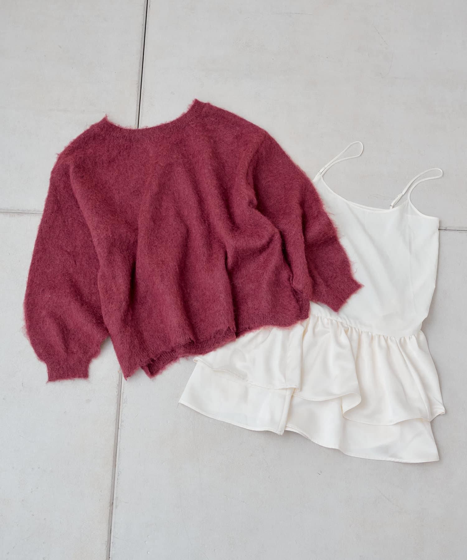 【Chico】長毛寬鬆針織衫×荷葉邊迷你連衣裙套裝