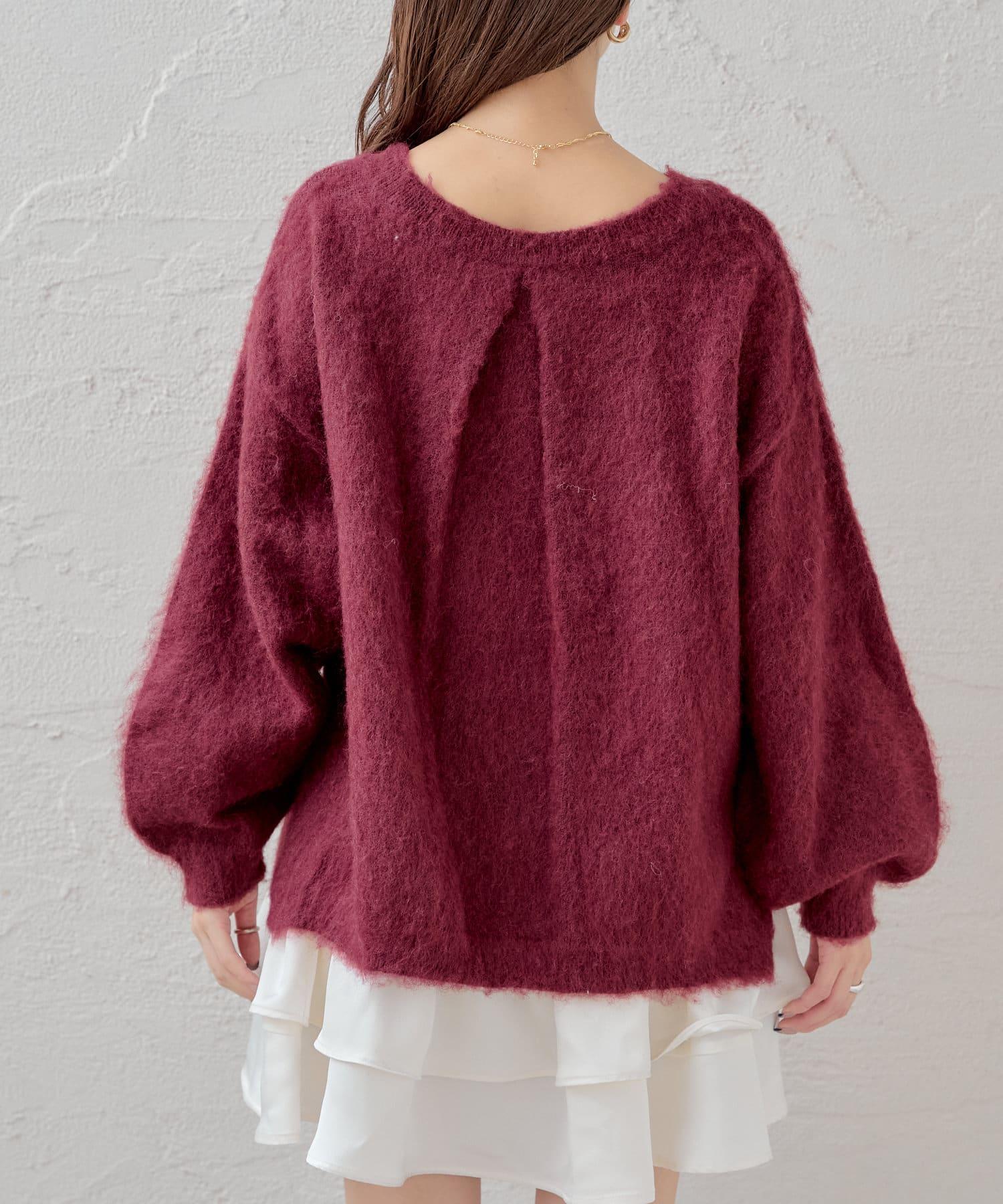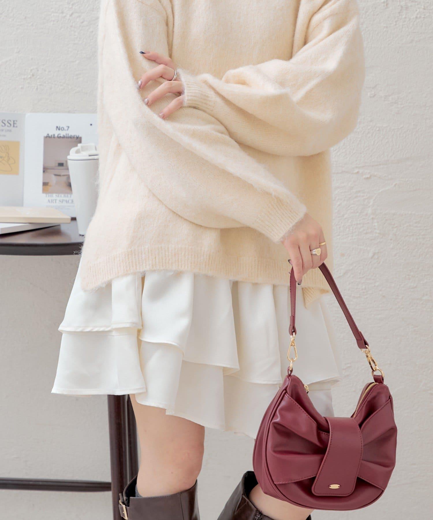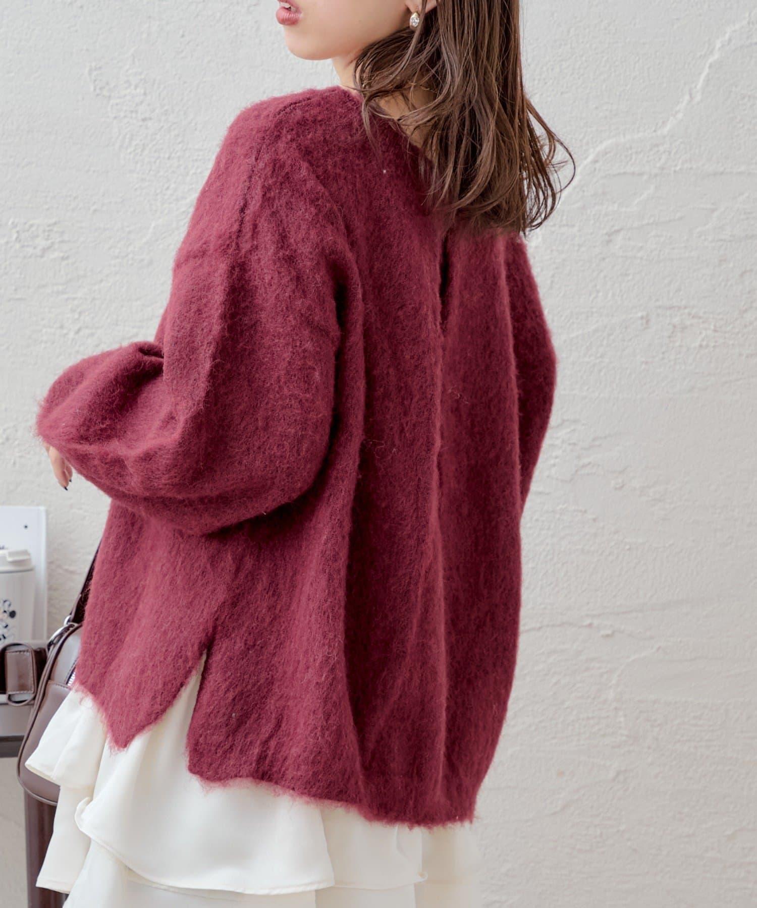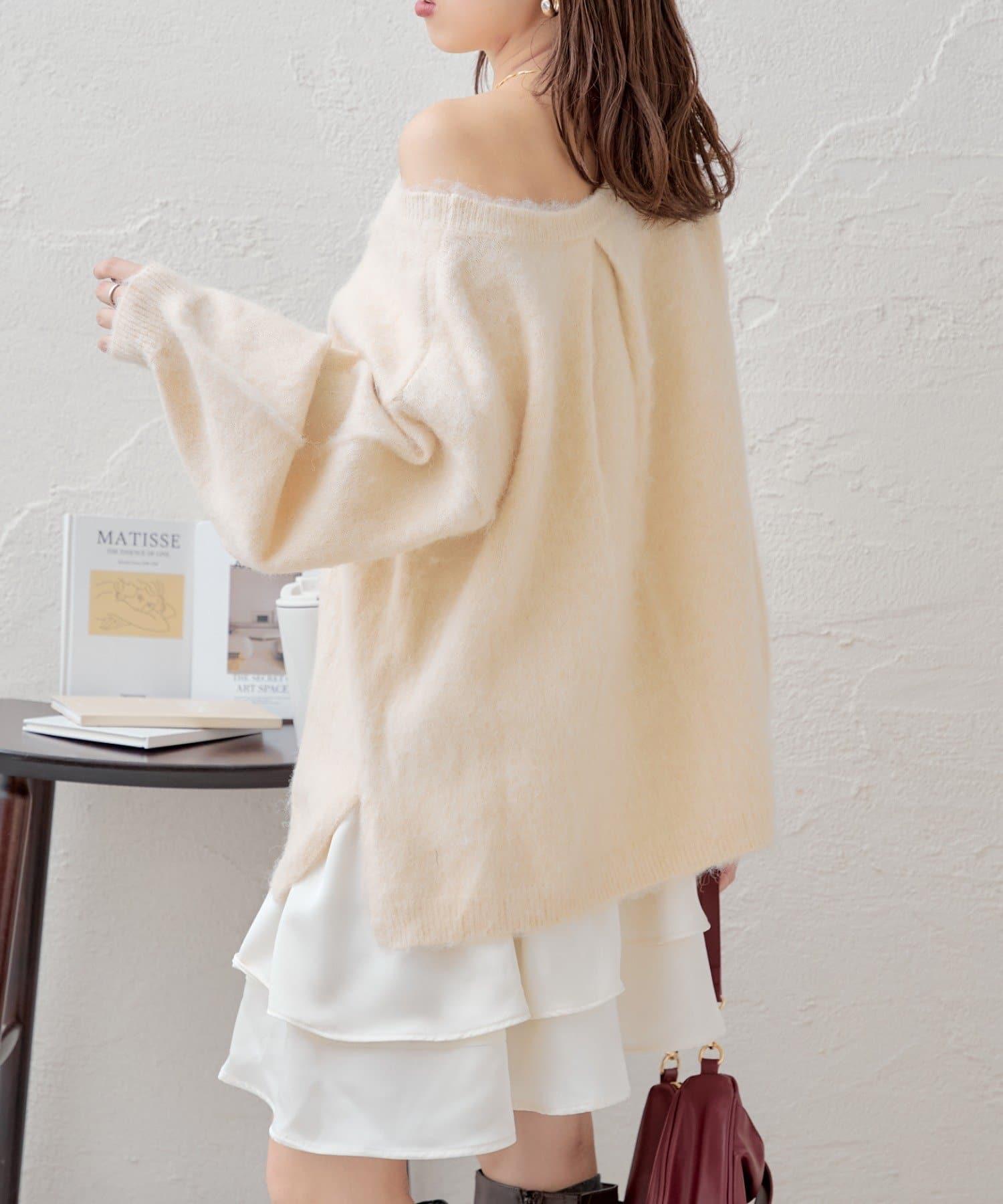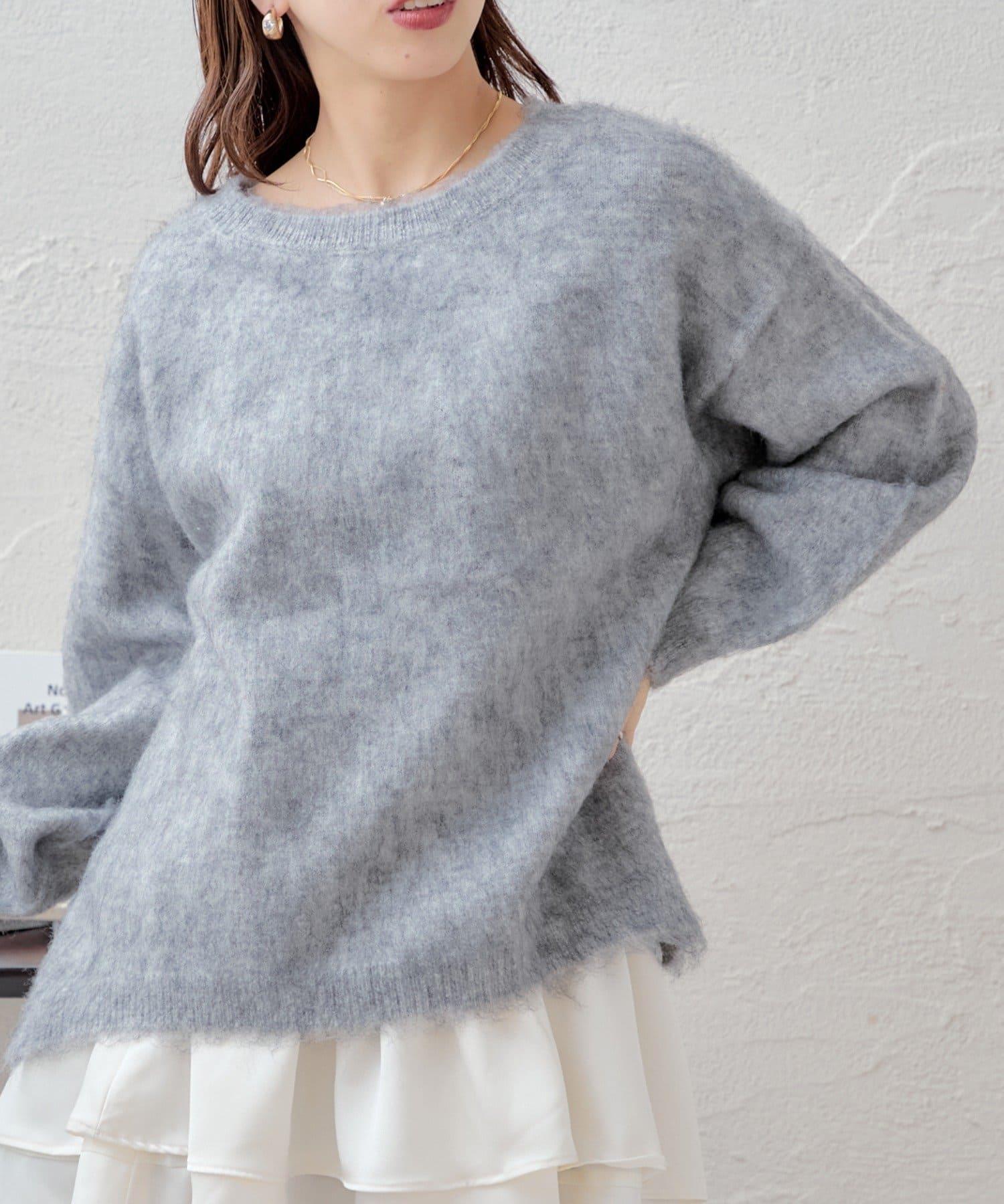 【Chico】長毛寬鬆針織衫×荷葉邊迷你連衣裙套裝