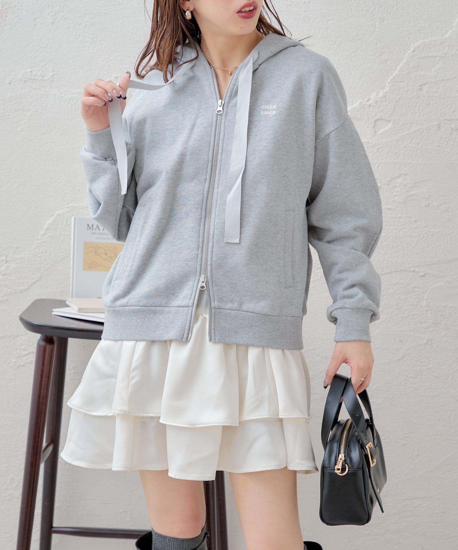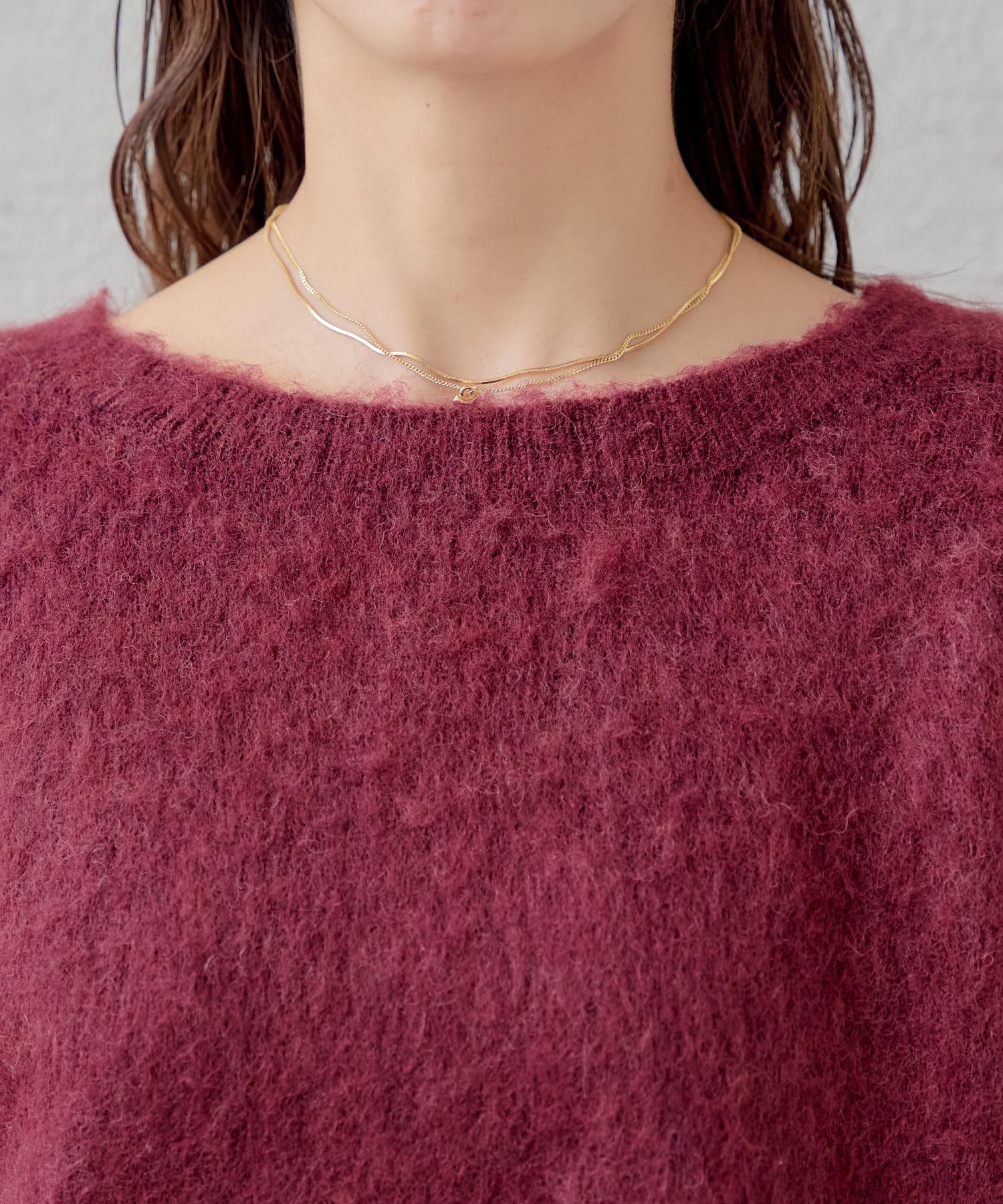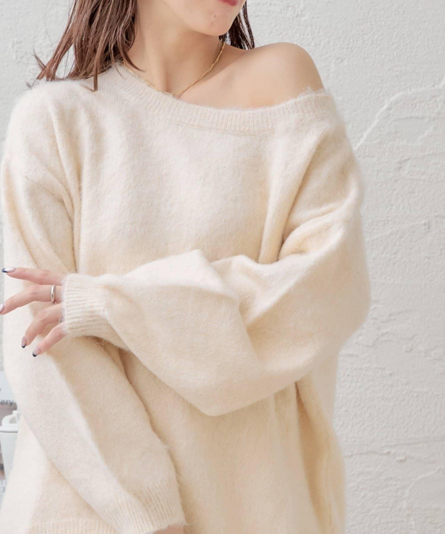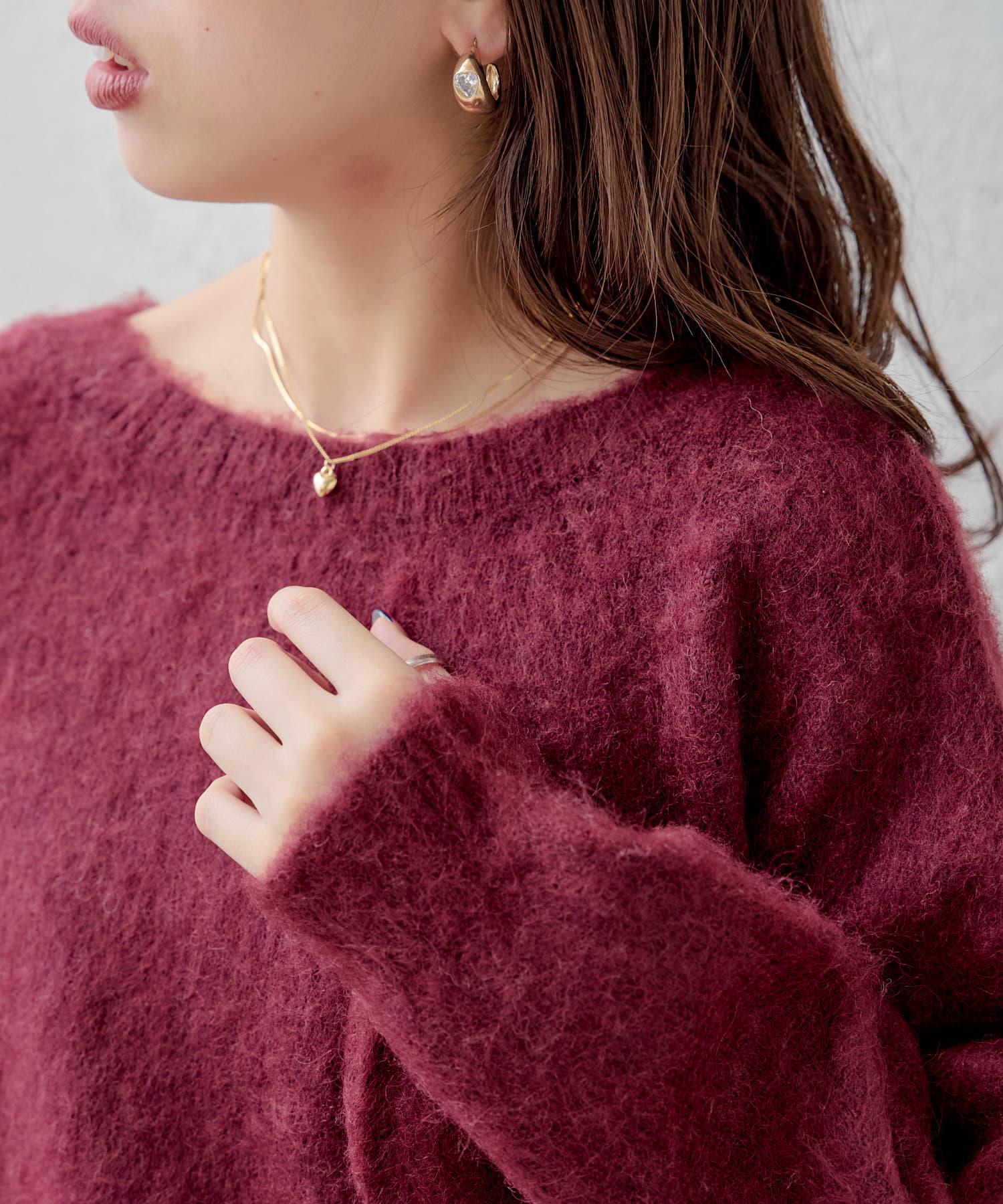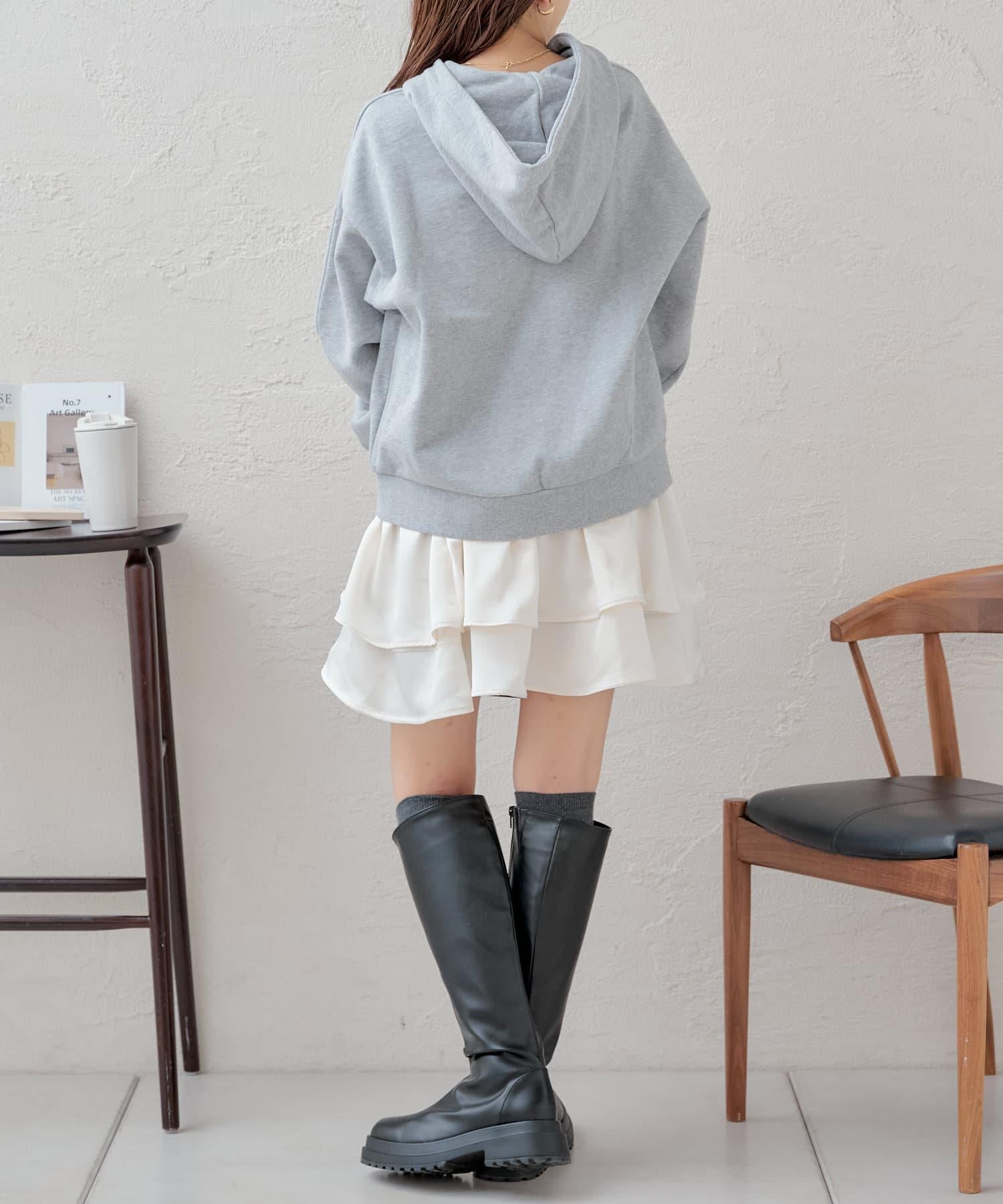 【Chico】長毛寬鬆針織衫×荷葉邊迷你連衣裙套裝