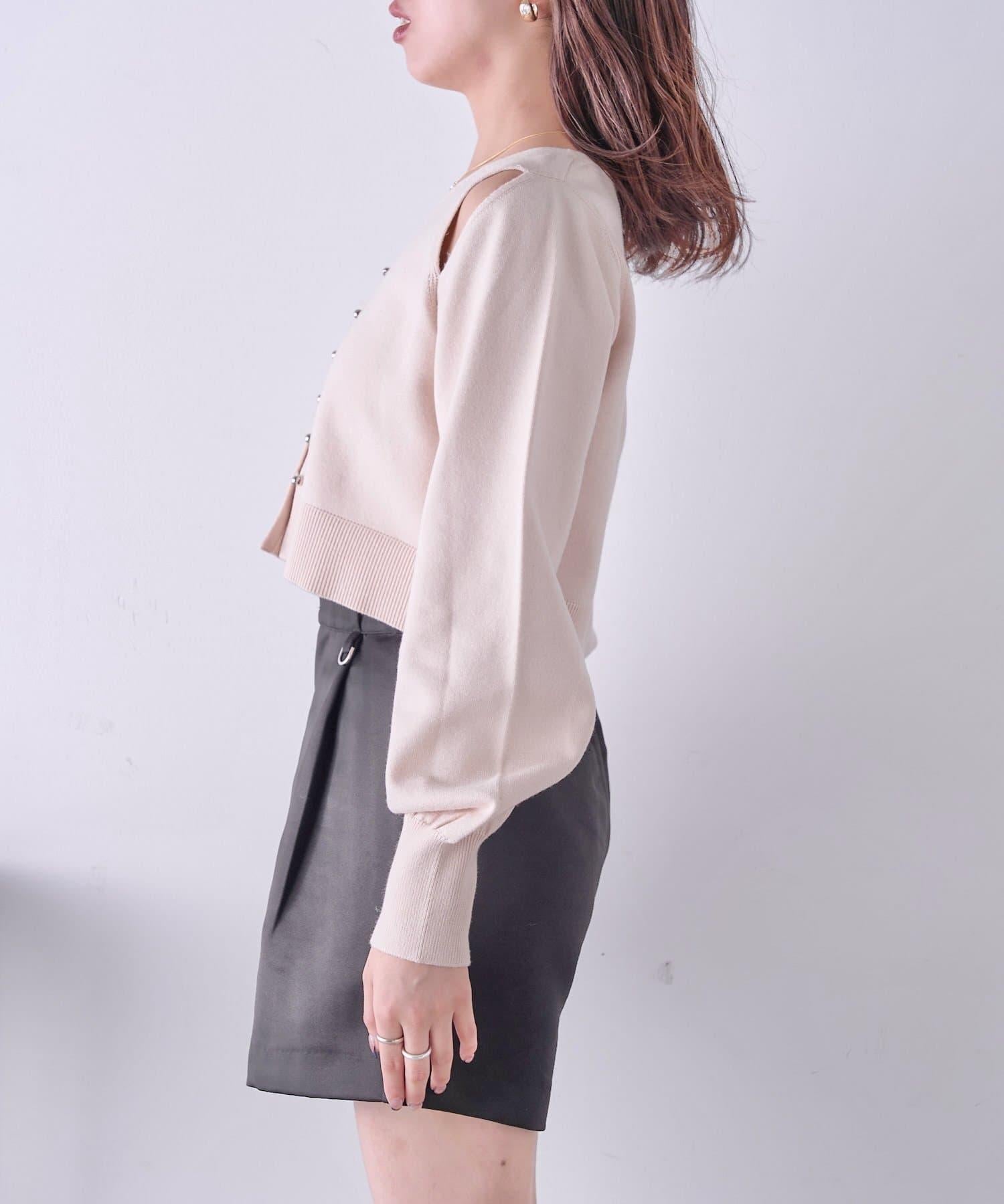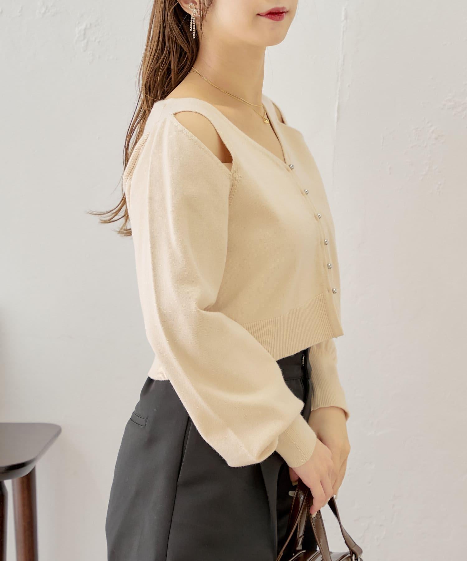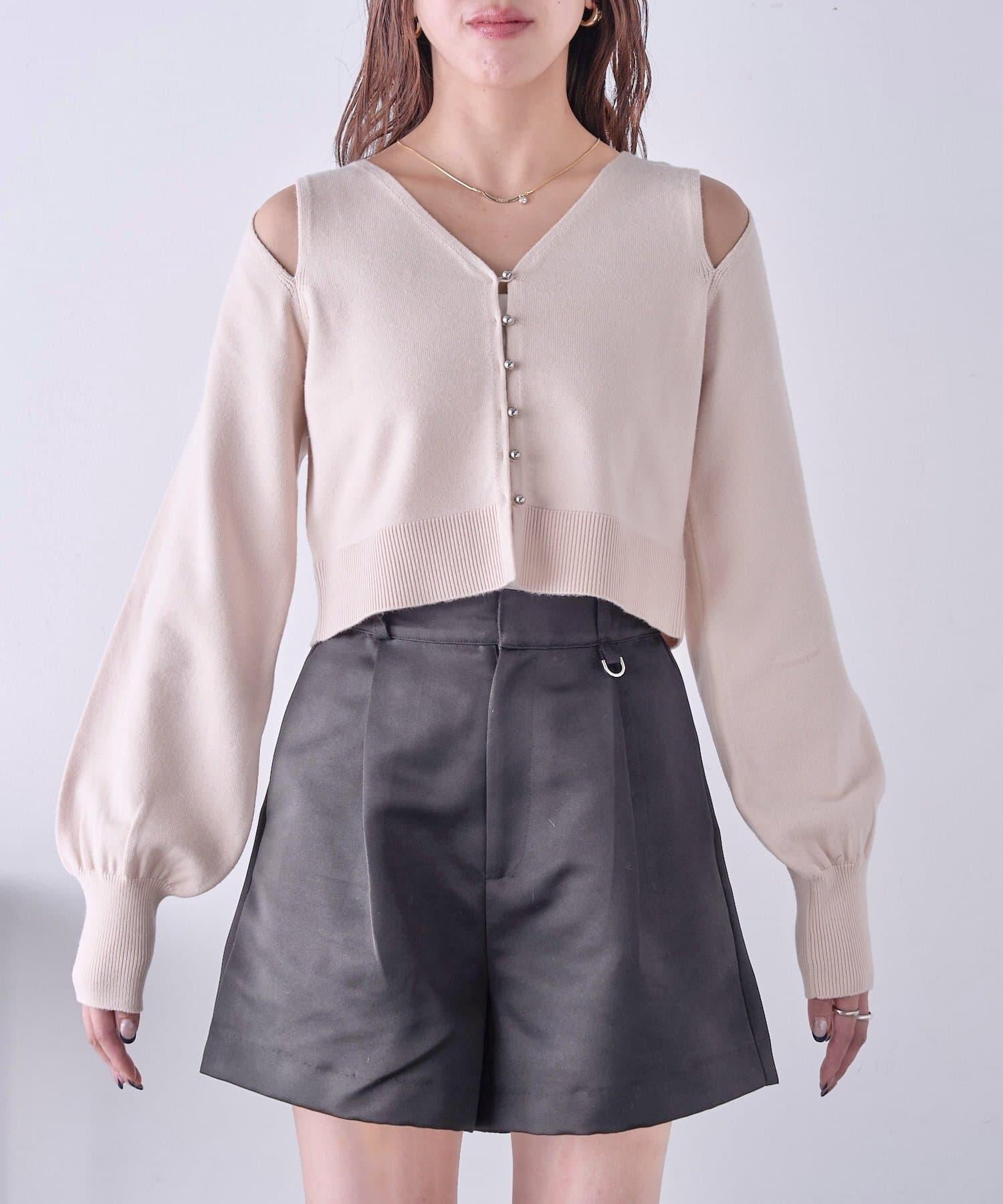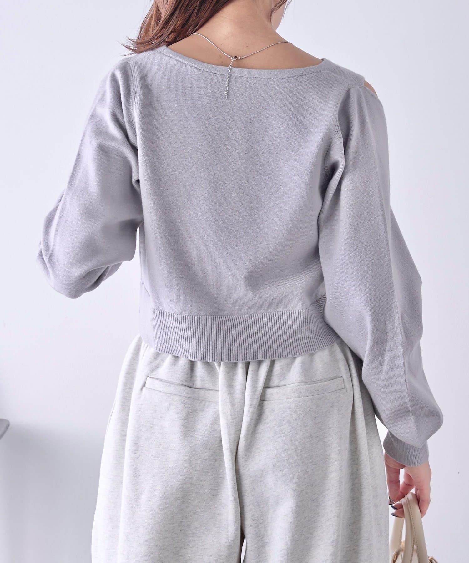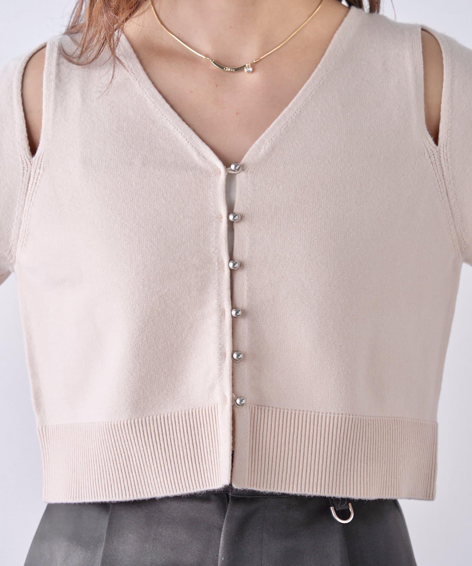 針織開衫採用開肩設計,恰到好處地展現出肌膚的完美曲線。