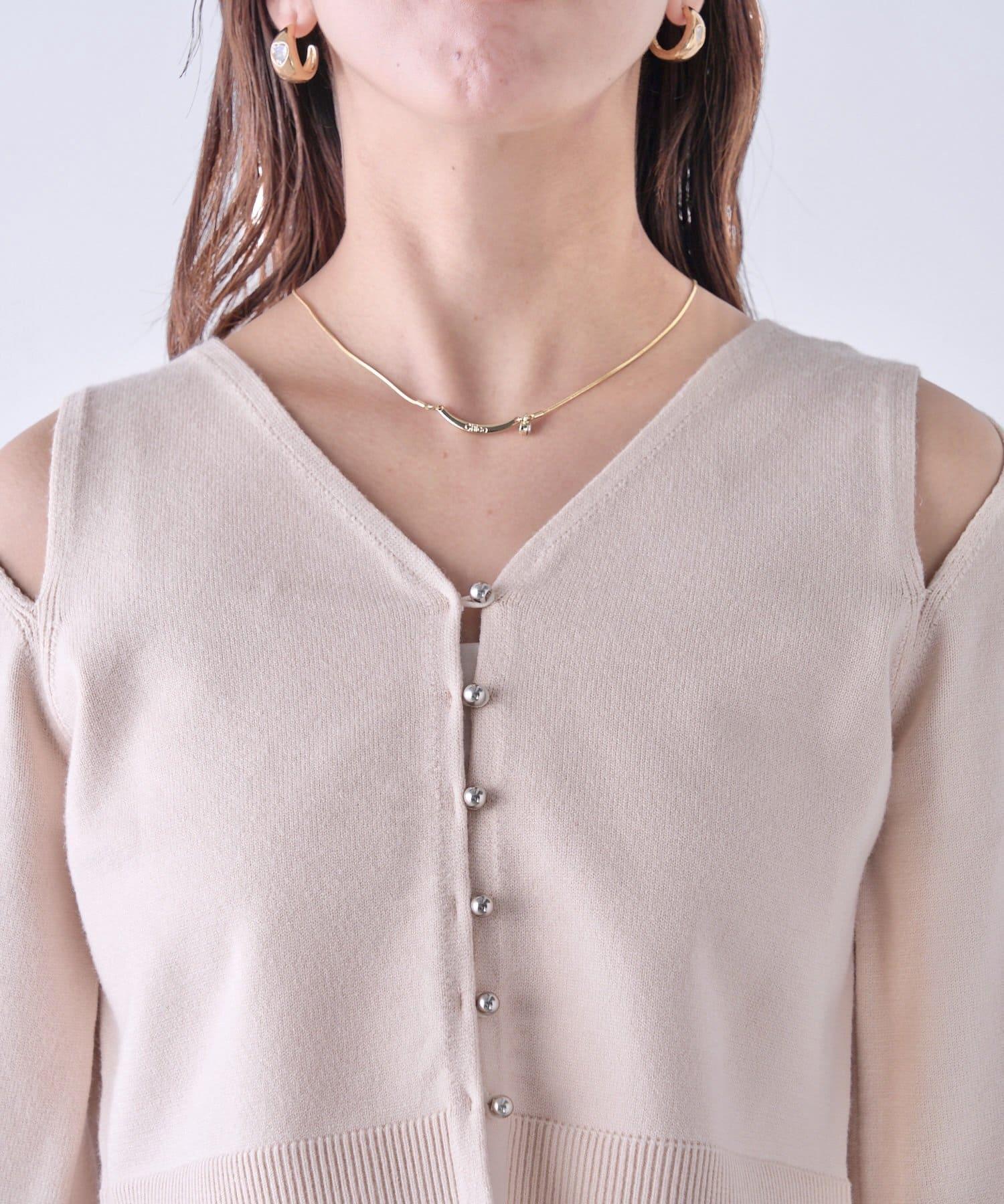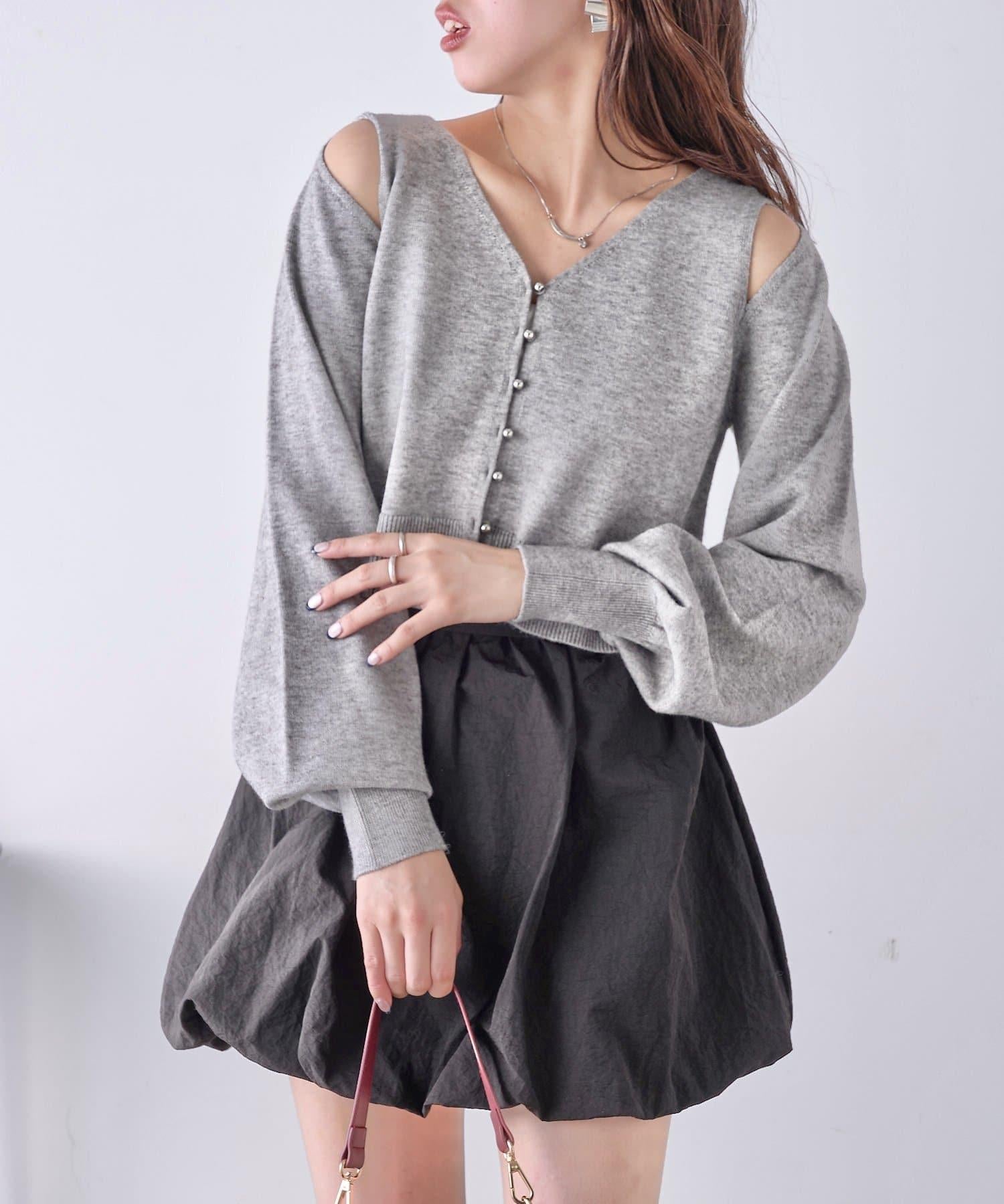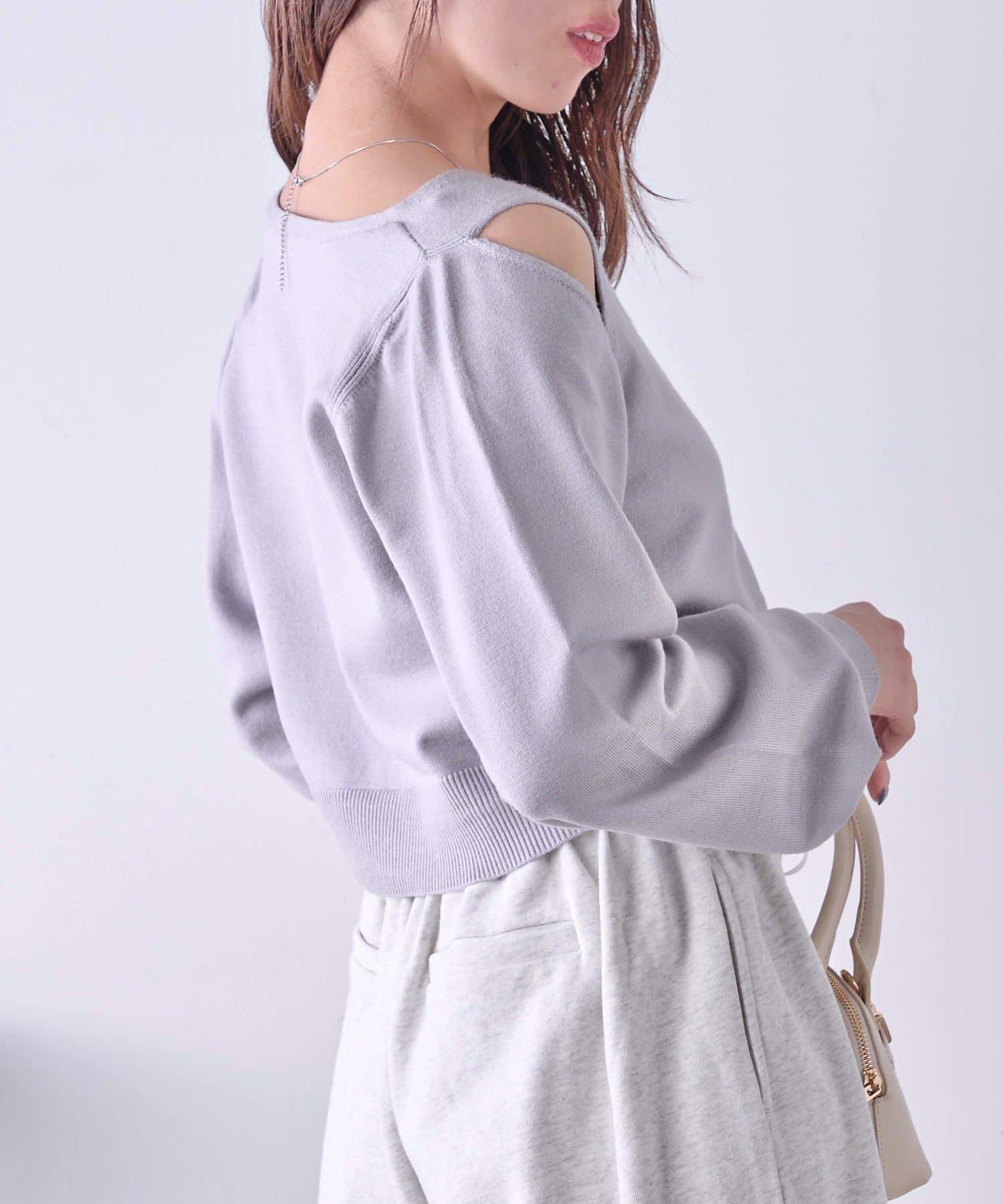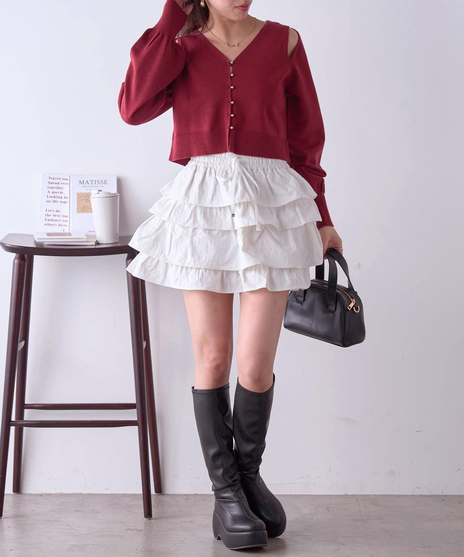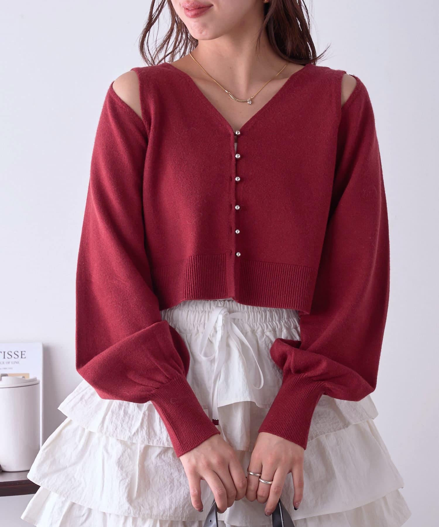 針織開衫採用開肩設計,恰到好處地展現出肌膚的完美曲線。