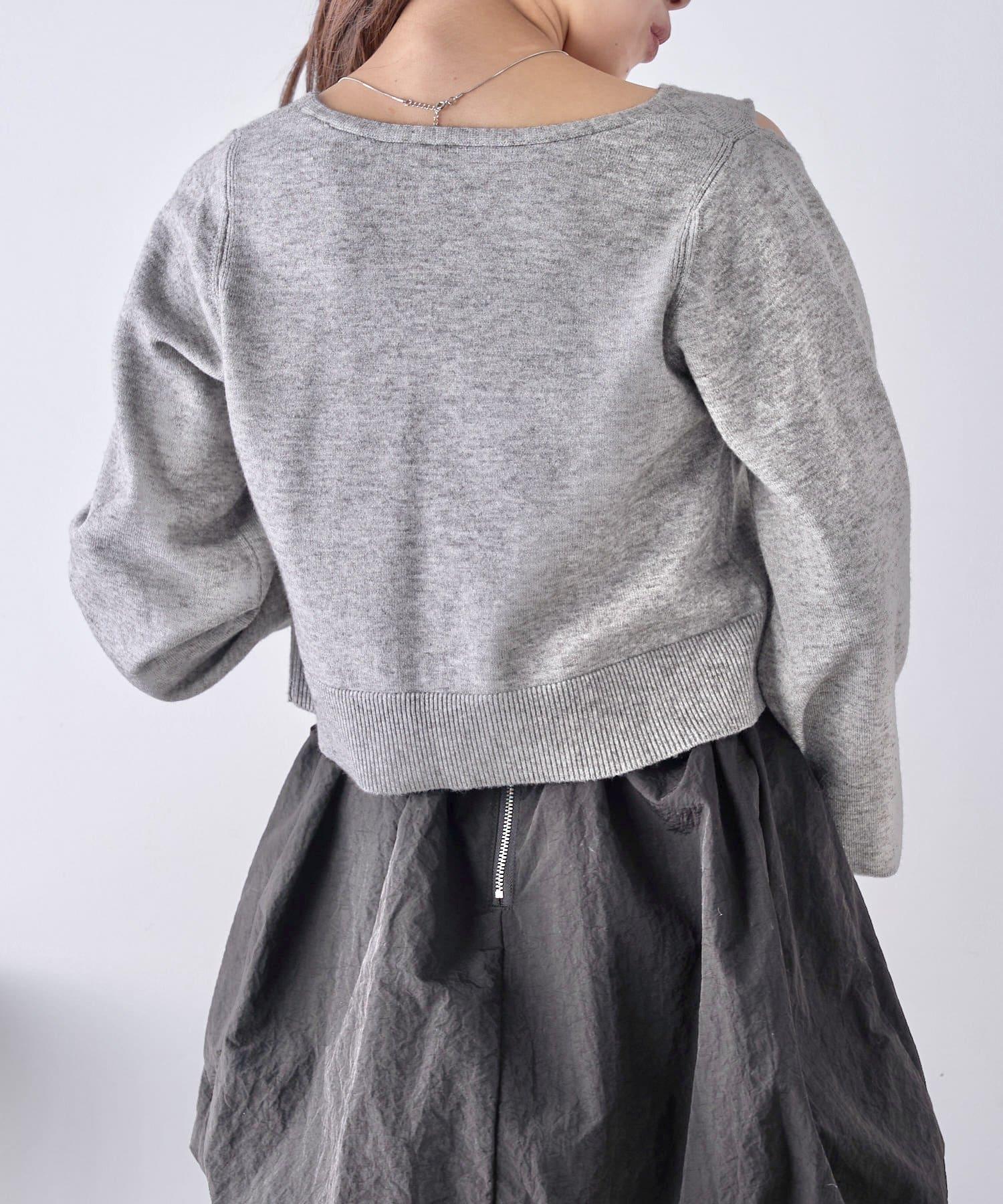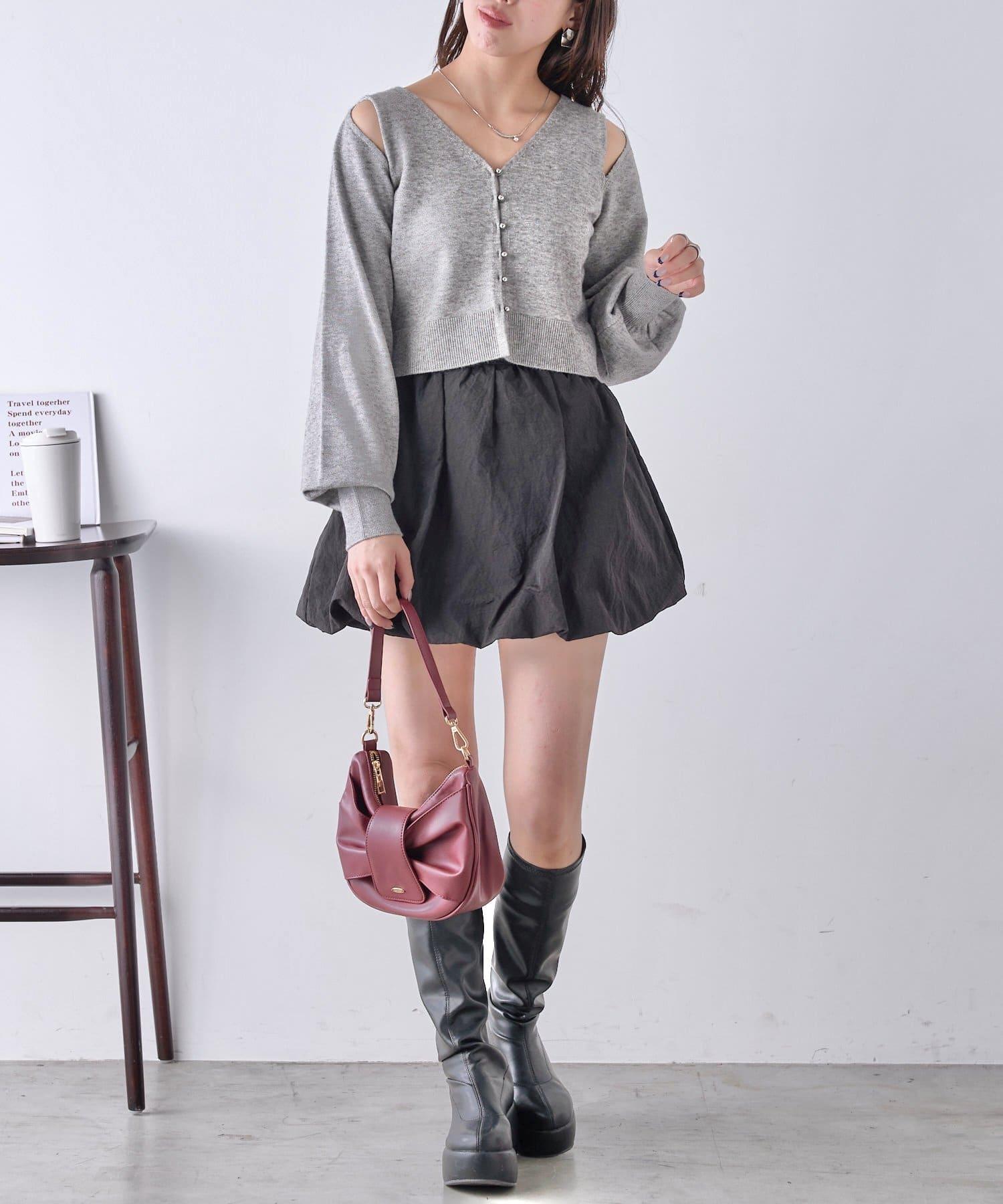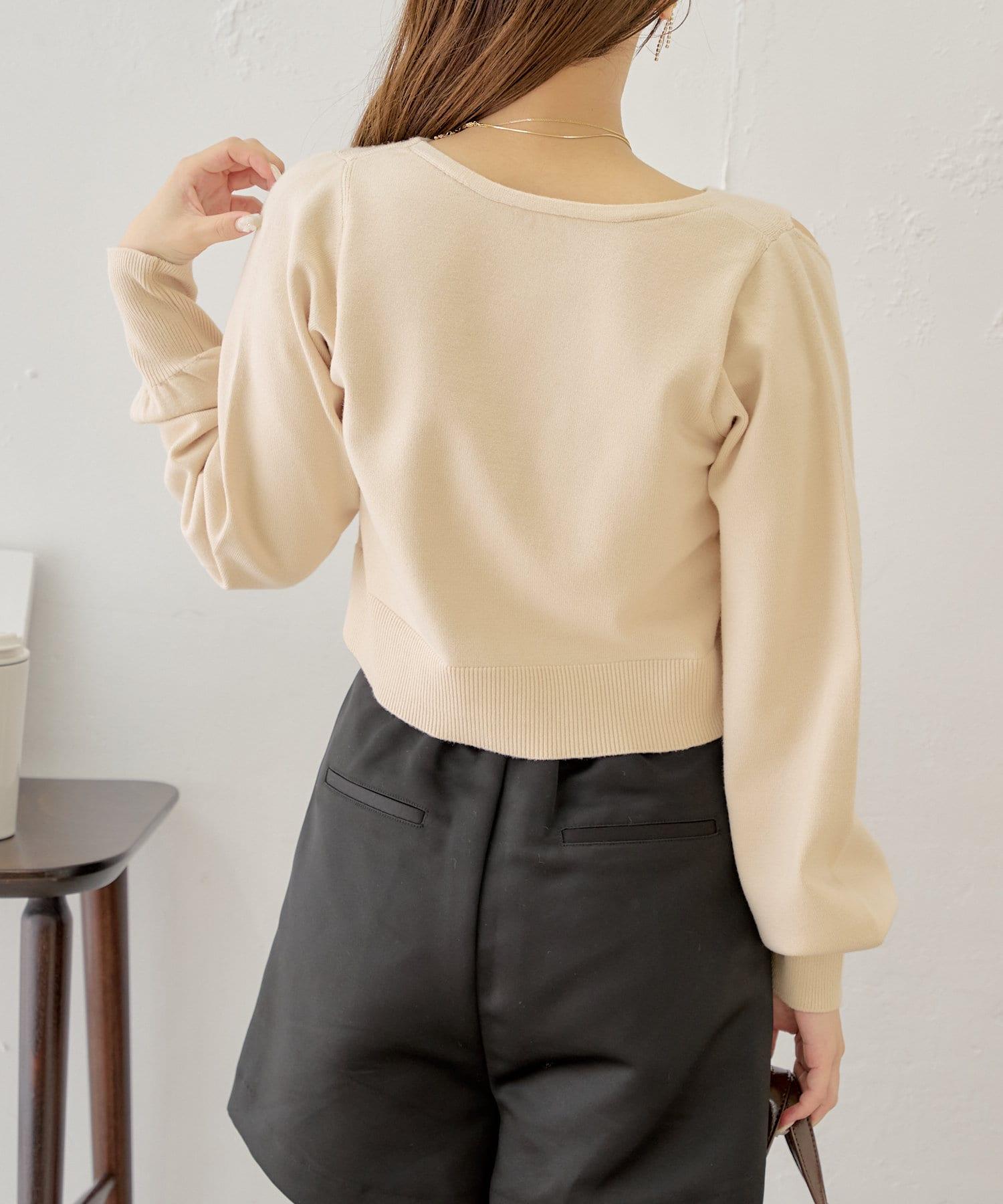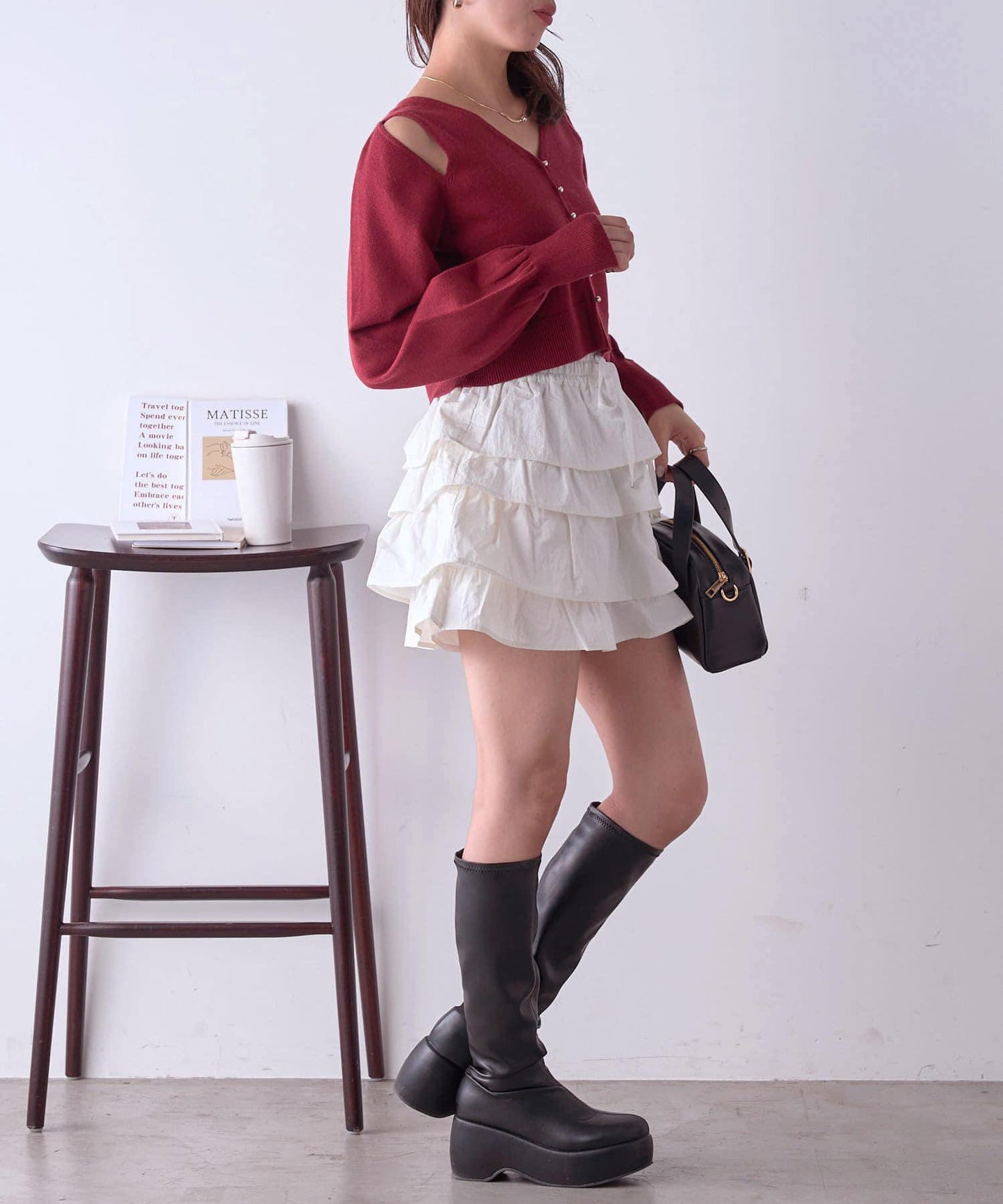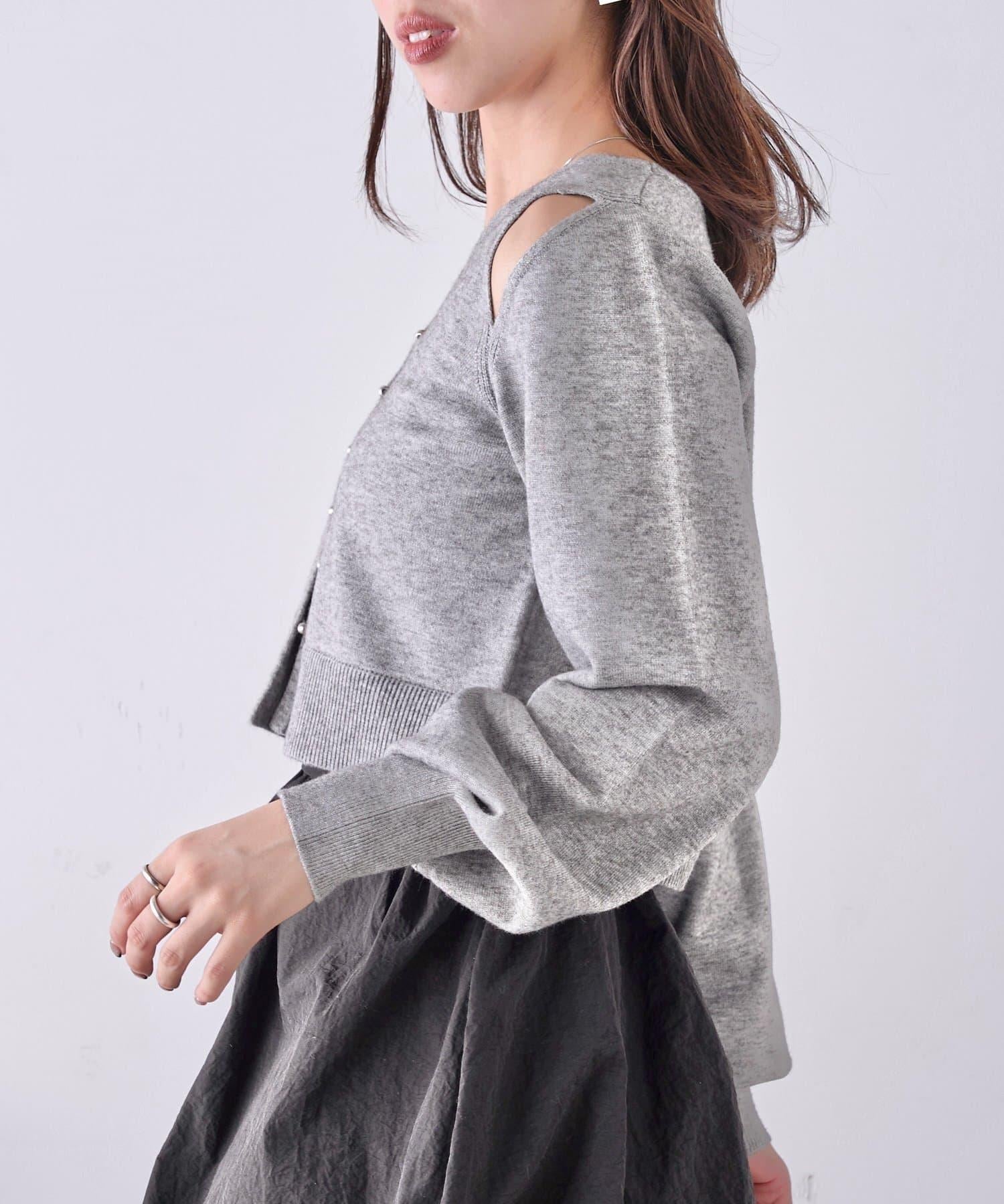 針織開衫採用開肩設計,恰到好處地展現出肌膚的完美曲線。