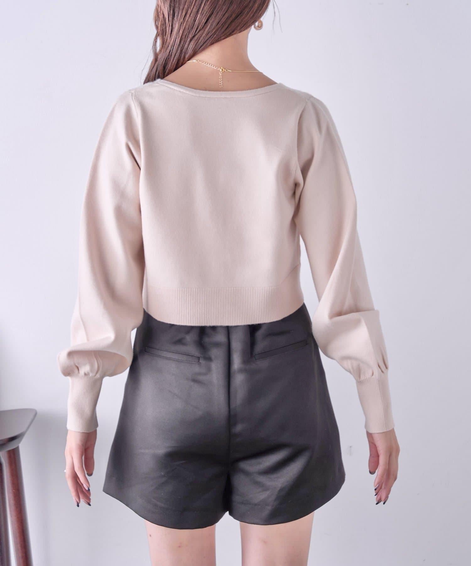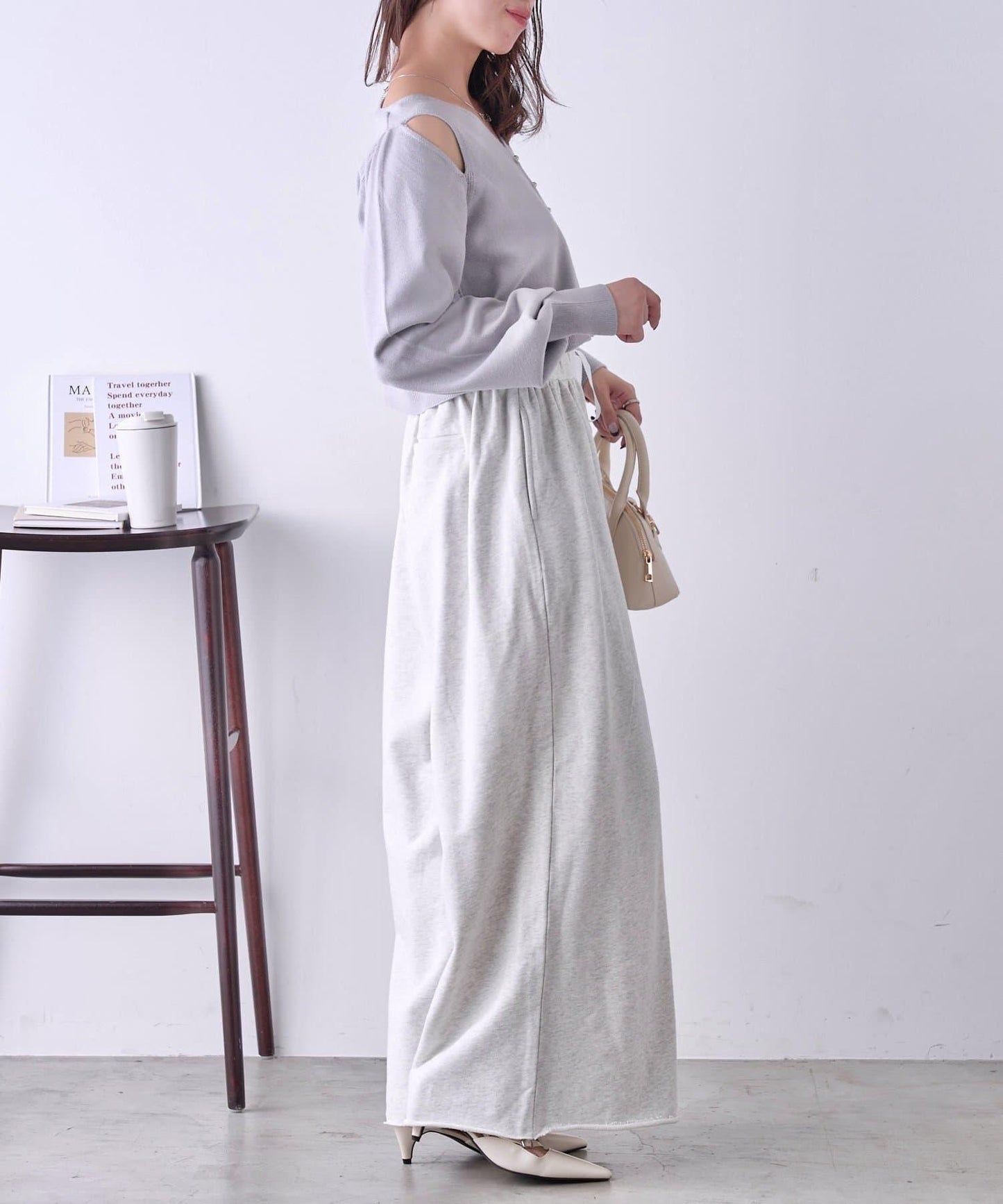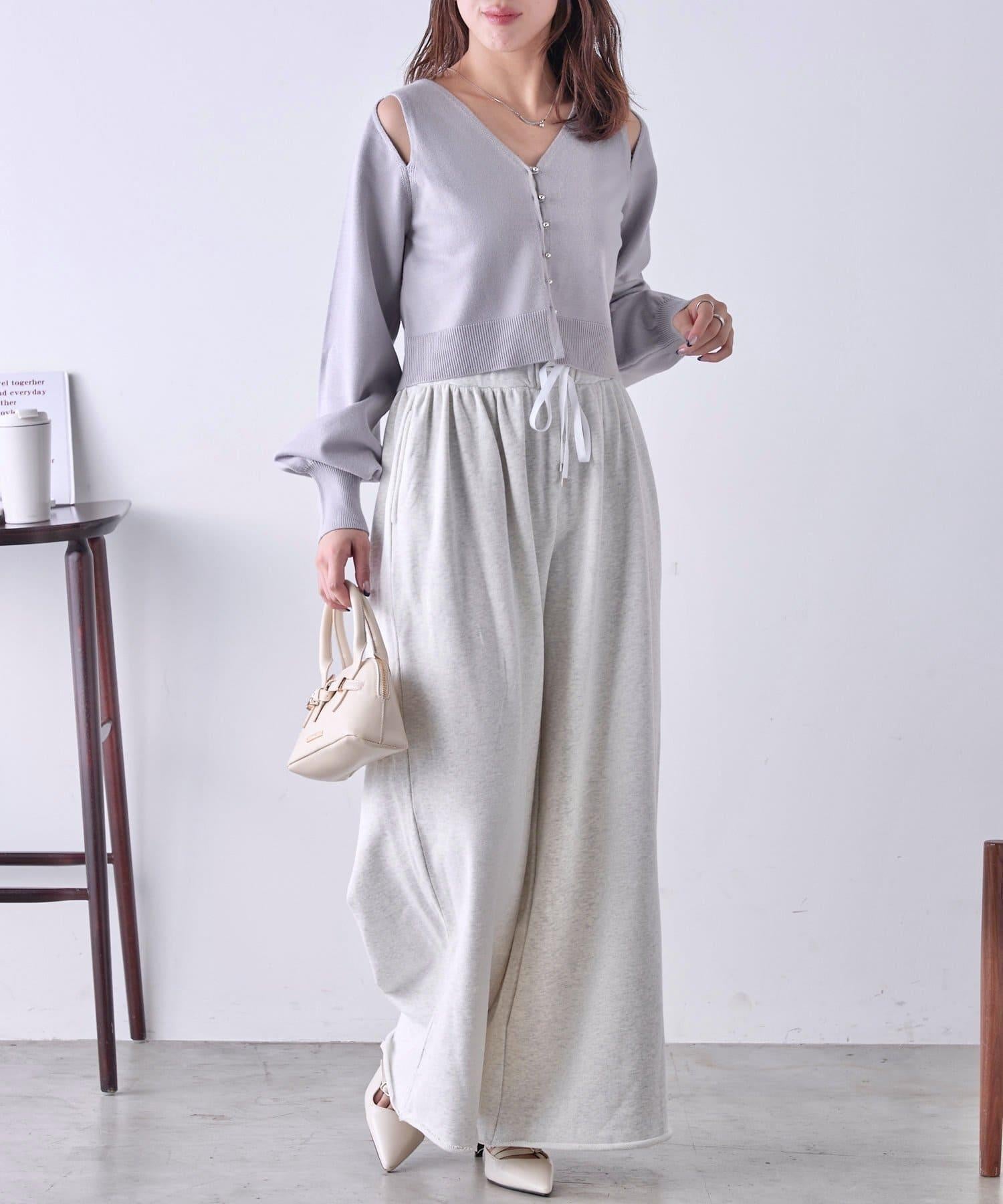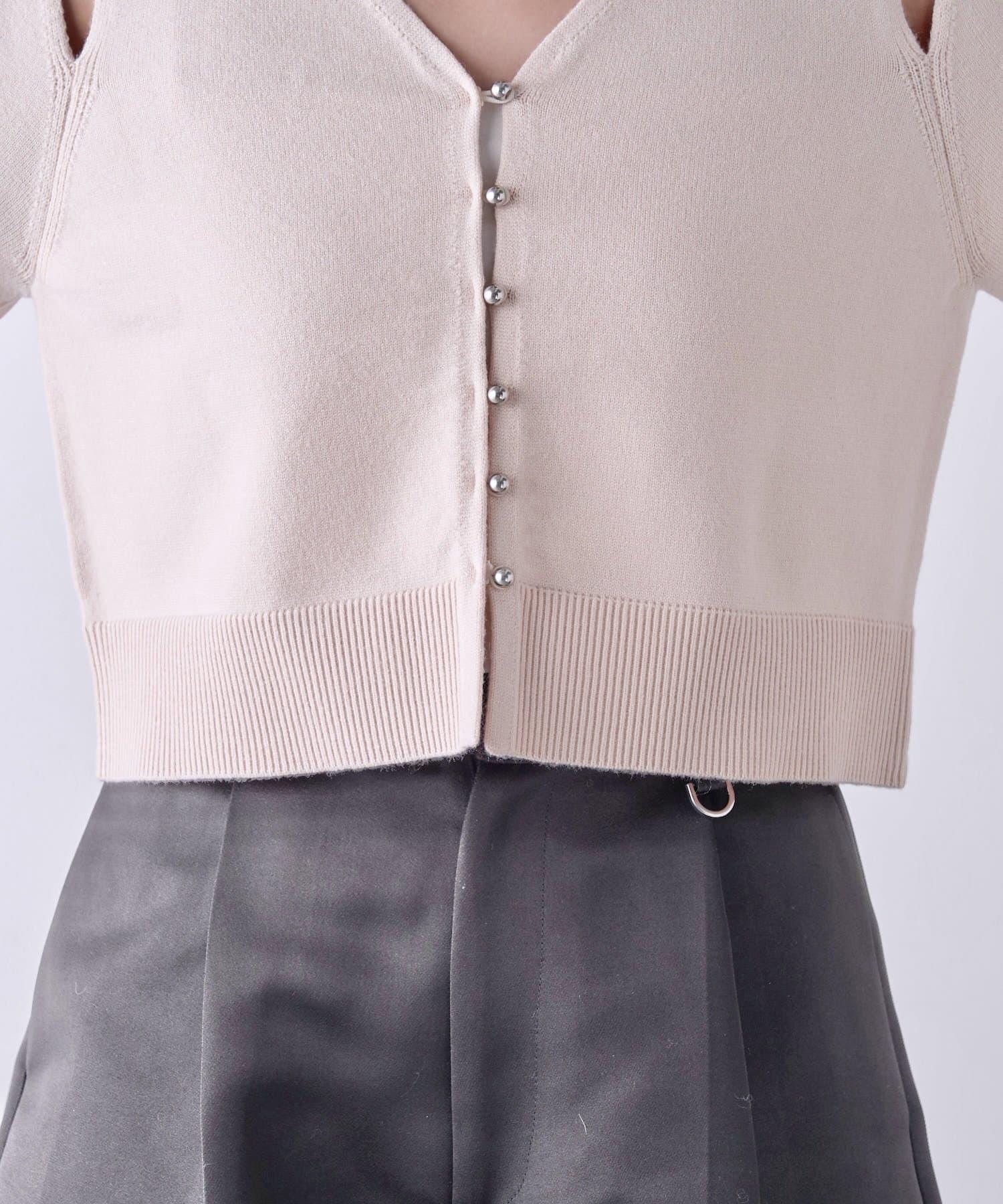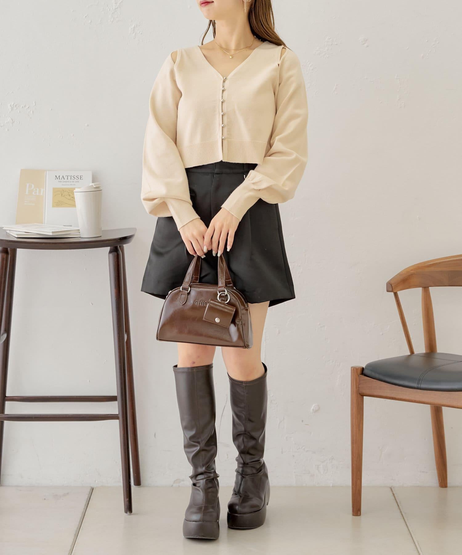 針織開衫採用開肩設計,恰到好處地展現出肌膚的完美曲線。