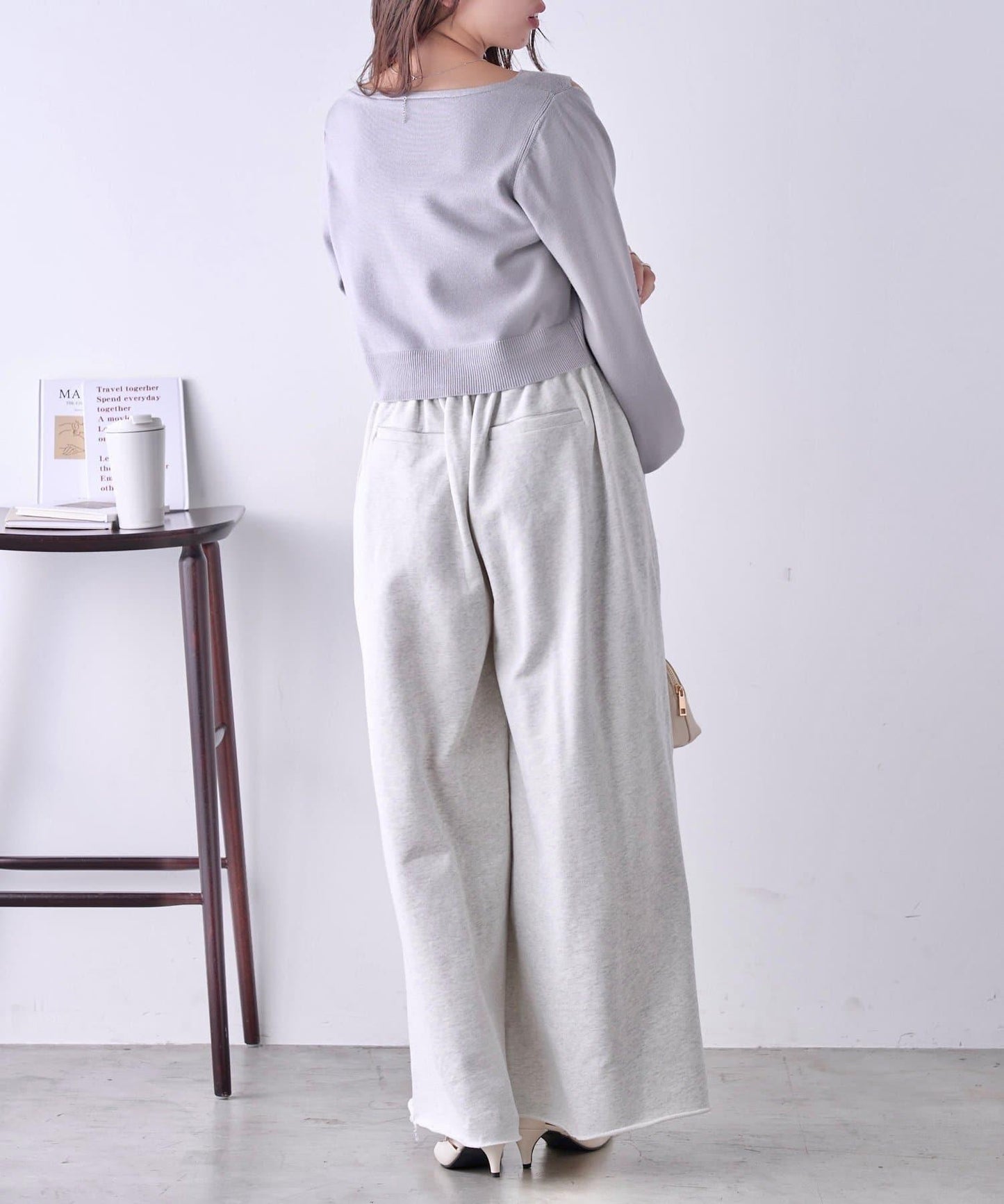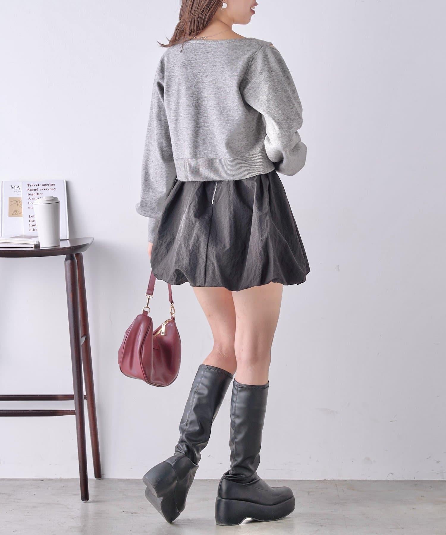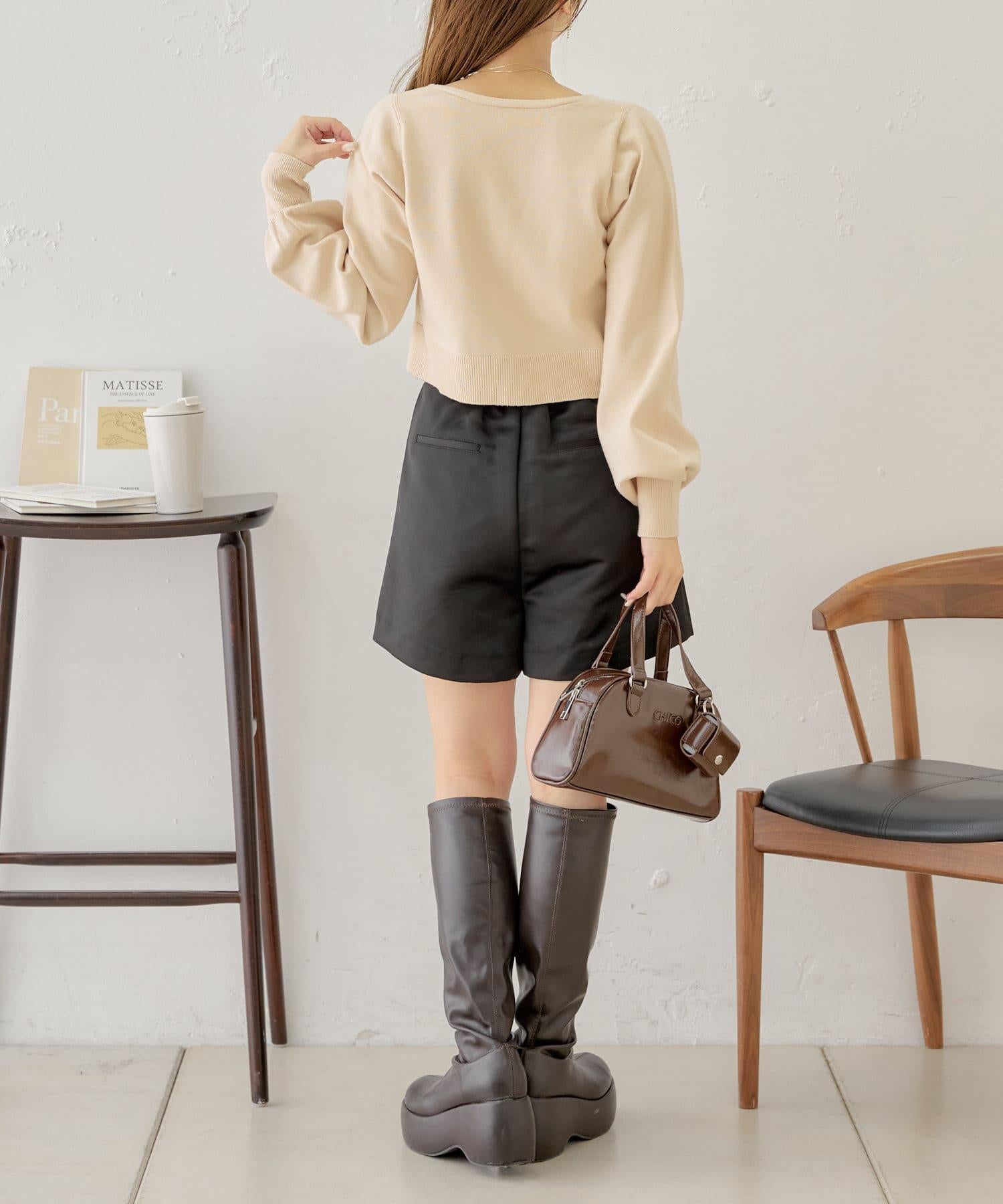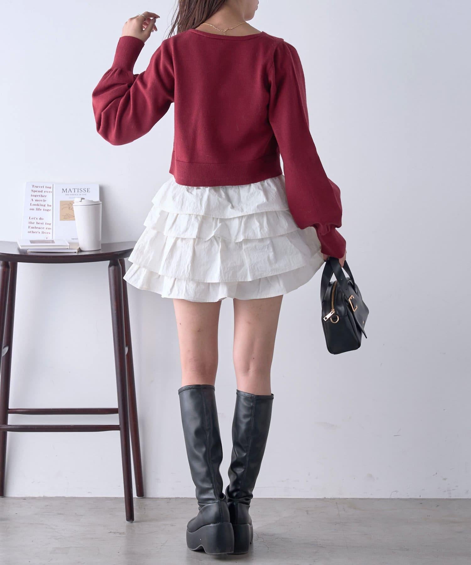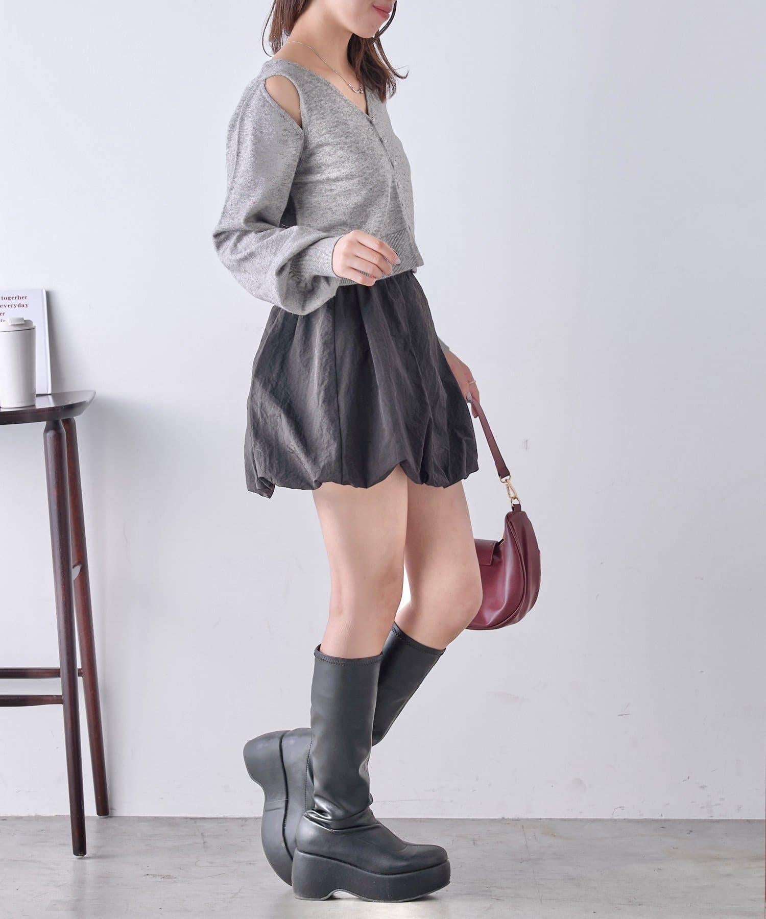 針織開衫採用開肩設計,恰到好處地展現出肌膚的完美曲線。