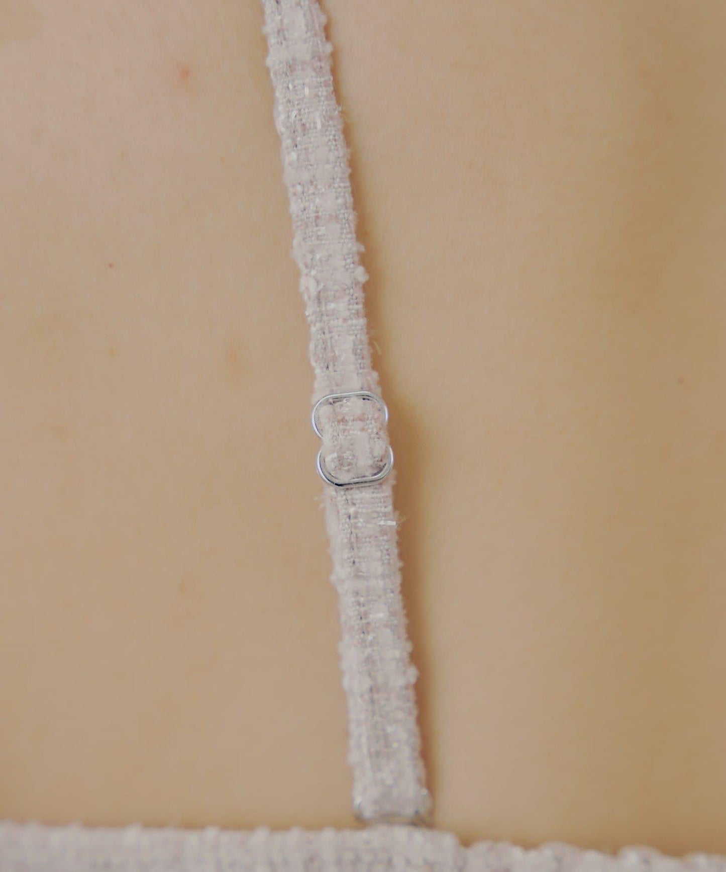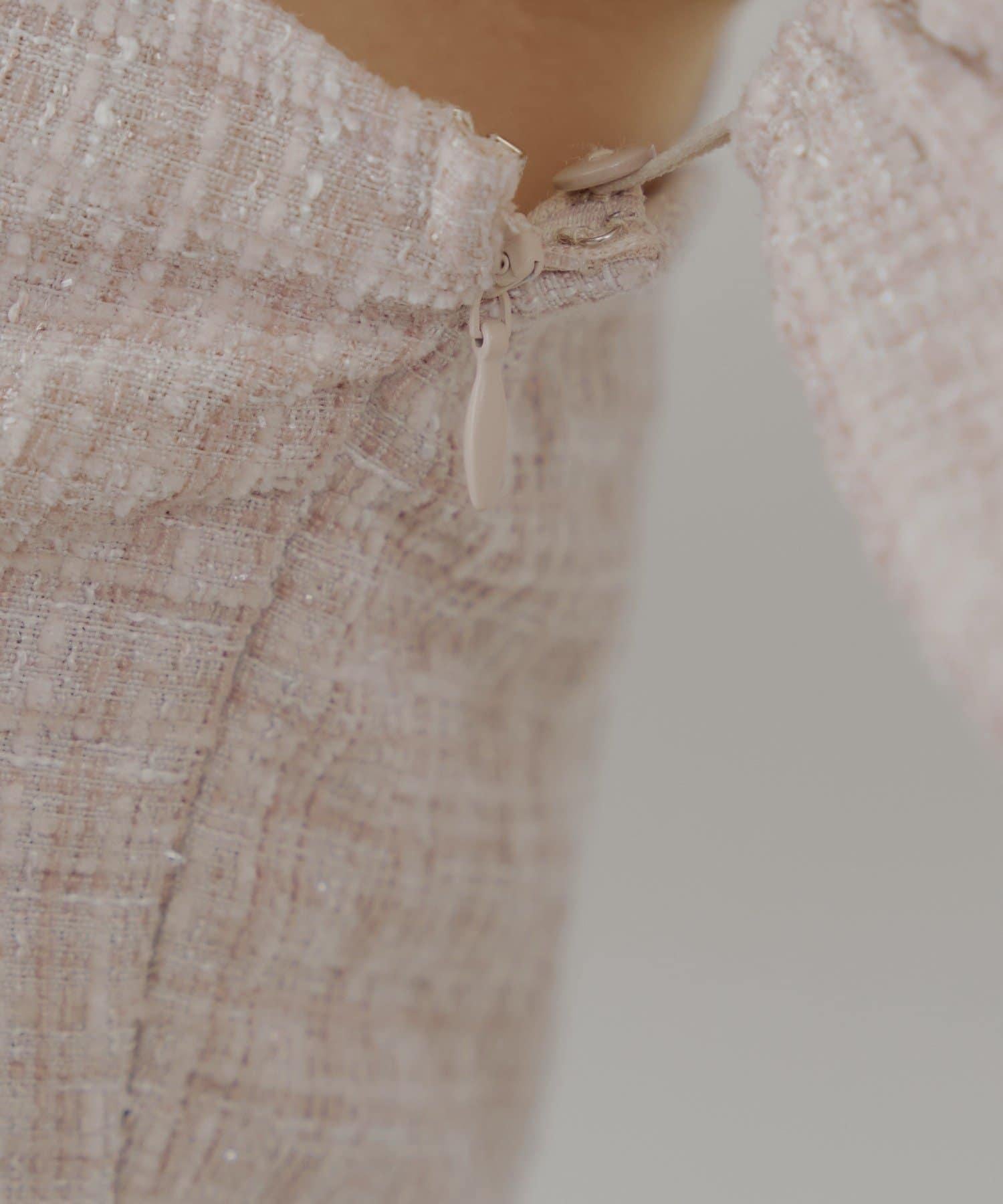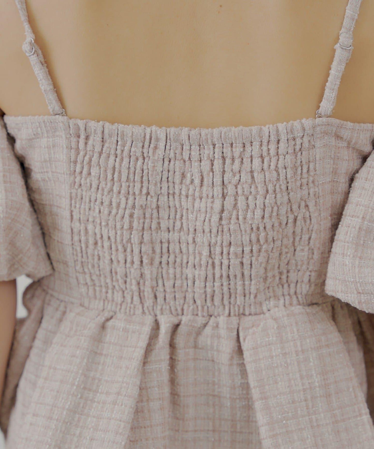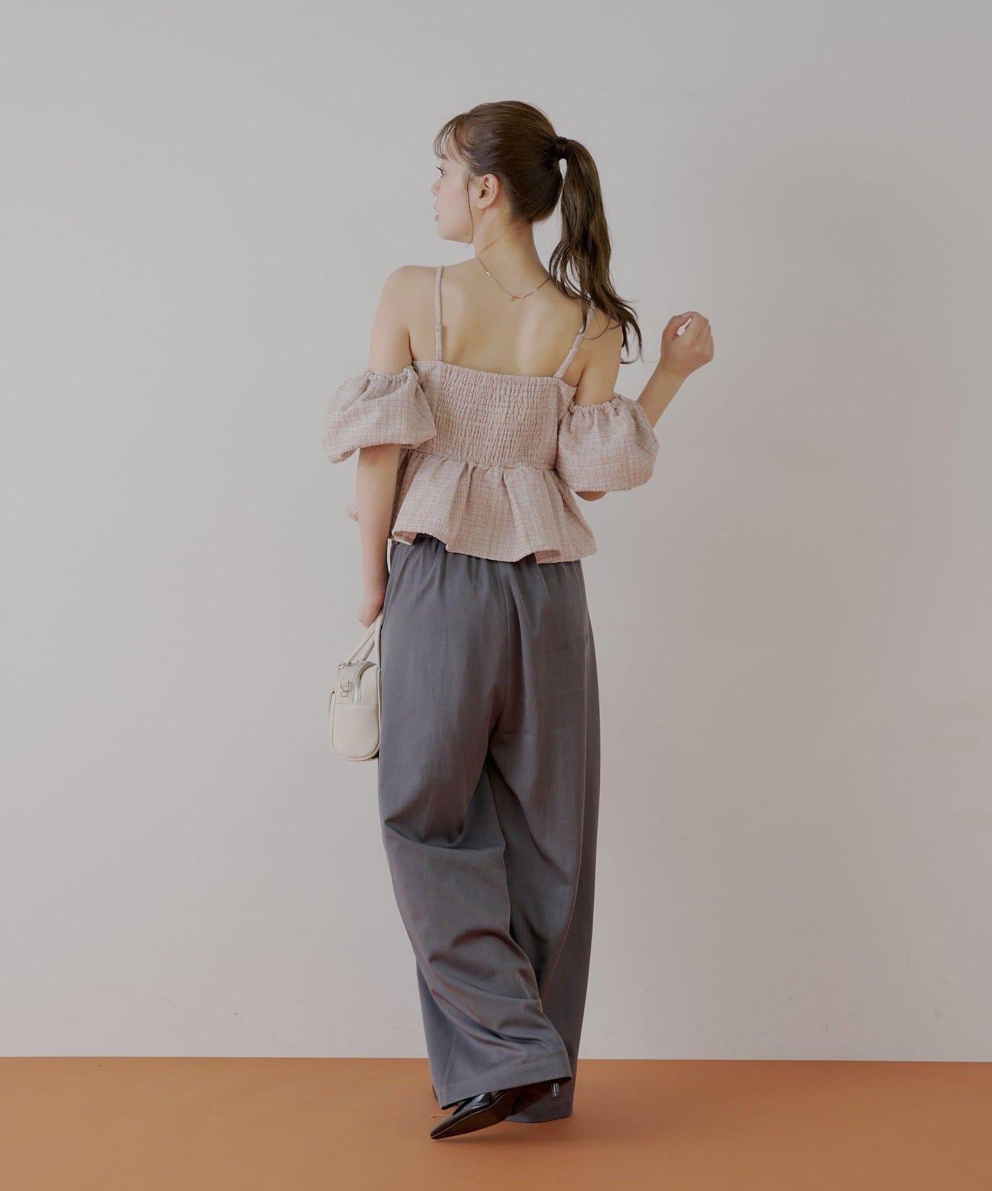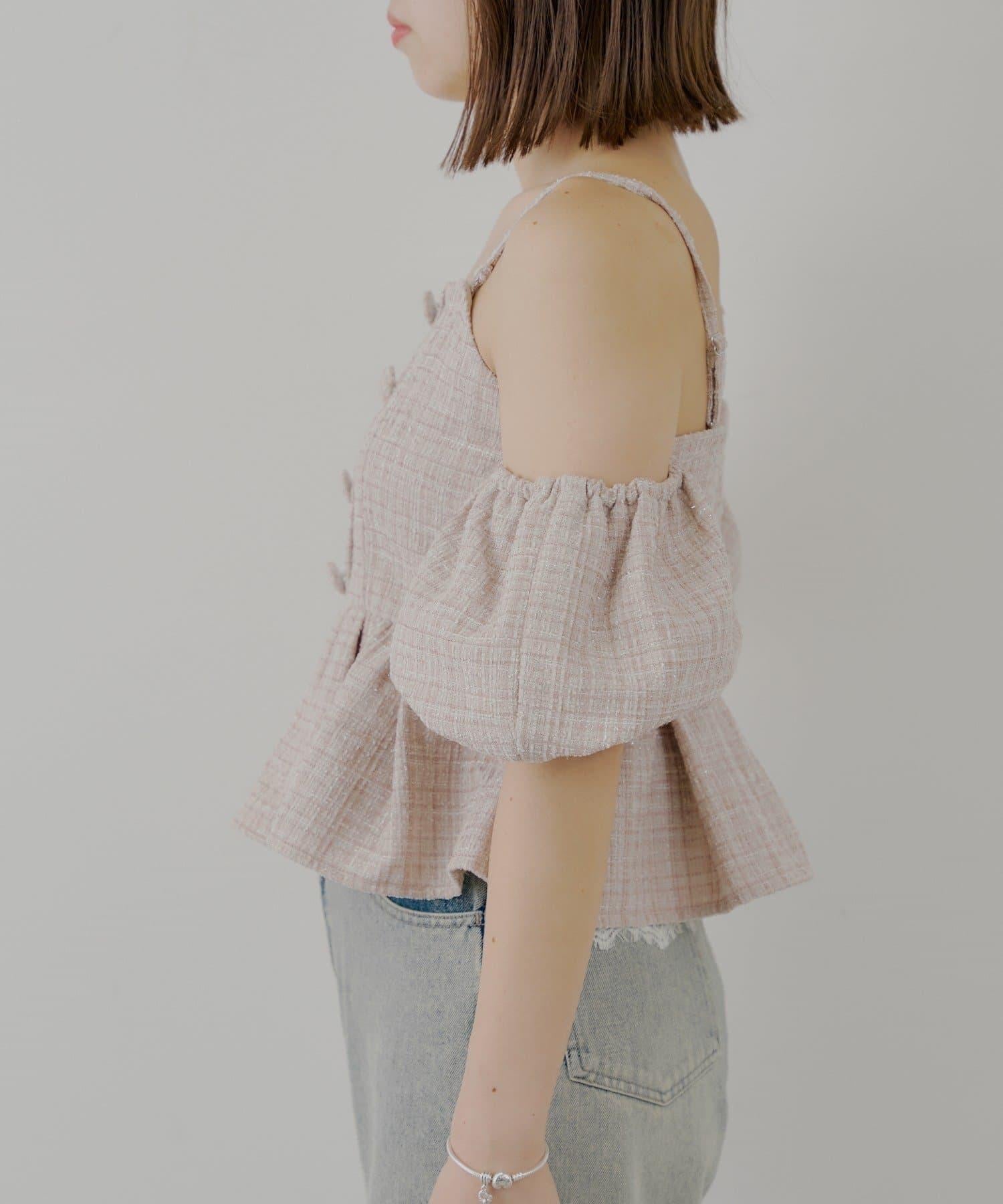 這款毛呢露肩上衣採用雙向設計,可作為露肩上衣穿著。