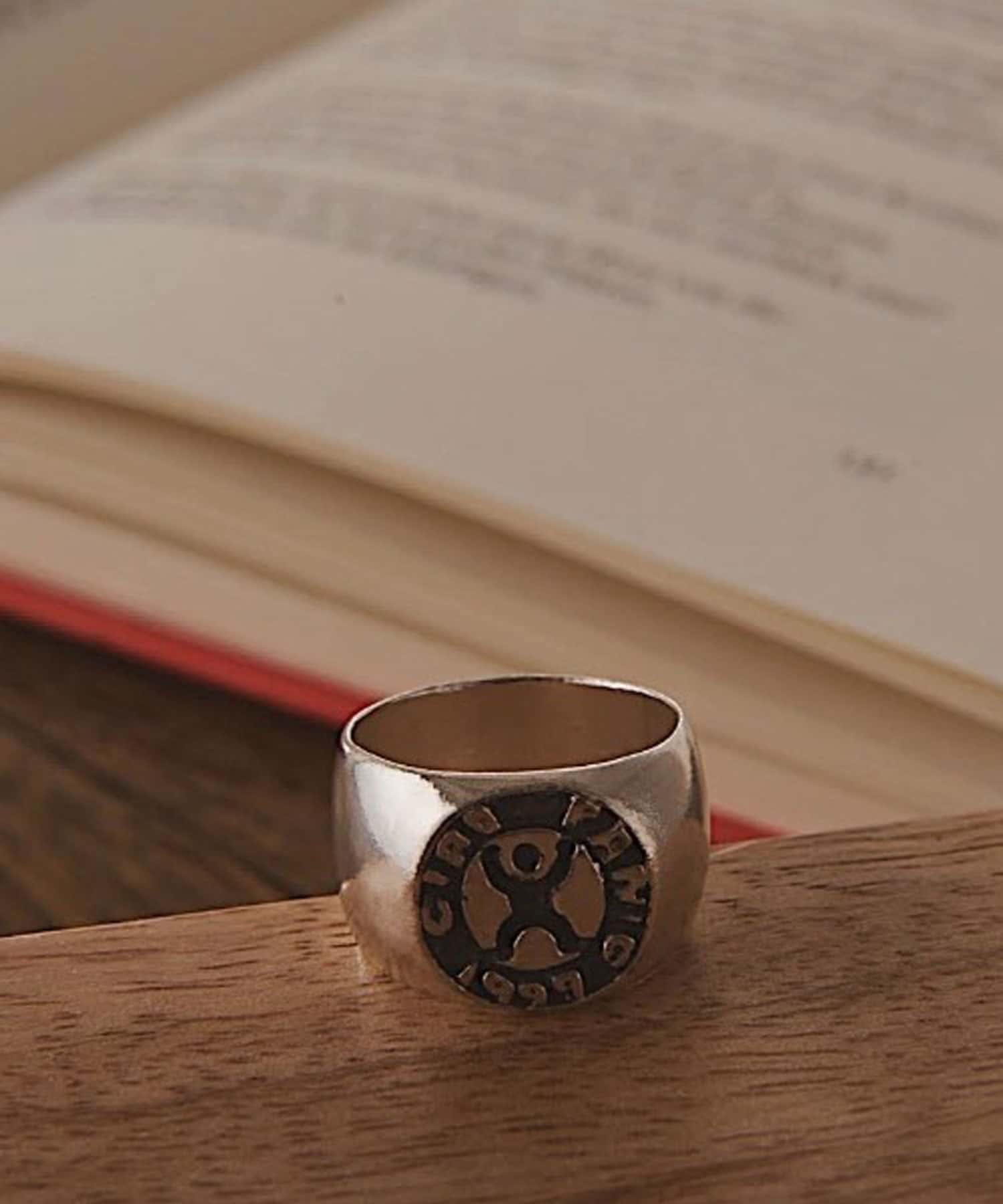 該款戒指經過重新塑形,寬環部分略微縮小,打造出中性款式。