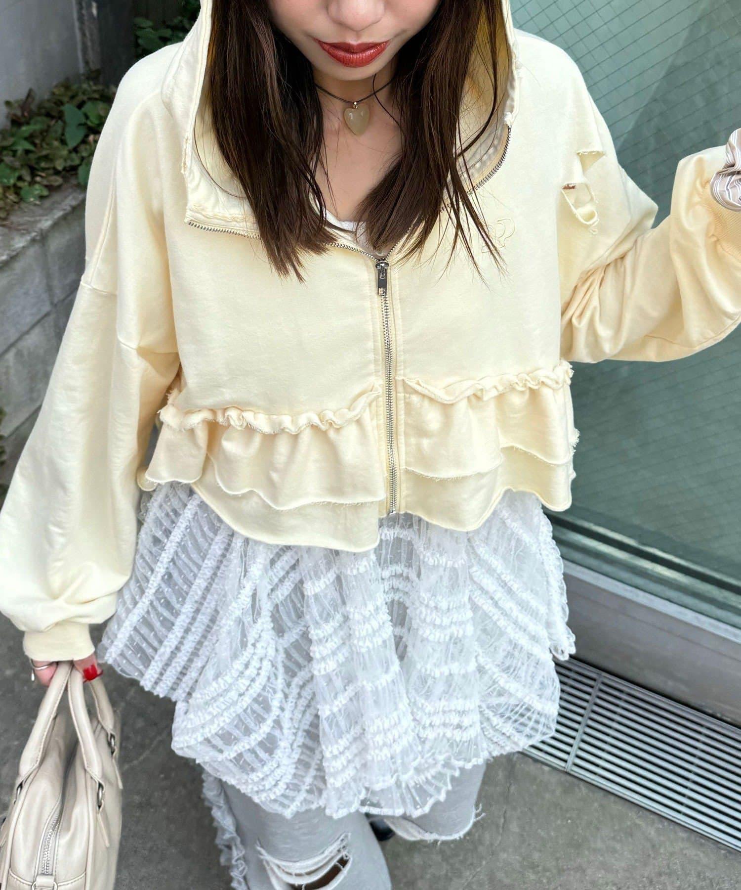 【Ciaopanic】CP標誌荷葉邊層疊破洞衛衣