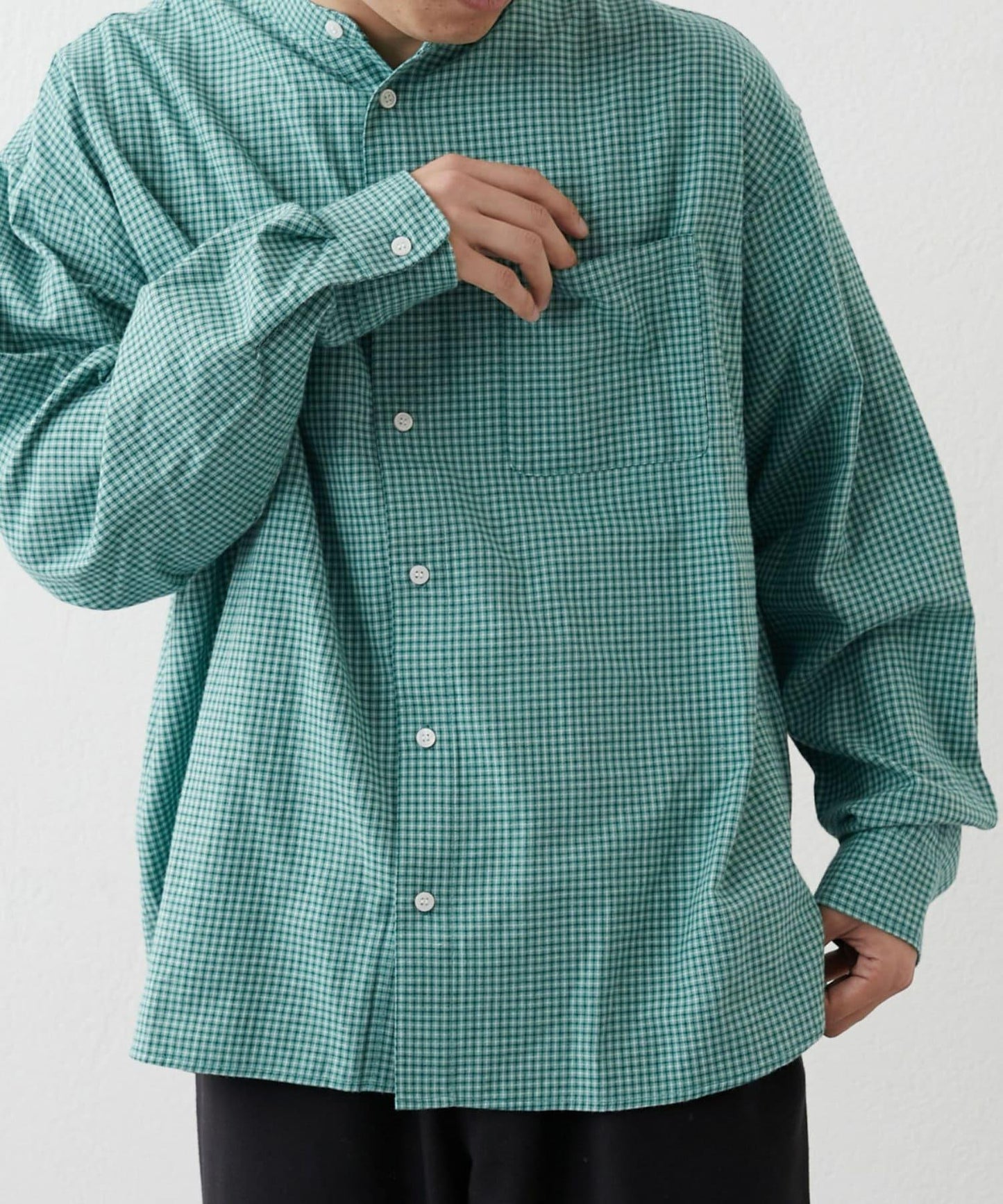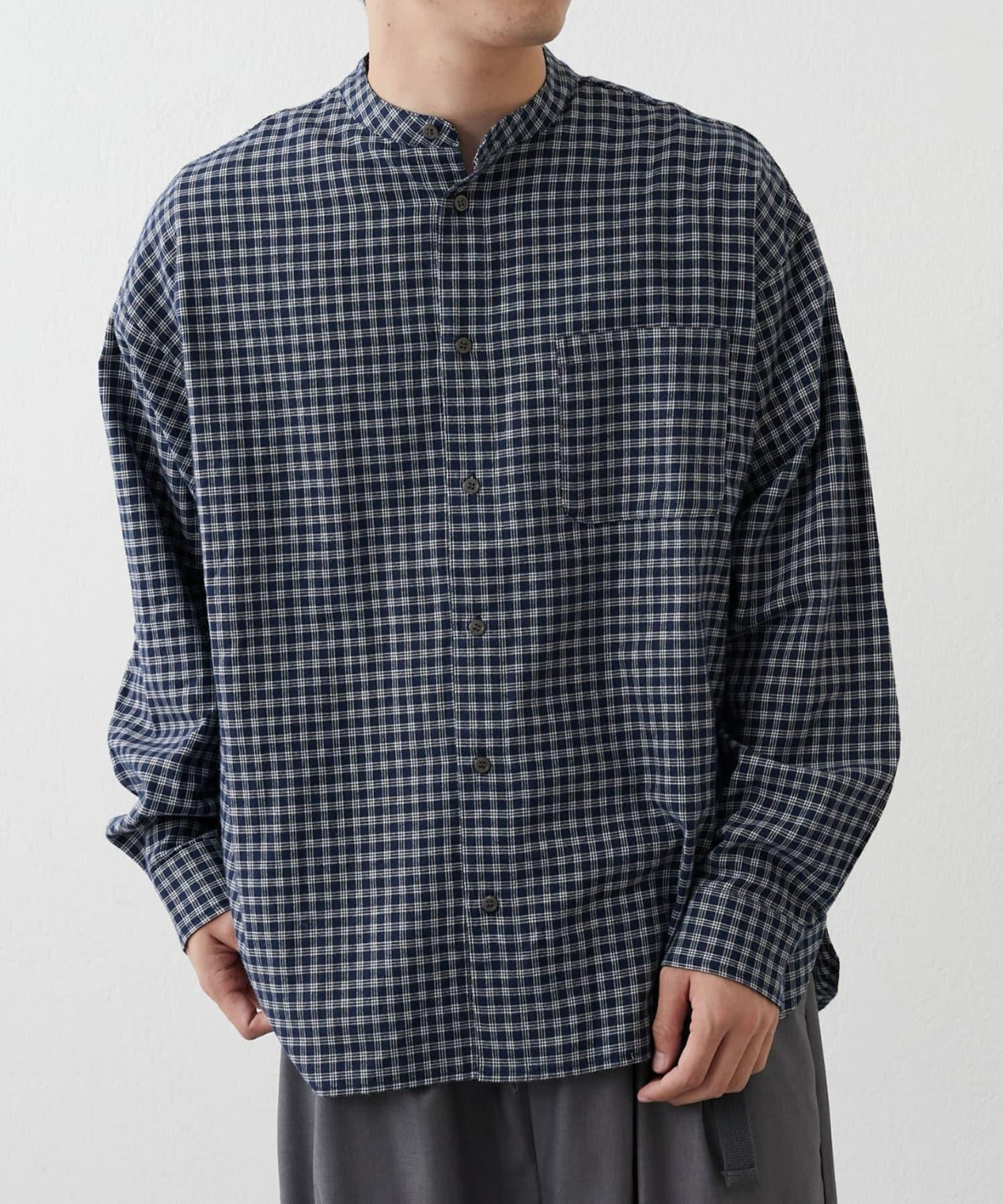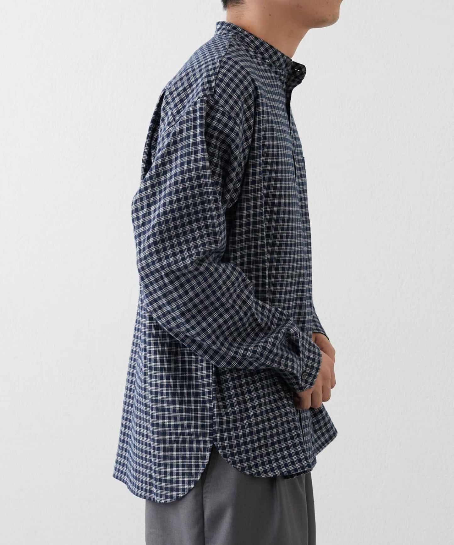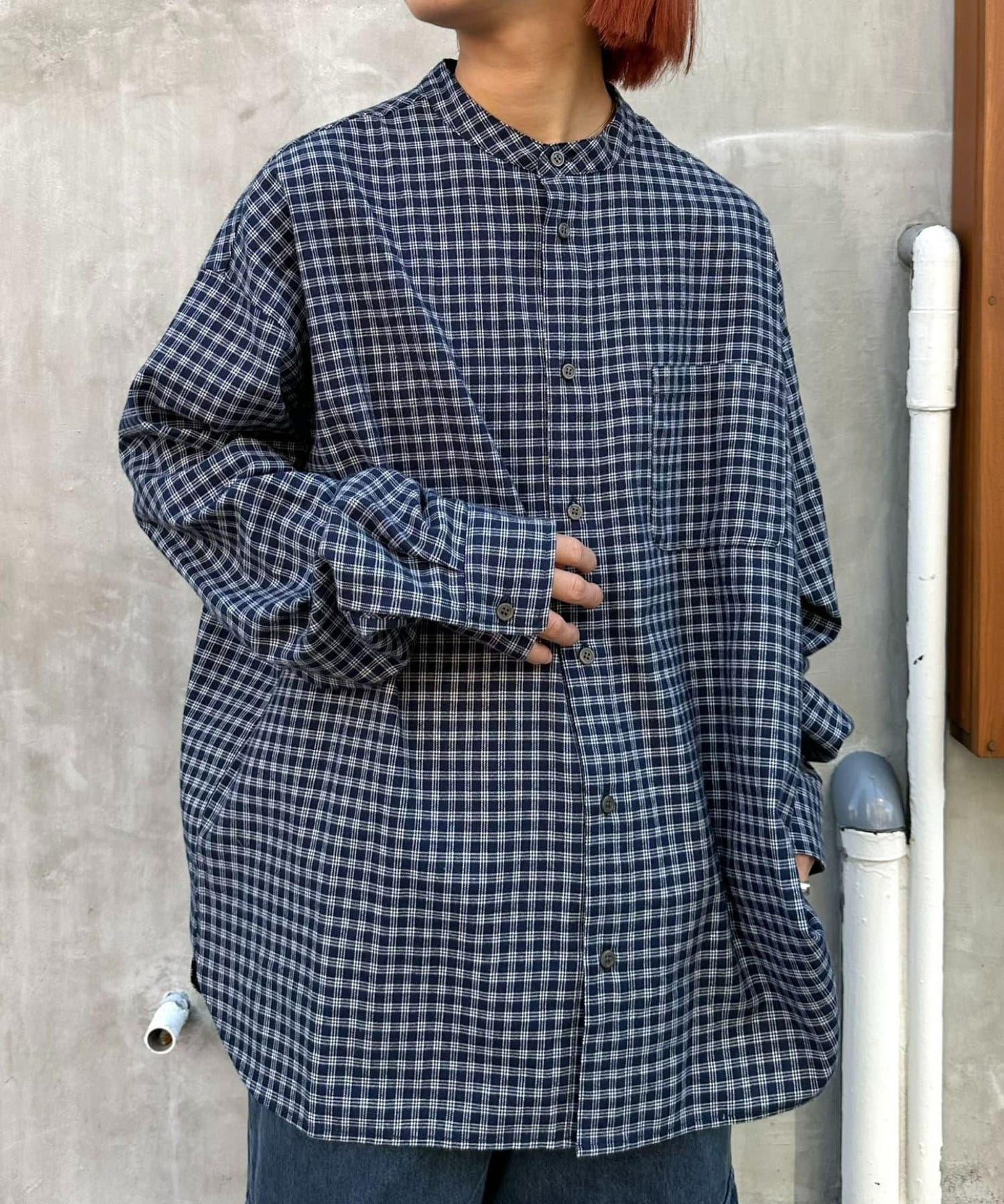 這款棋盤格襯衫表面略有磨毛,非常適合秋冬季節穿著。