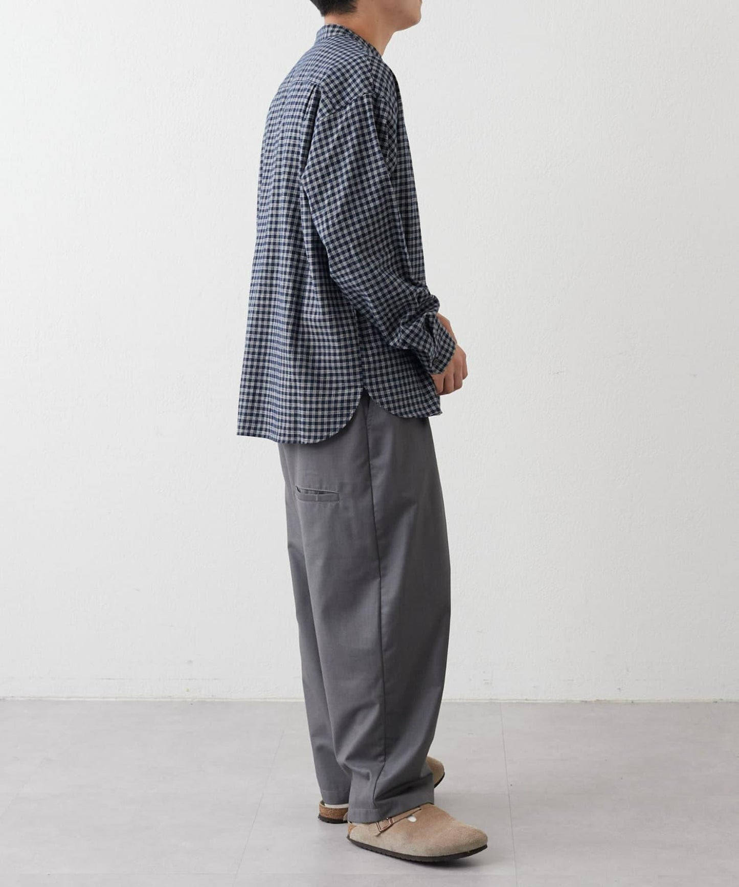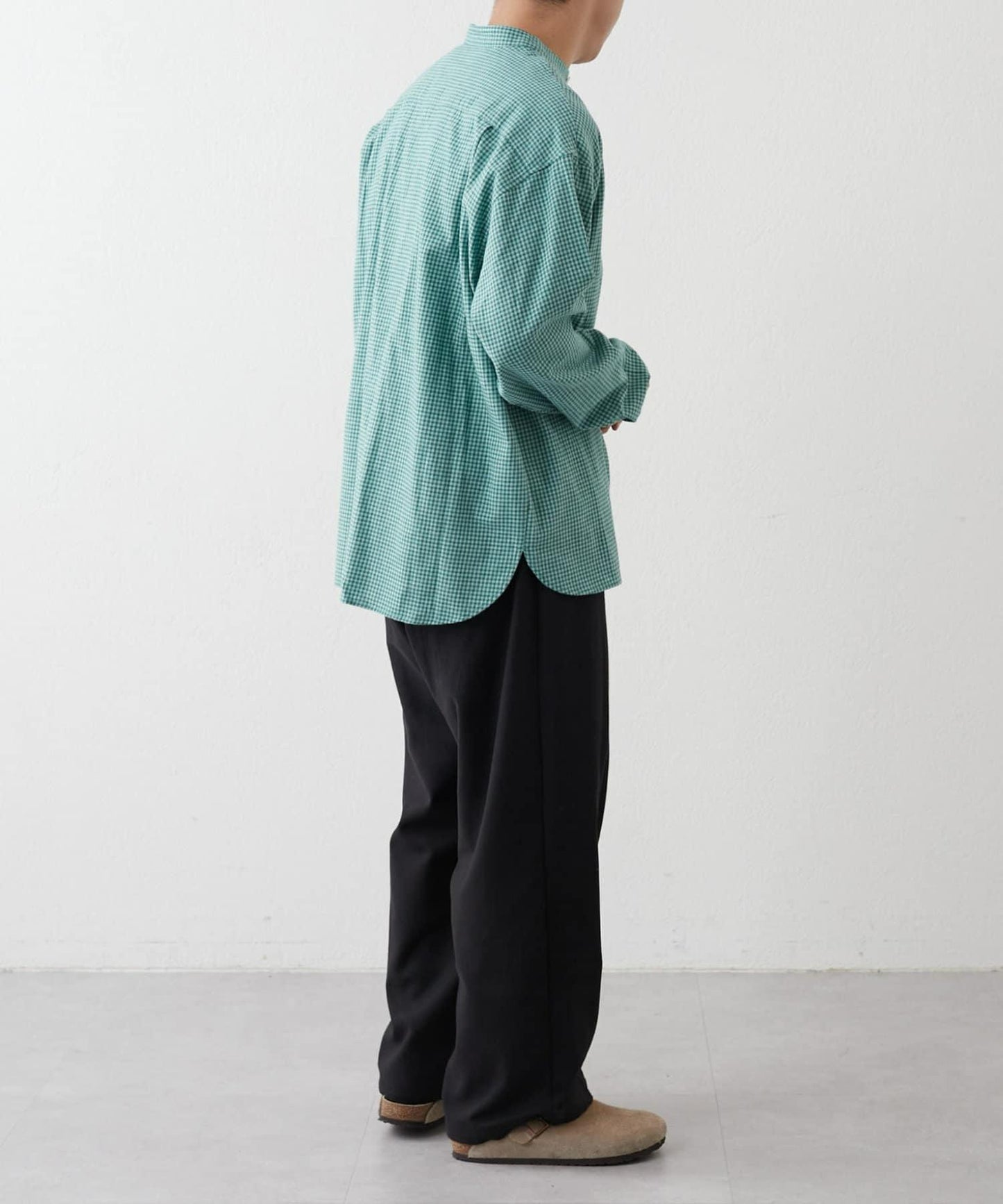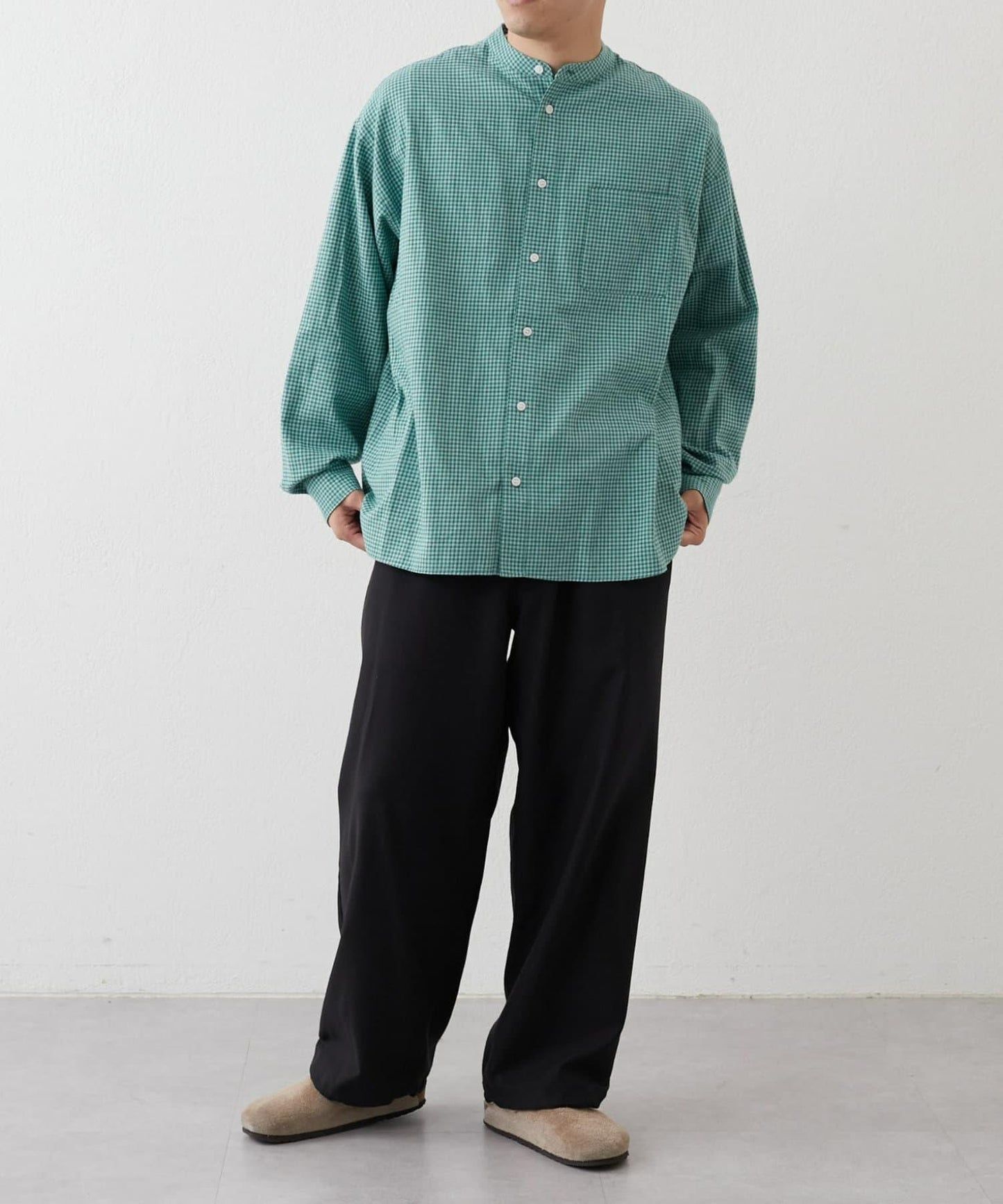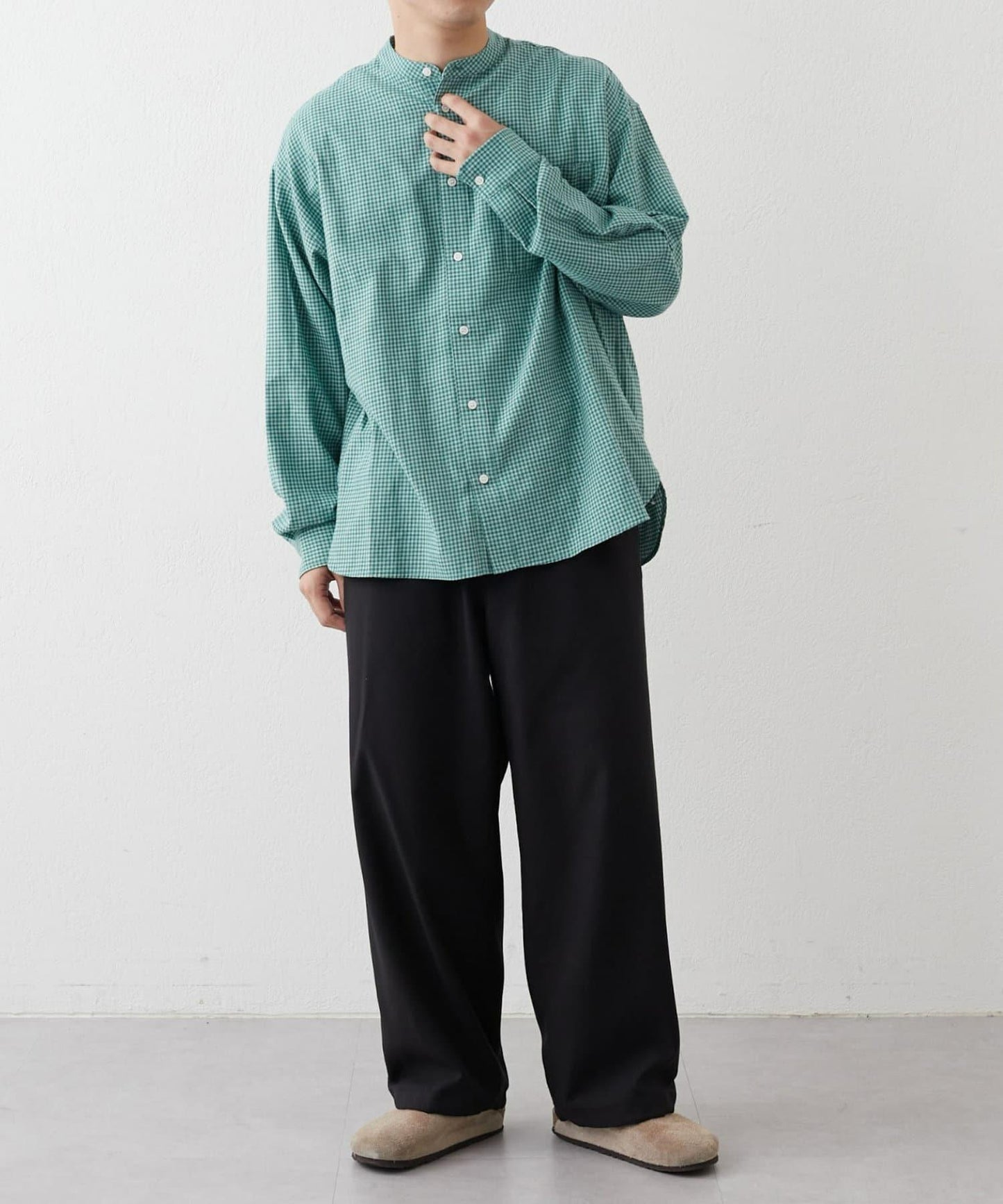 這款棋盤格襯衫表面略有磨毛,非常適合秋冬季節穿著。