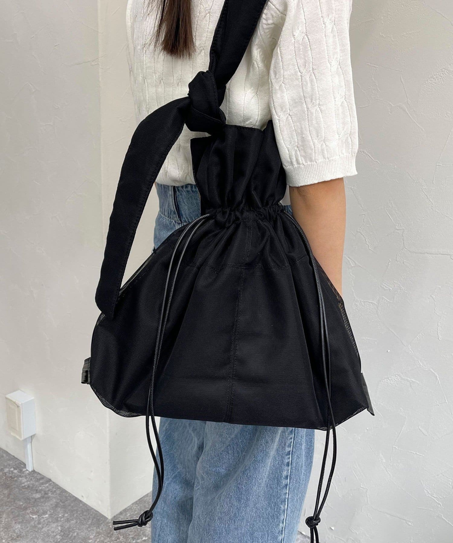 這款包包採用網眼材料製成,具有抽繩輪廓的可愛現代外觀!