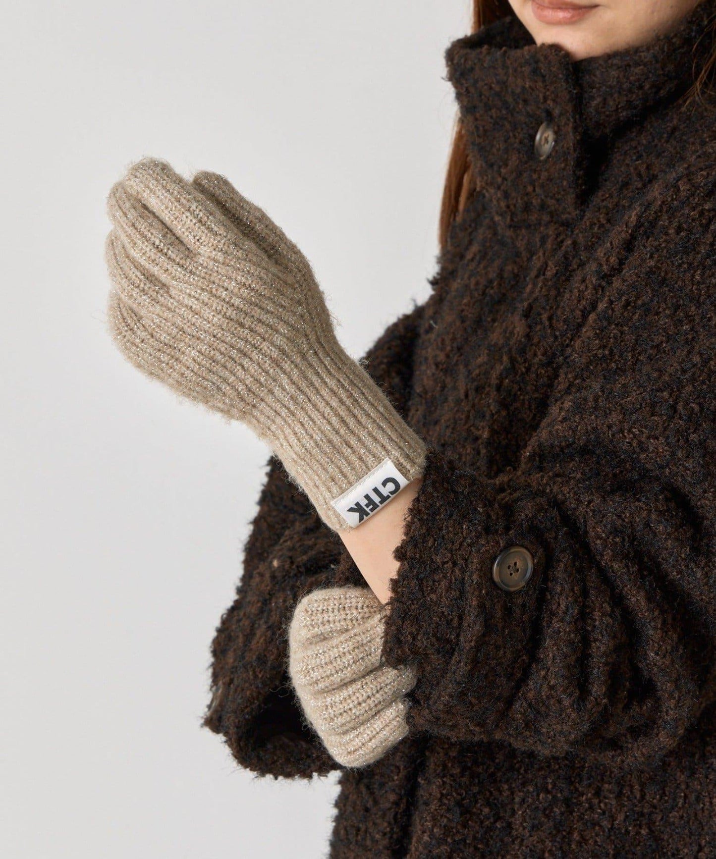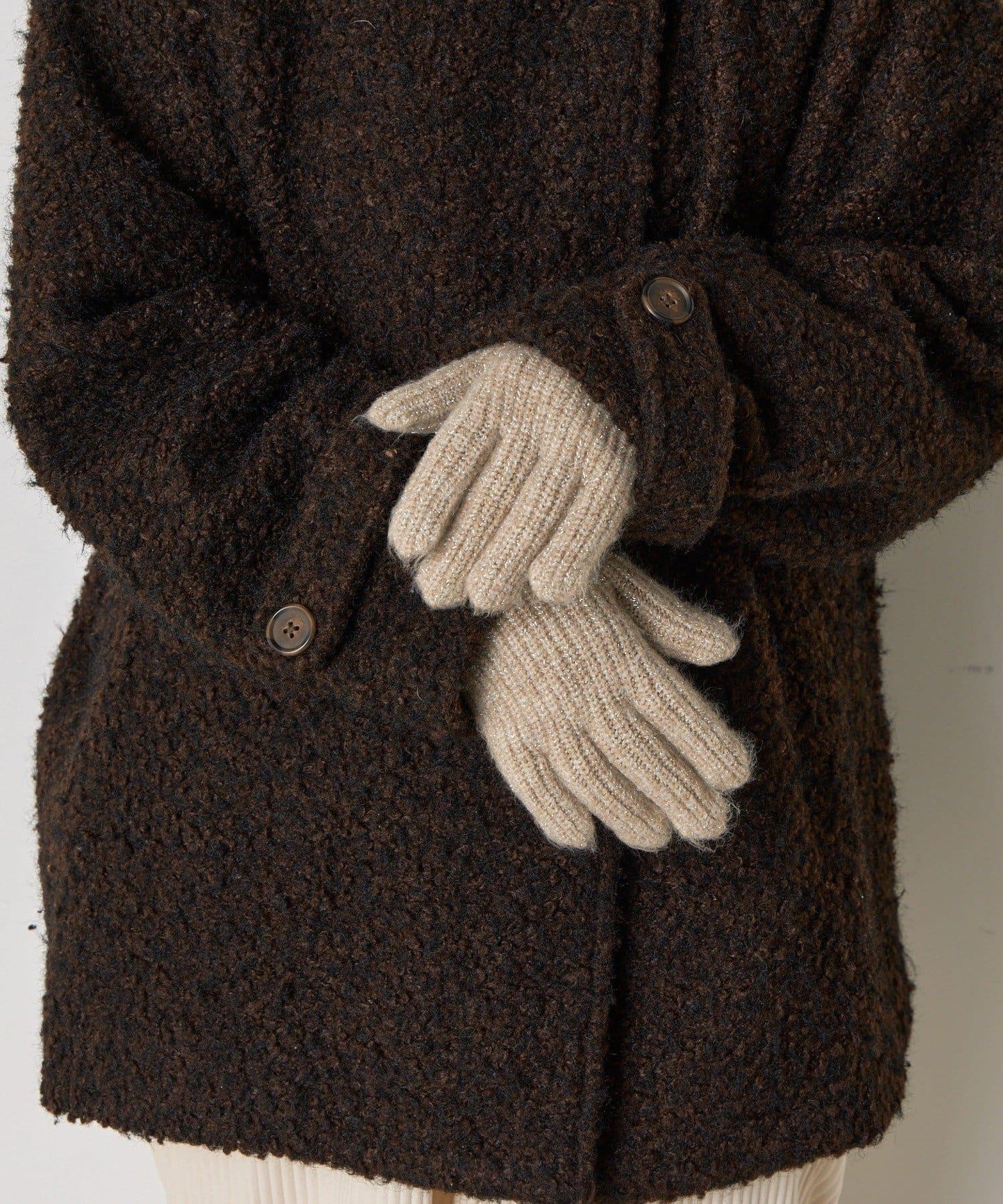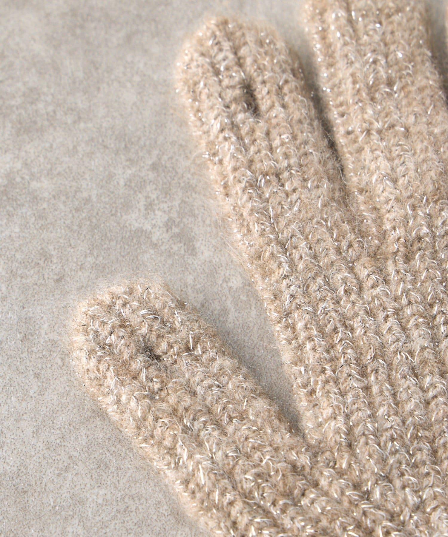 精緻的羔羊皮混紡紗針織面料在適當的光線下閃耀著優雅的光澤,為手部增添美感。