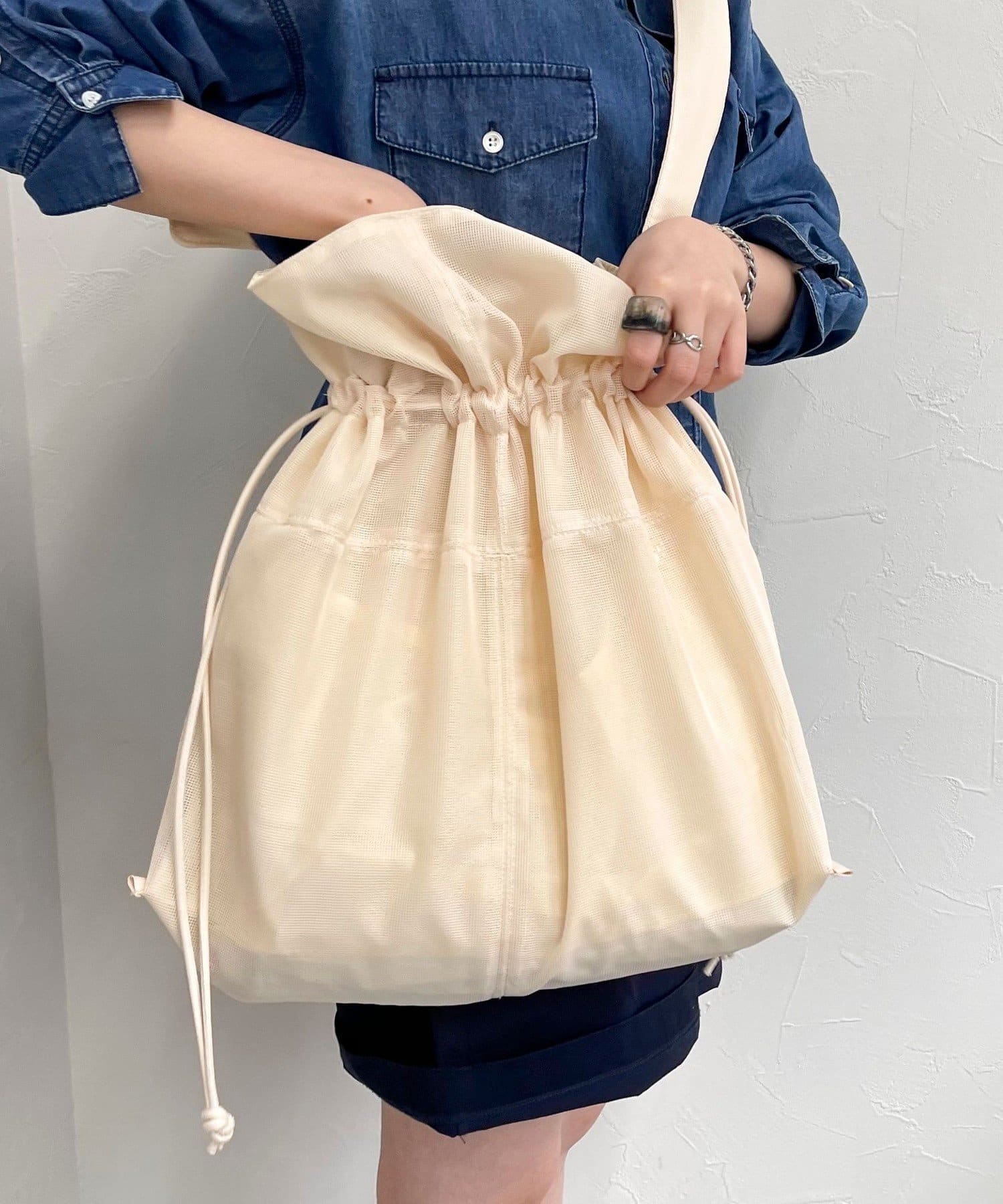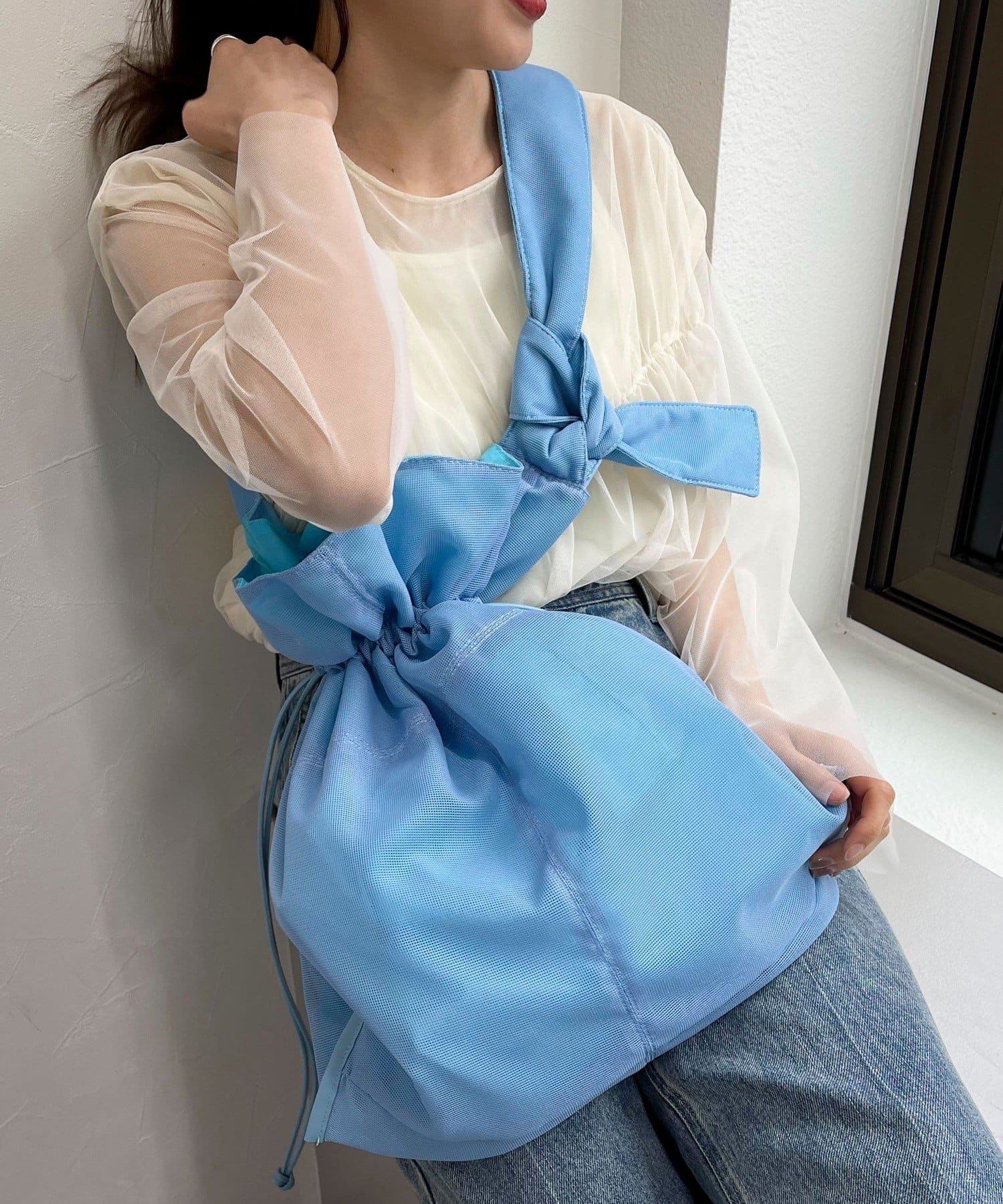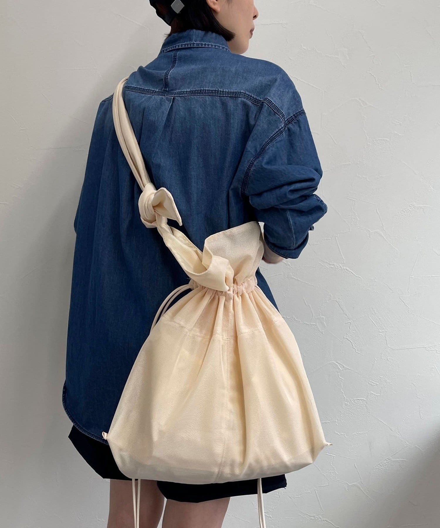 肩帶的長度可以通過打結自由改變,因此也可以斜背。