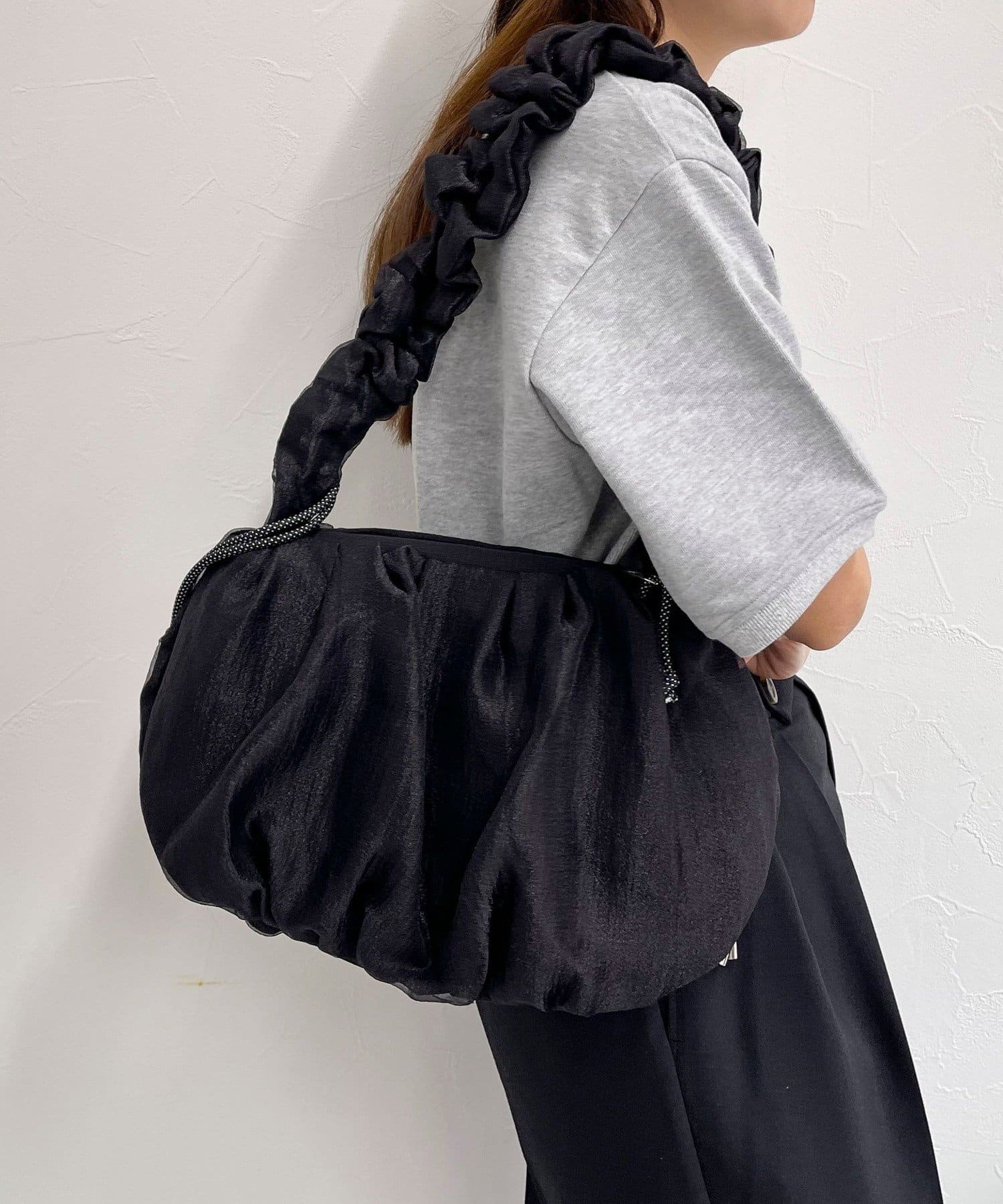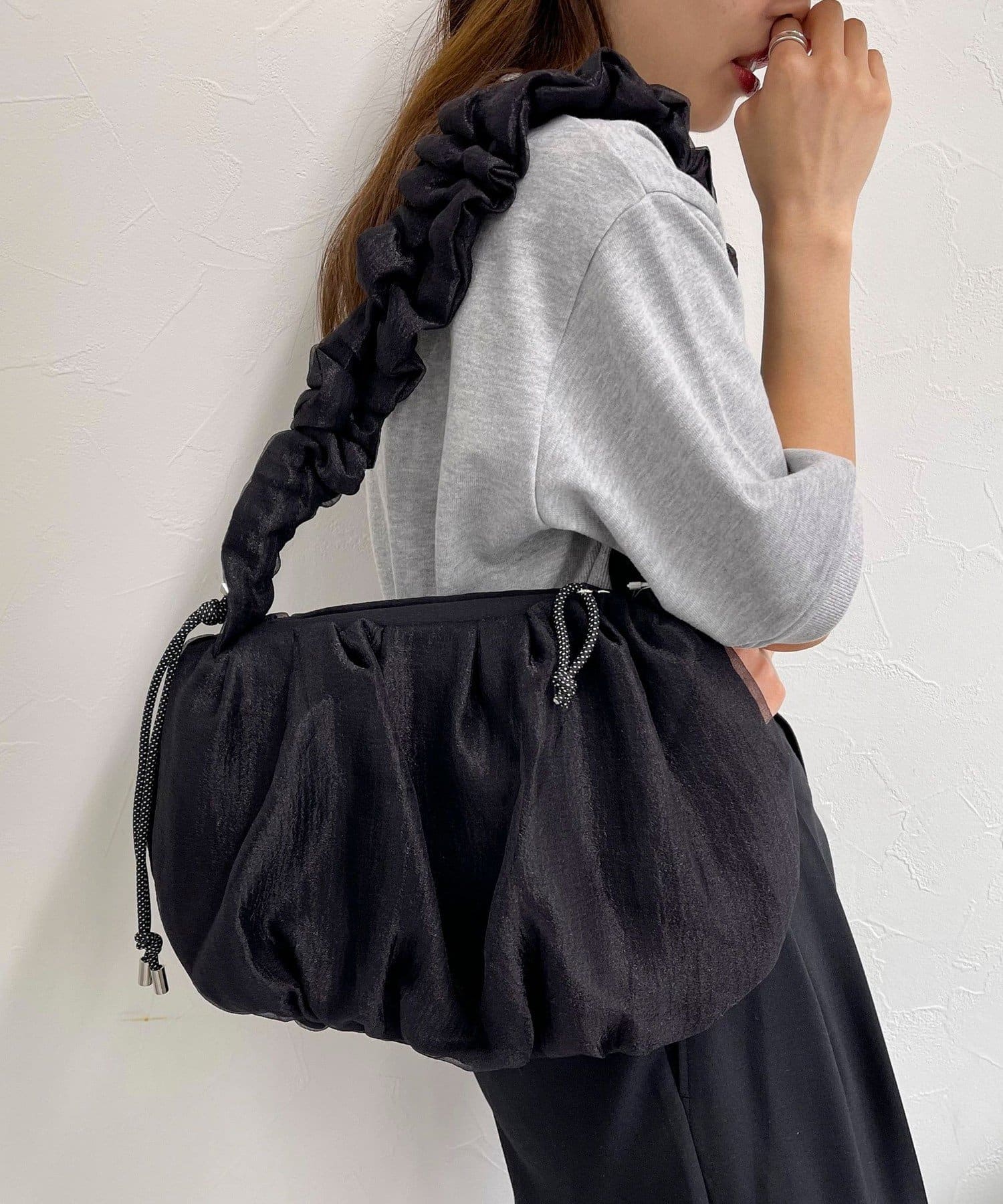 肩部採用抽繩設計,您可以調節長度,它就會變成像流蘇一樣的聚攏輪廓,具有立體感。