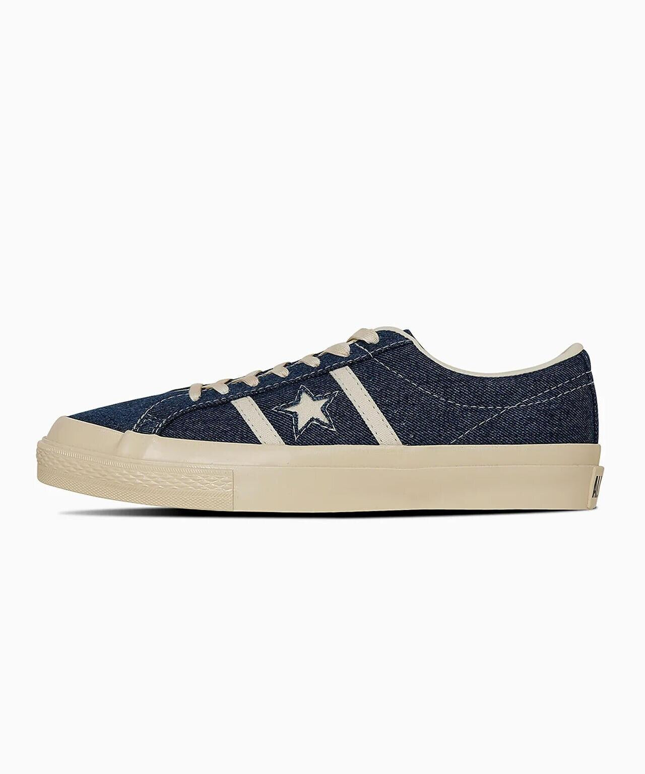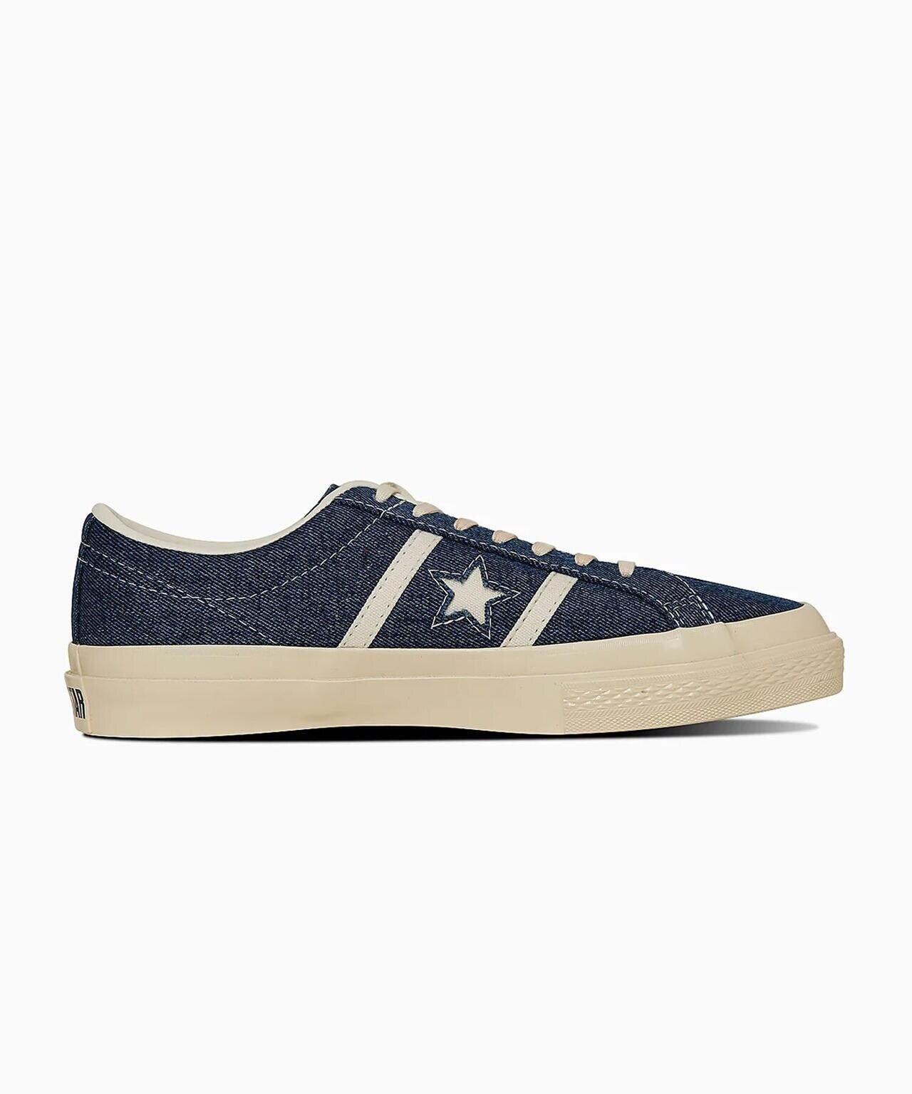 Converse/STAR&BARS DENIM/STAR&BARS Denim Star & Bars 材質與色彩排列款。鞋面採用經過水洗和紋理處理的牛仔布料。配有 6 毫米寬棉質備用鞋帶。源自匡威/匡威侯爵-M-匡威創立的匡威橡膠鞋公司。自 1917 年創立以來,匡威的標誌性鞋款 "All Star "一直沿用至今,幾乎沒有任何變化。