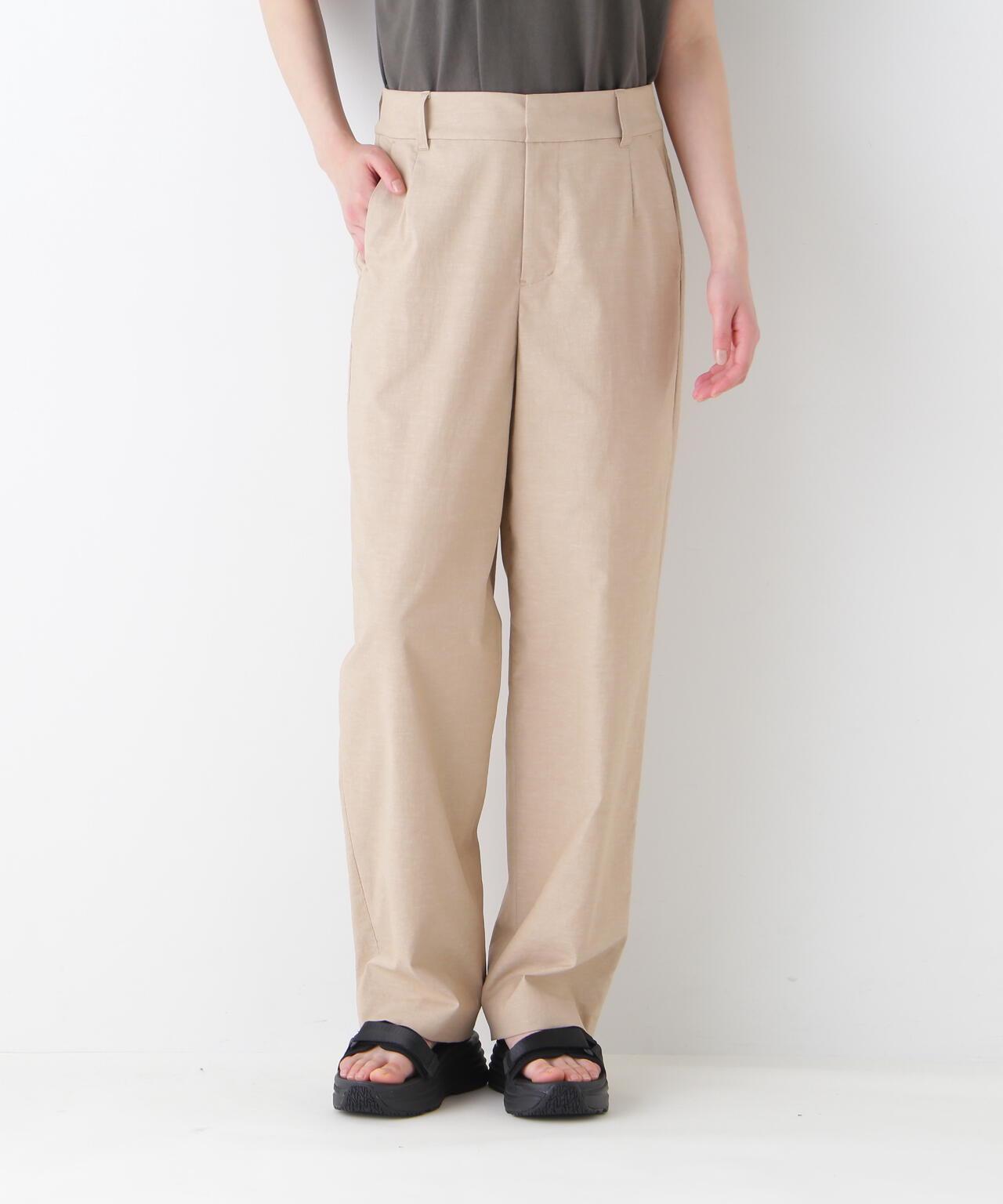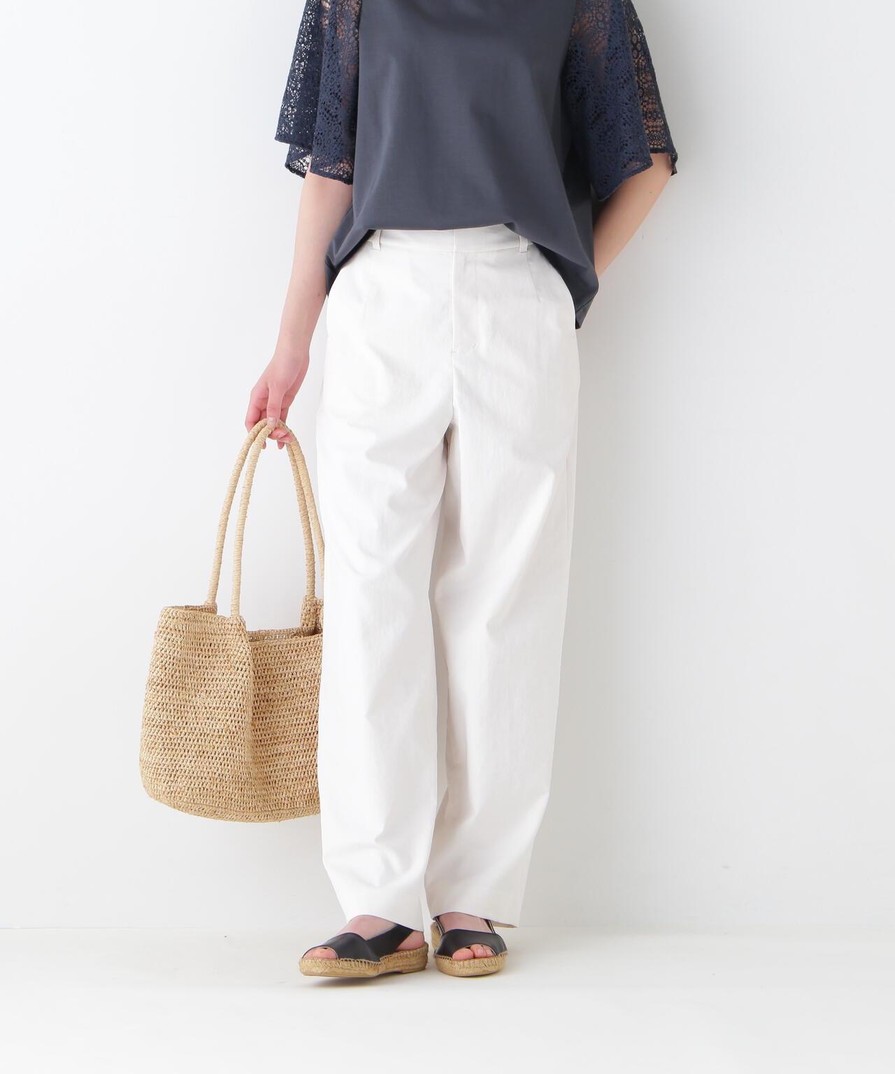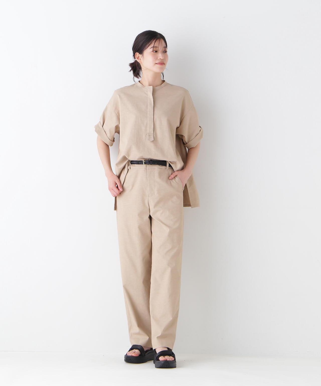 直筒版棉麻牛津褲,每年都非常受歡迎 [設計特點] 直筒褲設計簡潔。腰部有鬆緊帶,內側有釦眼,可調節尺寸。面料採用牛面料,啞光滌綸紗與棉麻面料混紡,外觀自然,具有防透功能。該面料還具有接觸冷卻特性和抗紫外線功能,可在家手洗。基本色的簡潔直筒褲是一款百搭褲,可搭配任何上衣。米色款還可與同種材質的上衣搭配作為套裝穿著。
