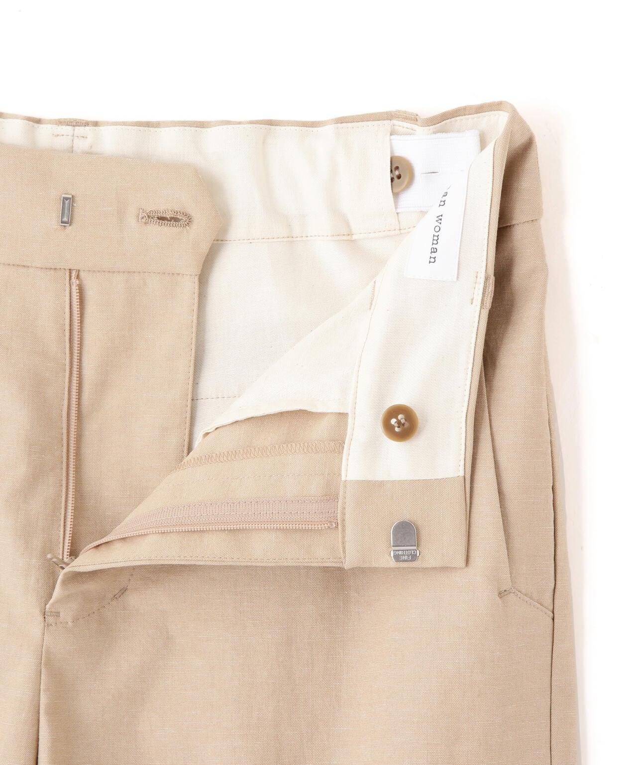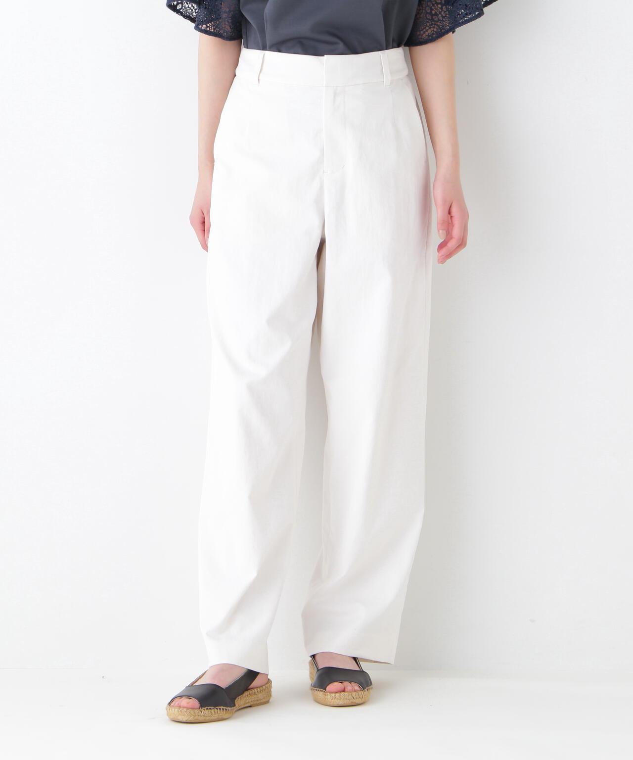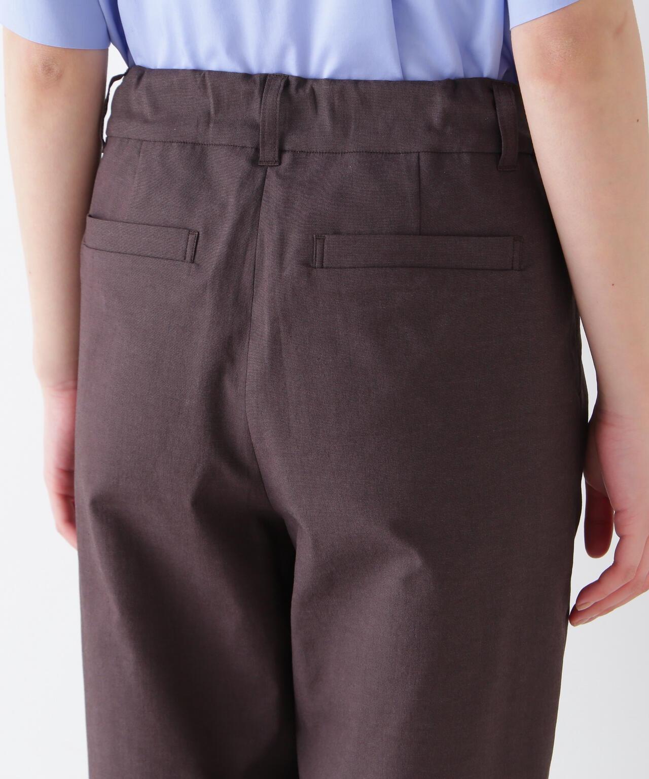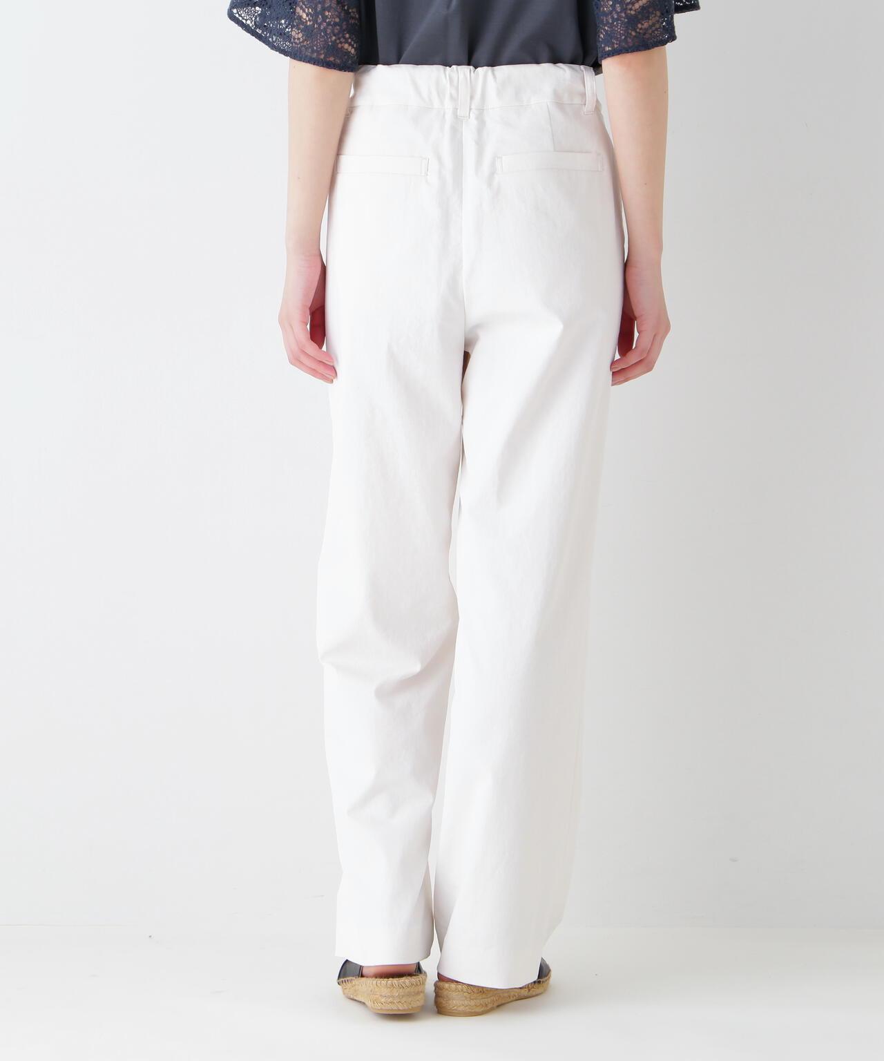 直筒版棉麻牛津褲,每年都非常受歡迎 [設計特點] 直筒褲設計簡潔。腰部有鬆緊帶,內側有釦眼,可調節尺寸。面料採用牛面料,啞光滌綸紗與棉麻面料混紡,外觀自然,具有防透功能。該面料還具有接觸冷卻特性和抗紫外線功能,可在家手洗。基本色的簡潔直筒褲是一款百搭褲,可搭配任何上衣。米色款還可與同種材質的上衣搭配作為套裝穿著。