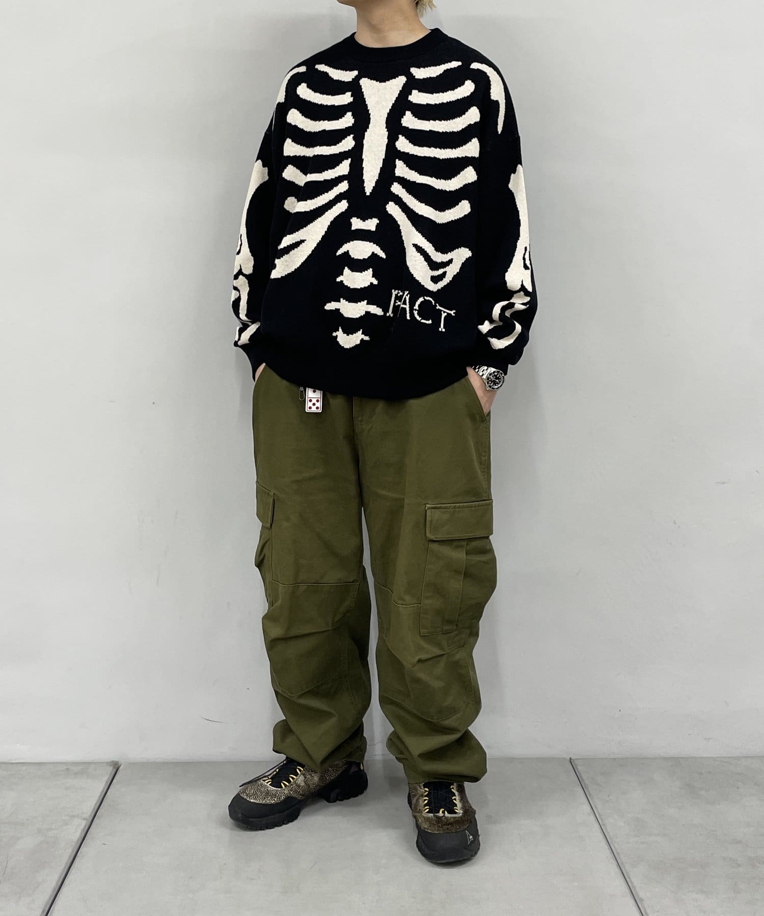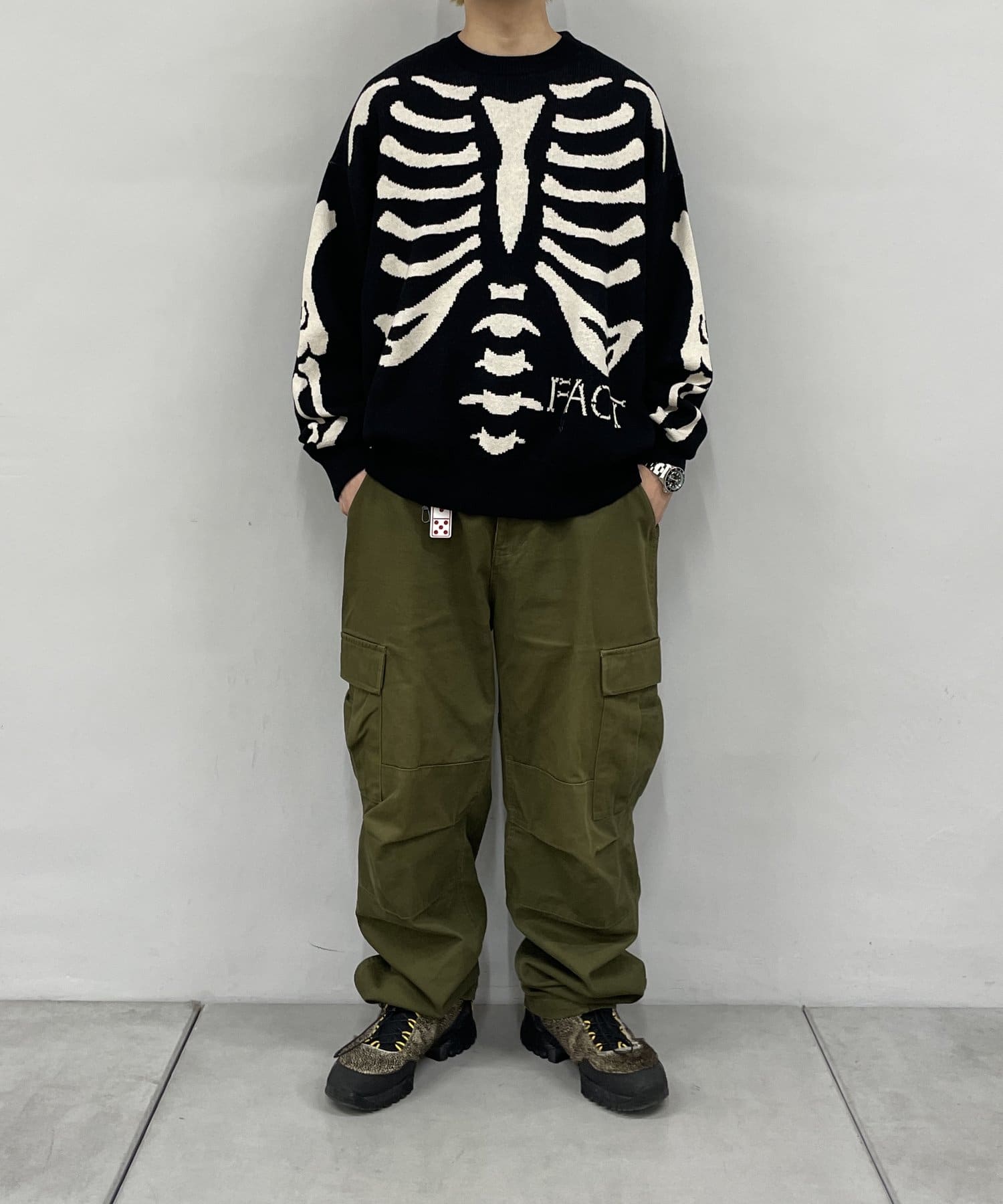 -胸前的FACT骷髏頭圖案