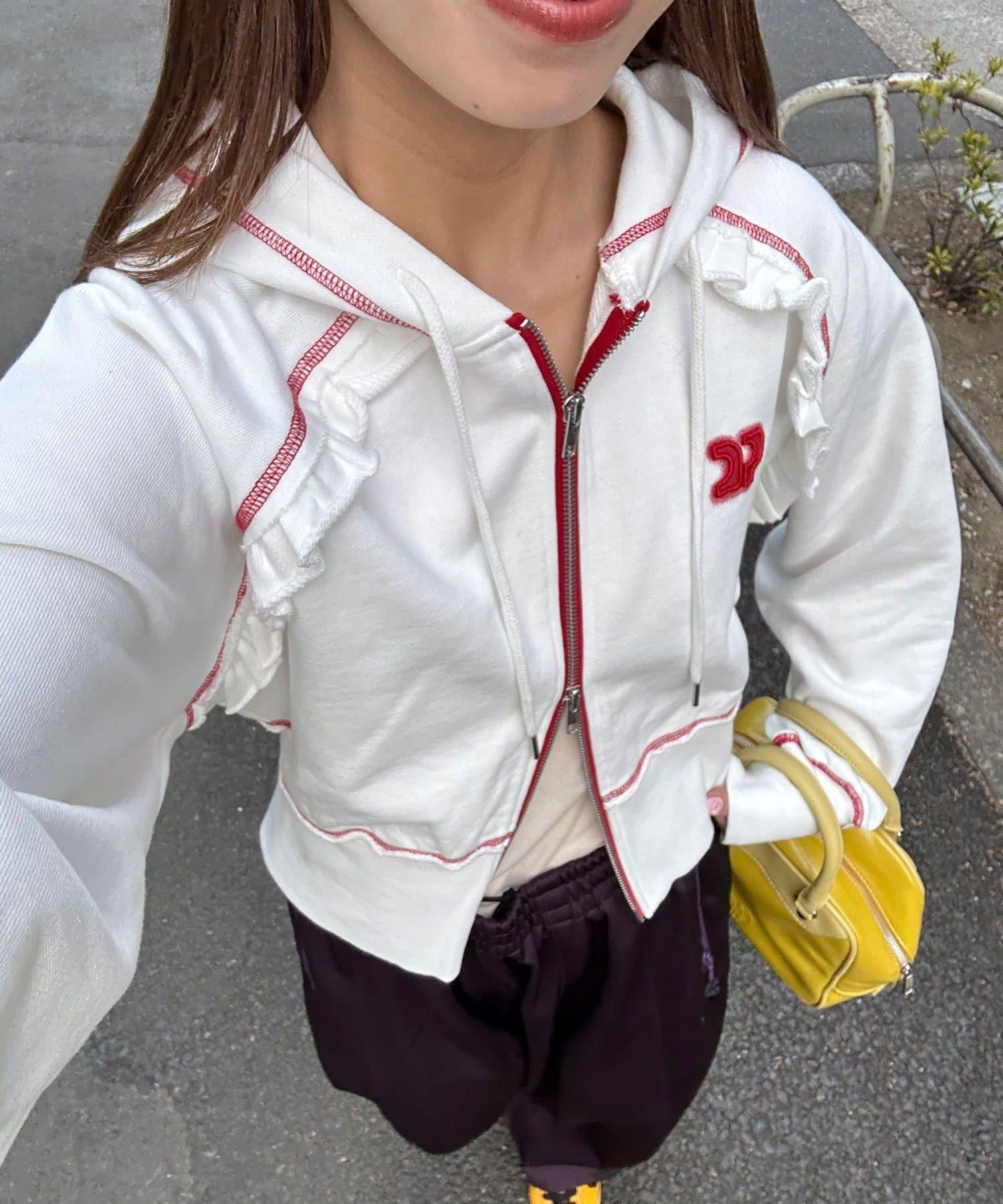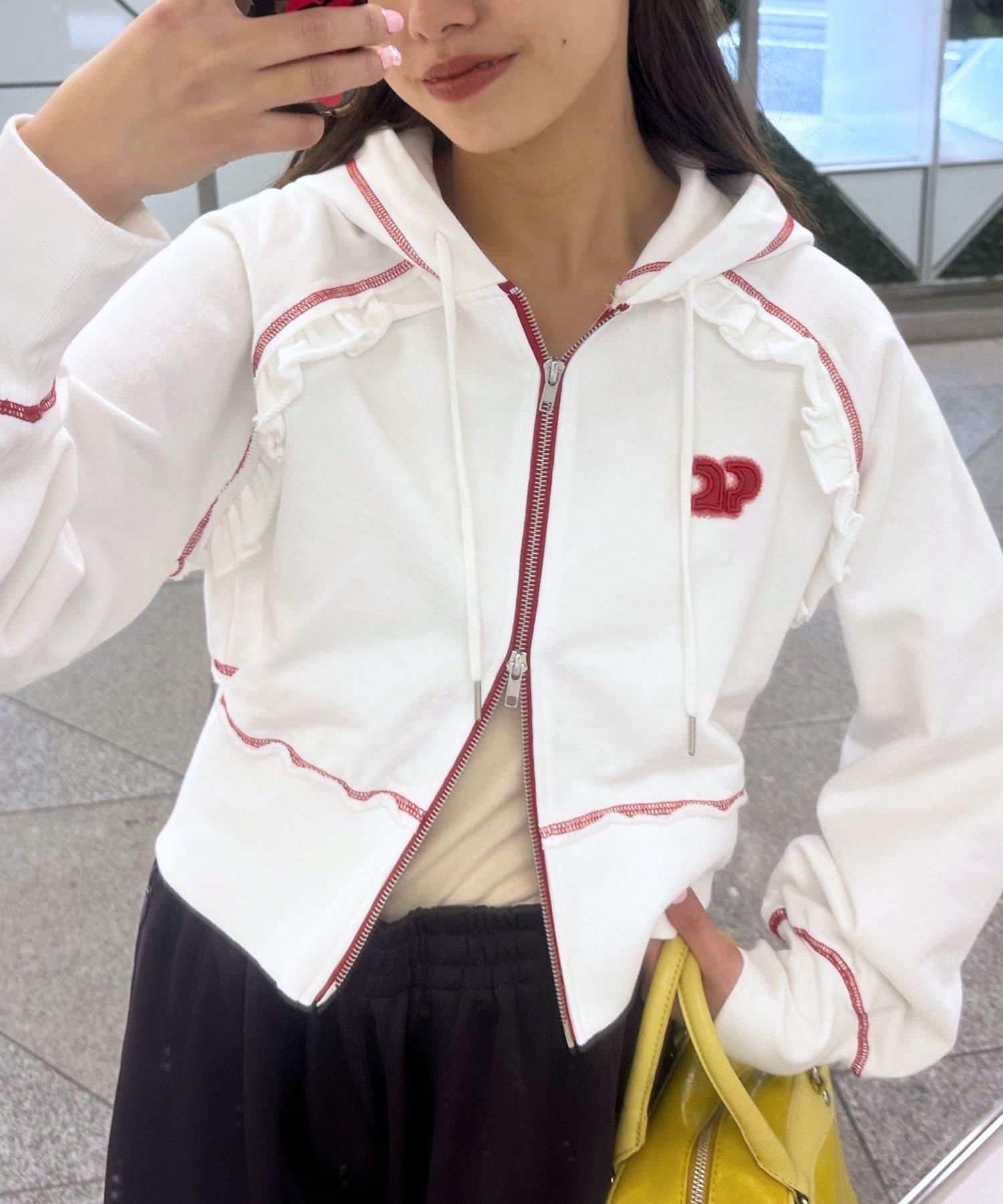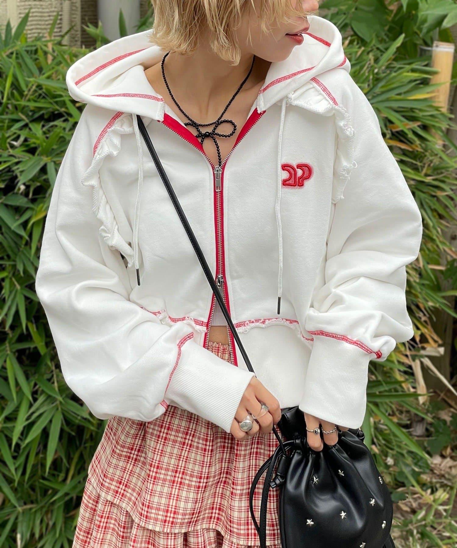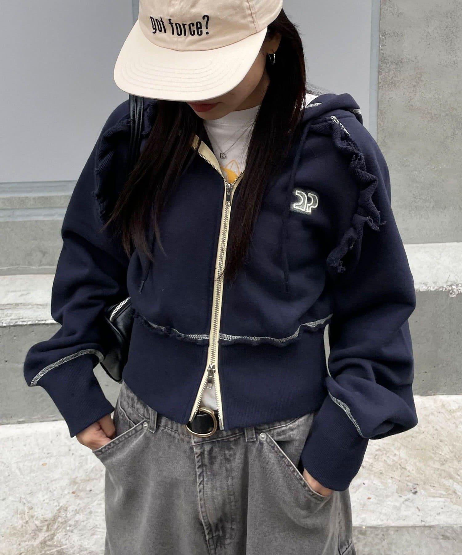 荷葉邊和縫線凸顯風格,即使搭配簡單的牛仔褲也很時尚。