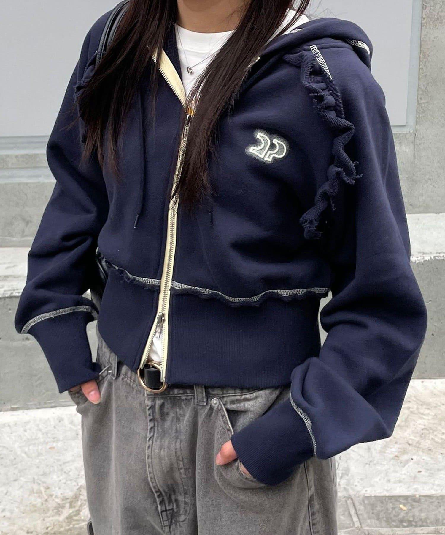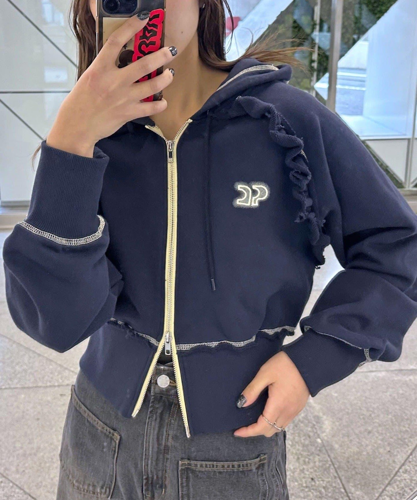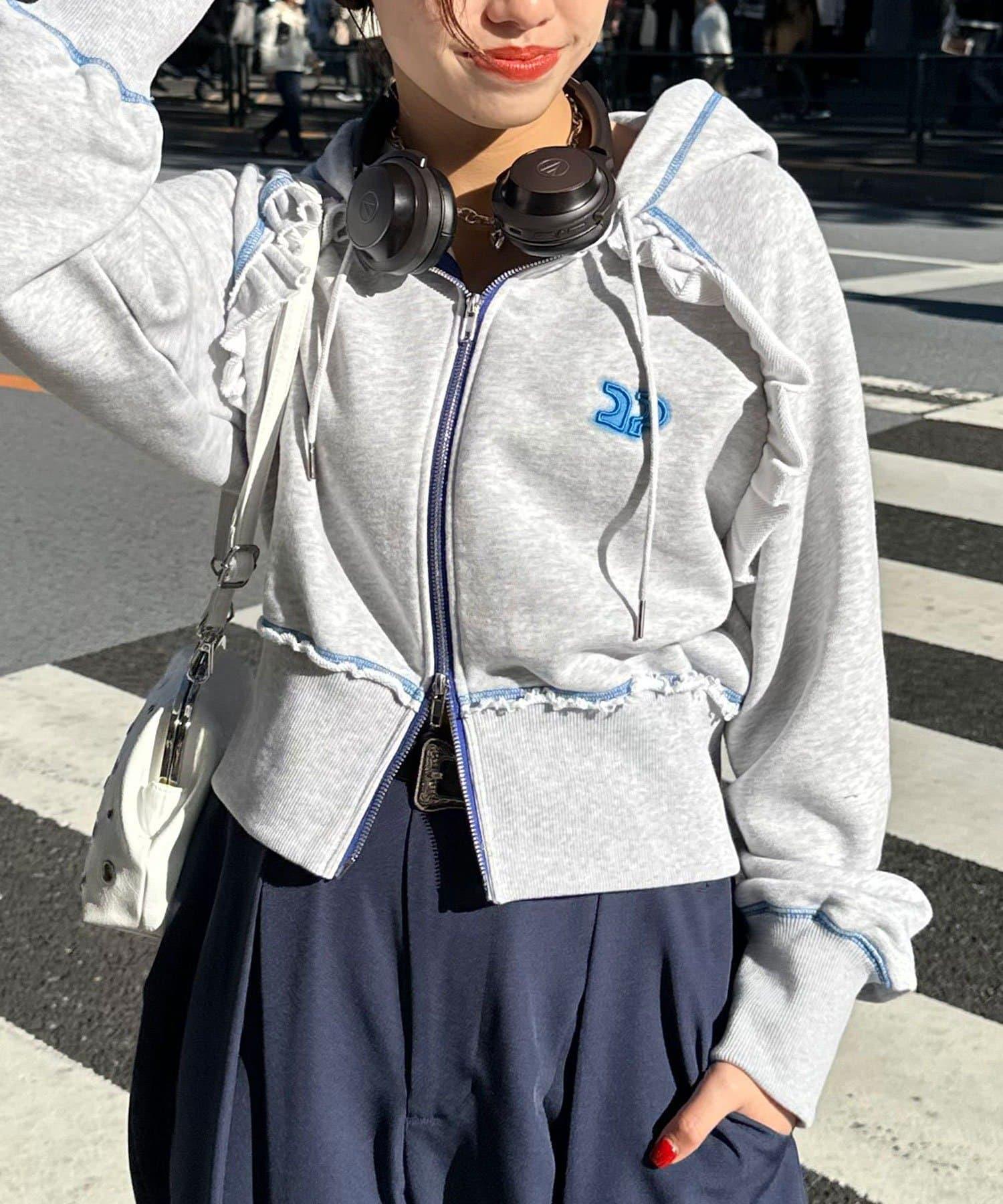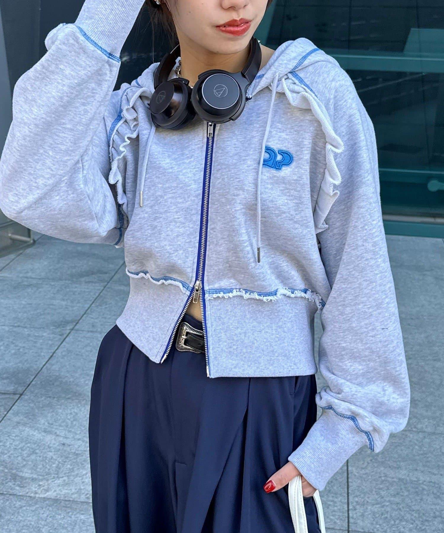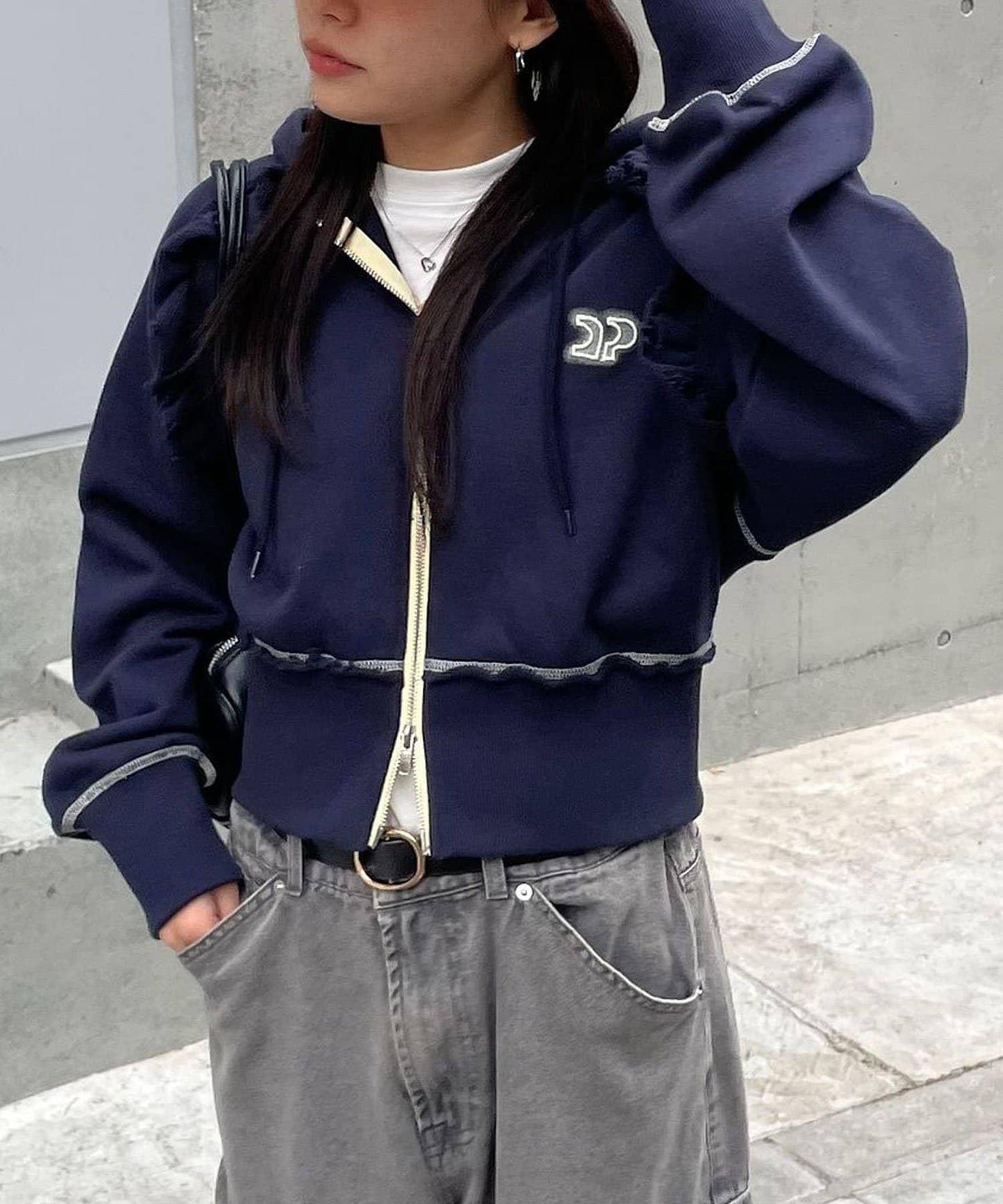 荷葉邊和縫線凸顯風格,即使搭配簡單的牛仔褲也很時尚。