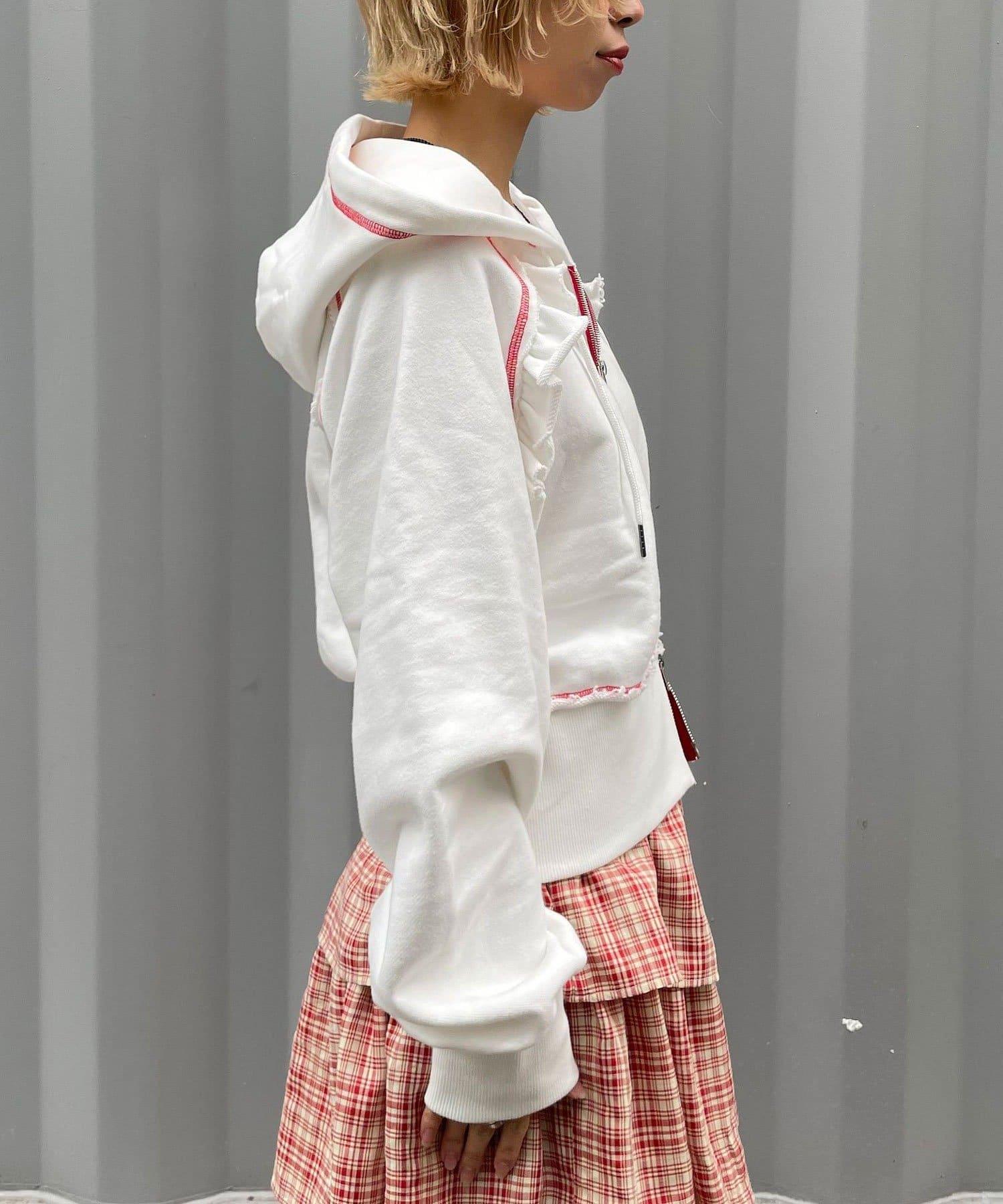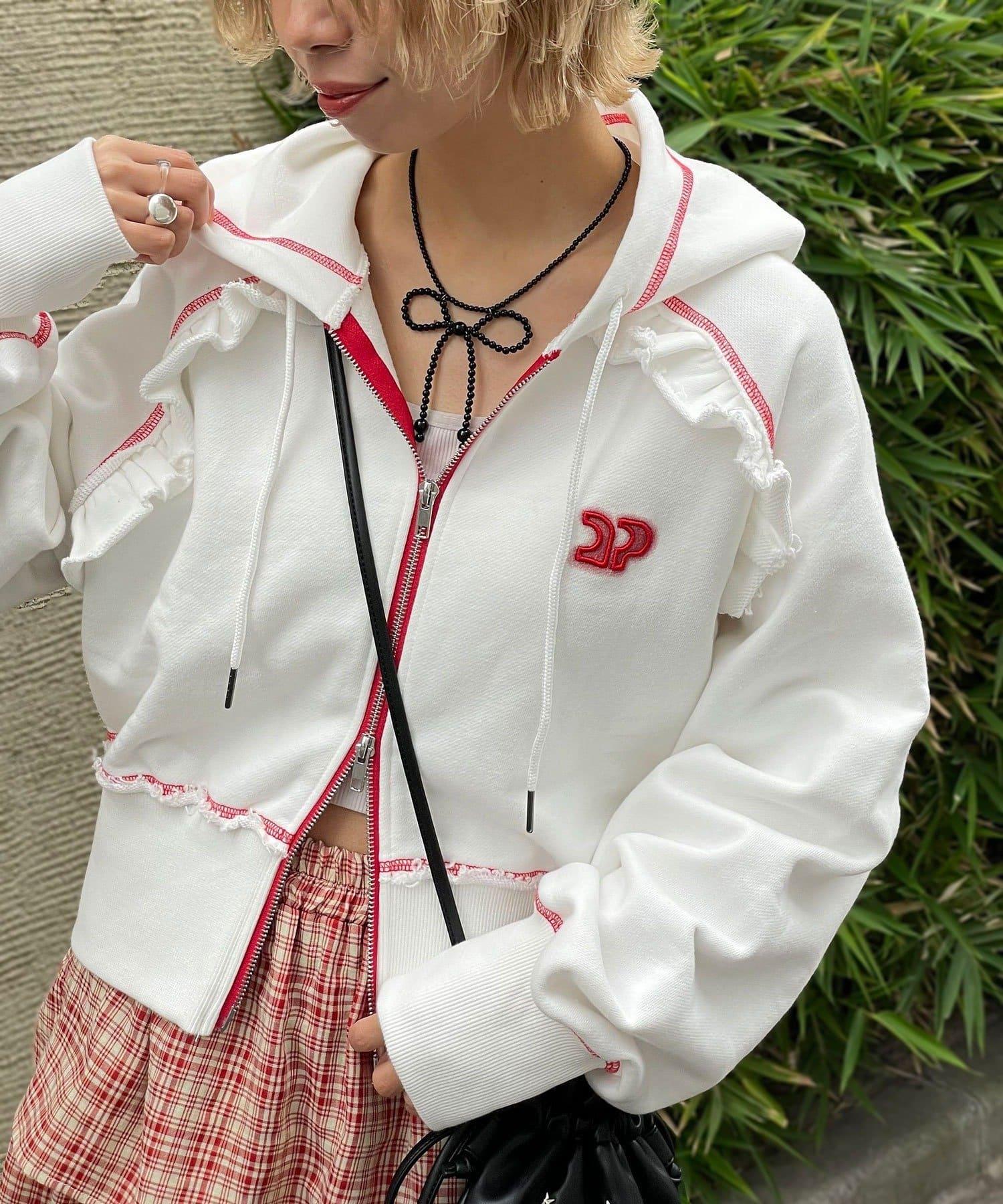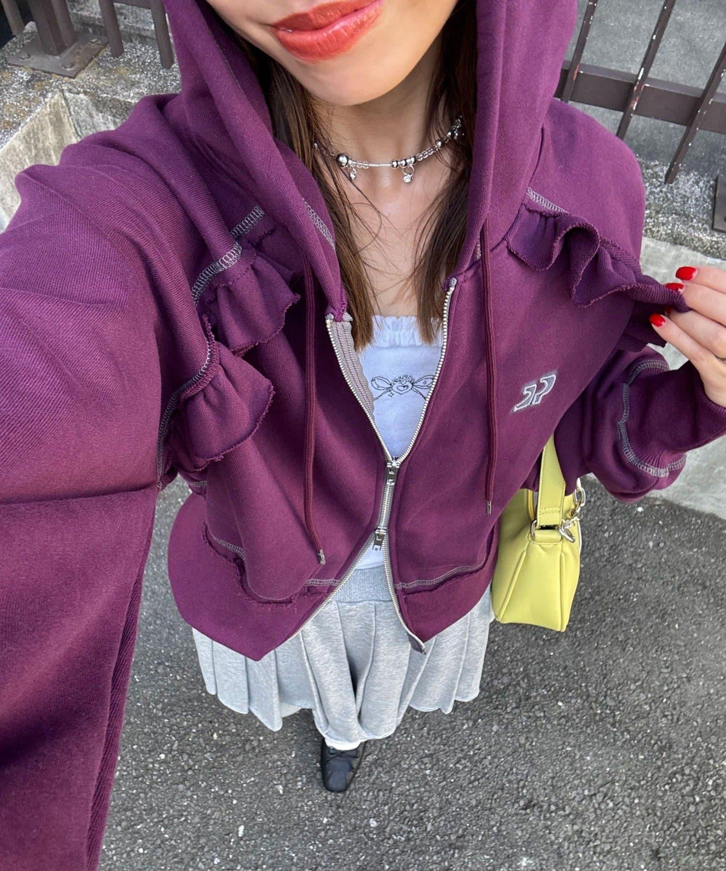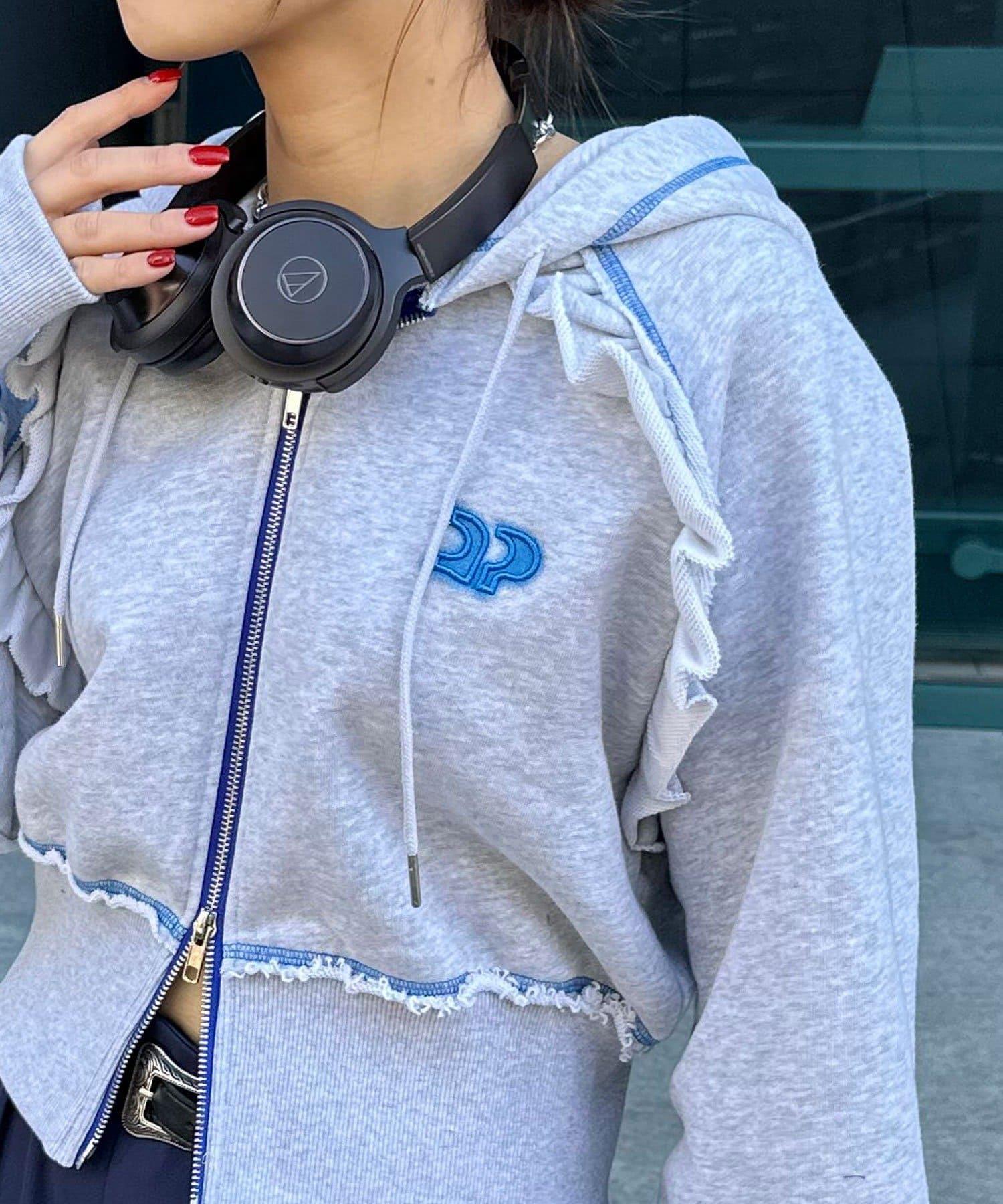 荷葉邊和縫線凸顯風格,即使搭配簡單的牛仔褲也很時尚。