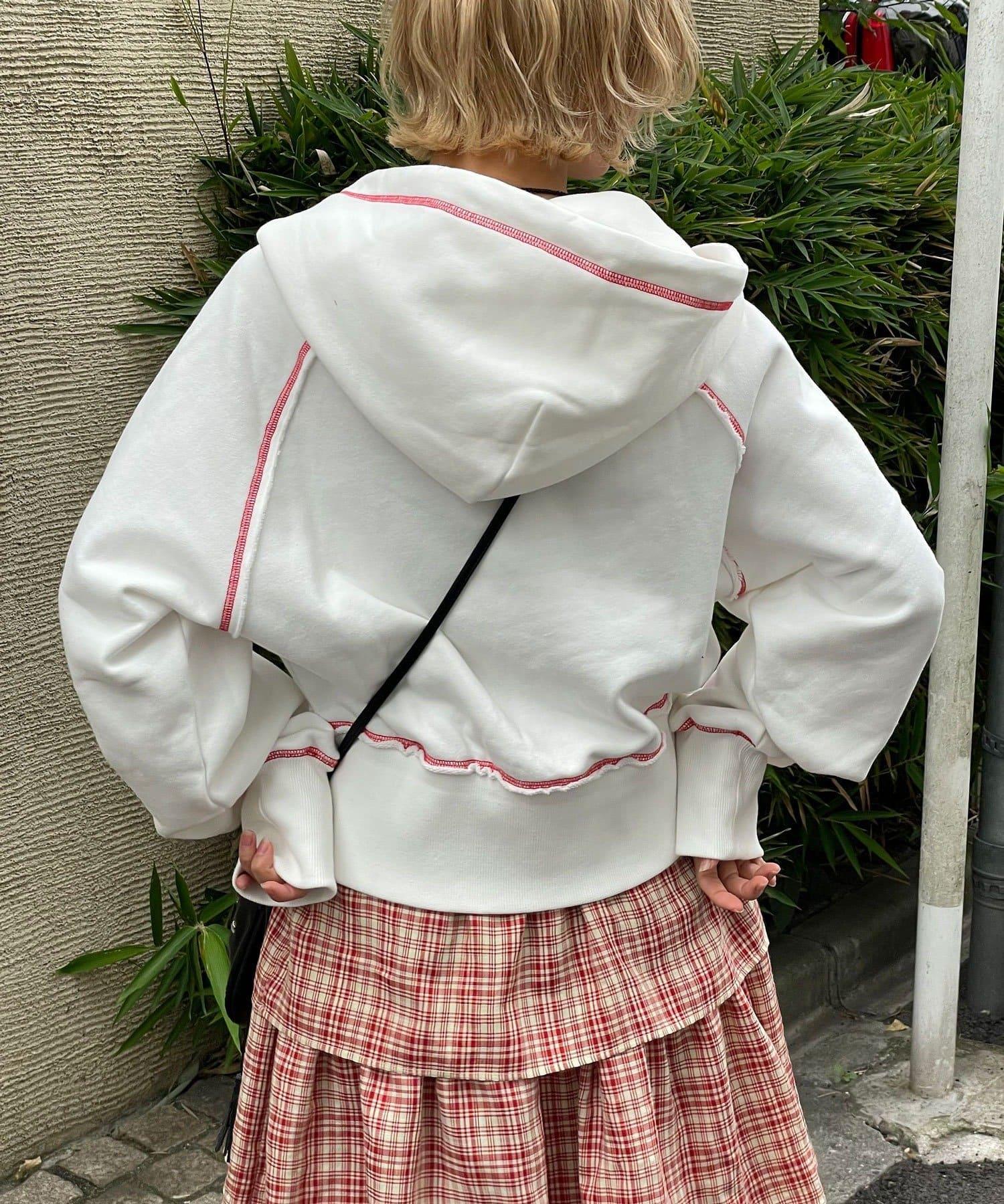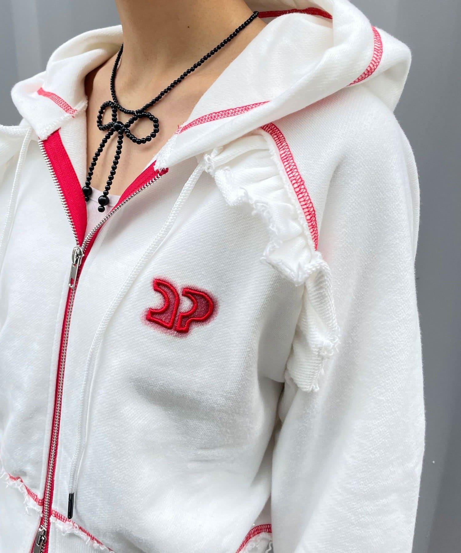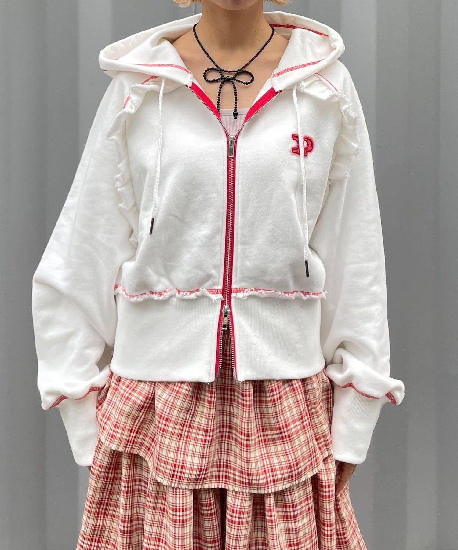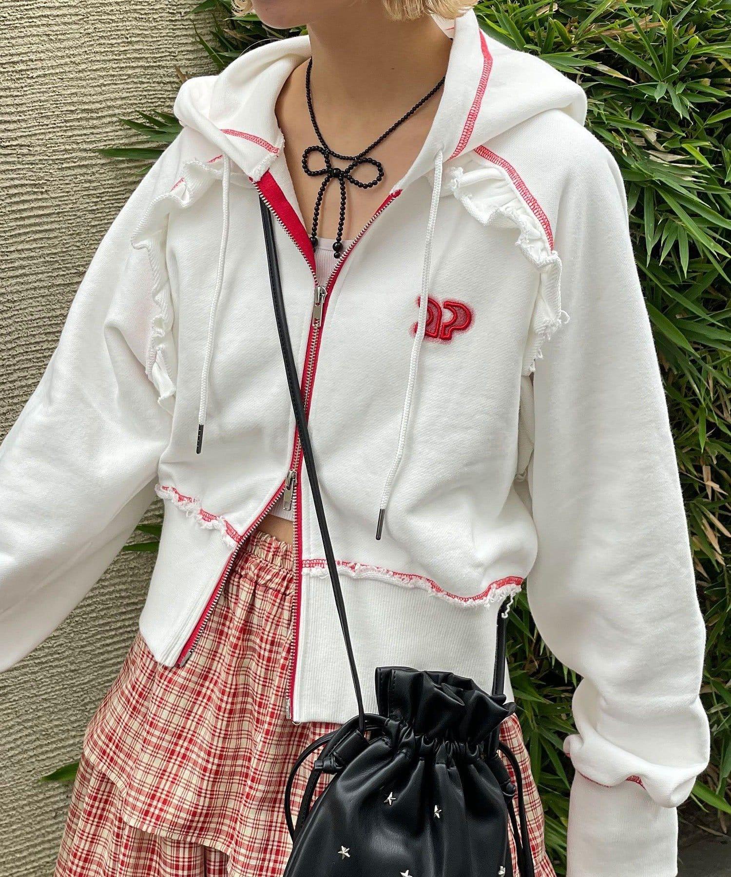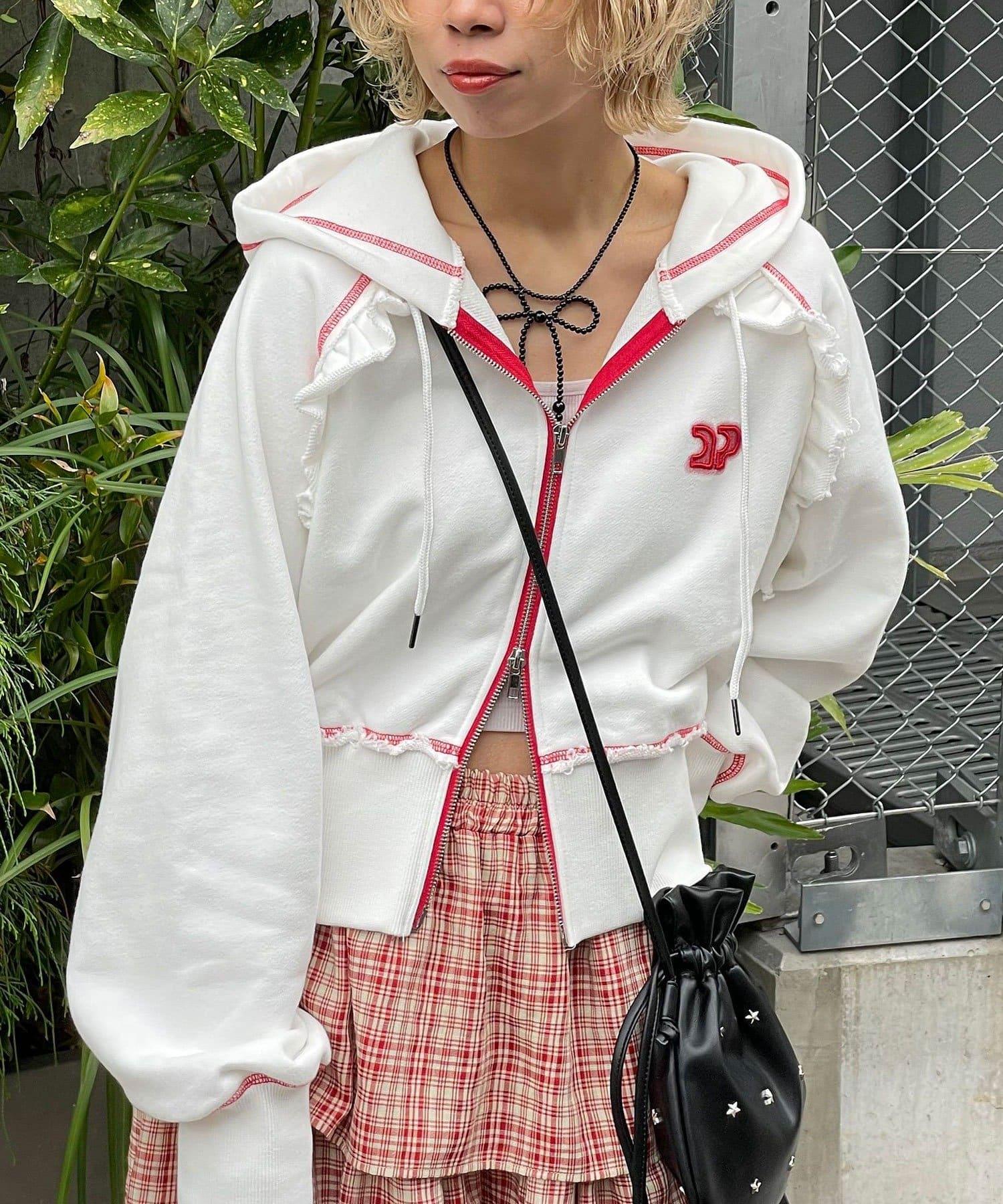 荷葉邊和縫線凸顯風格,即使搭配簡單的牛仔褲也很時尚。