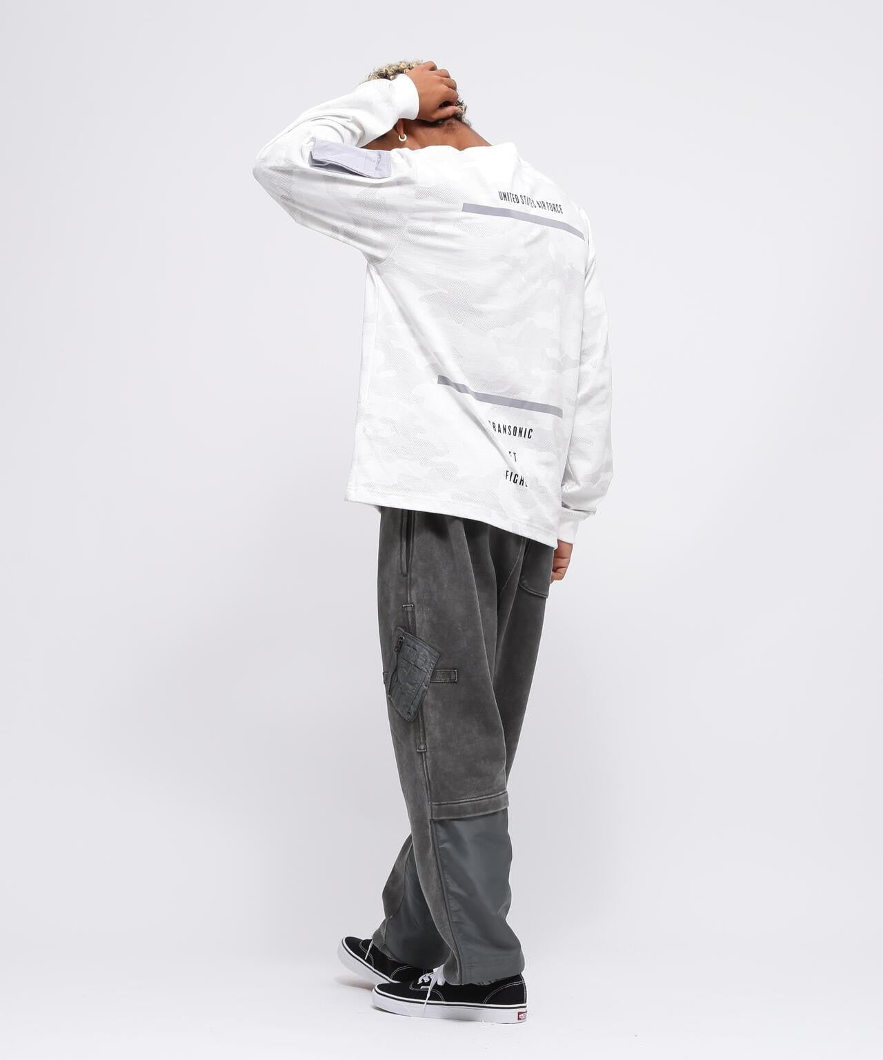 AVIREX官方旗艦店] 產品名稱:《CROSSOVER》CUSTOM SWEAT PANTS<商品詳情> - AVIREX 2024秋冬季CROSSOVER系列運動褲 - 將 "VINTAGE LINE "中使用的尼龍斜紋布與厚內襯運動褲相結合。該產品經過漂白處理,使內襯部分具有舊感。