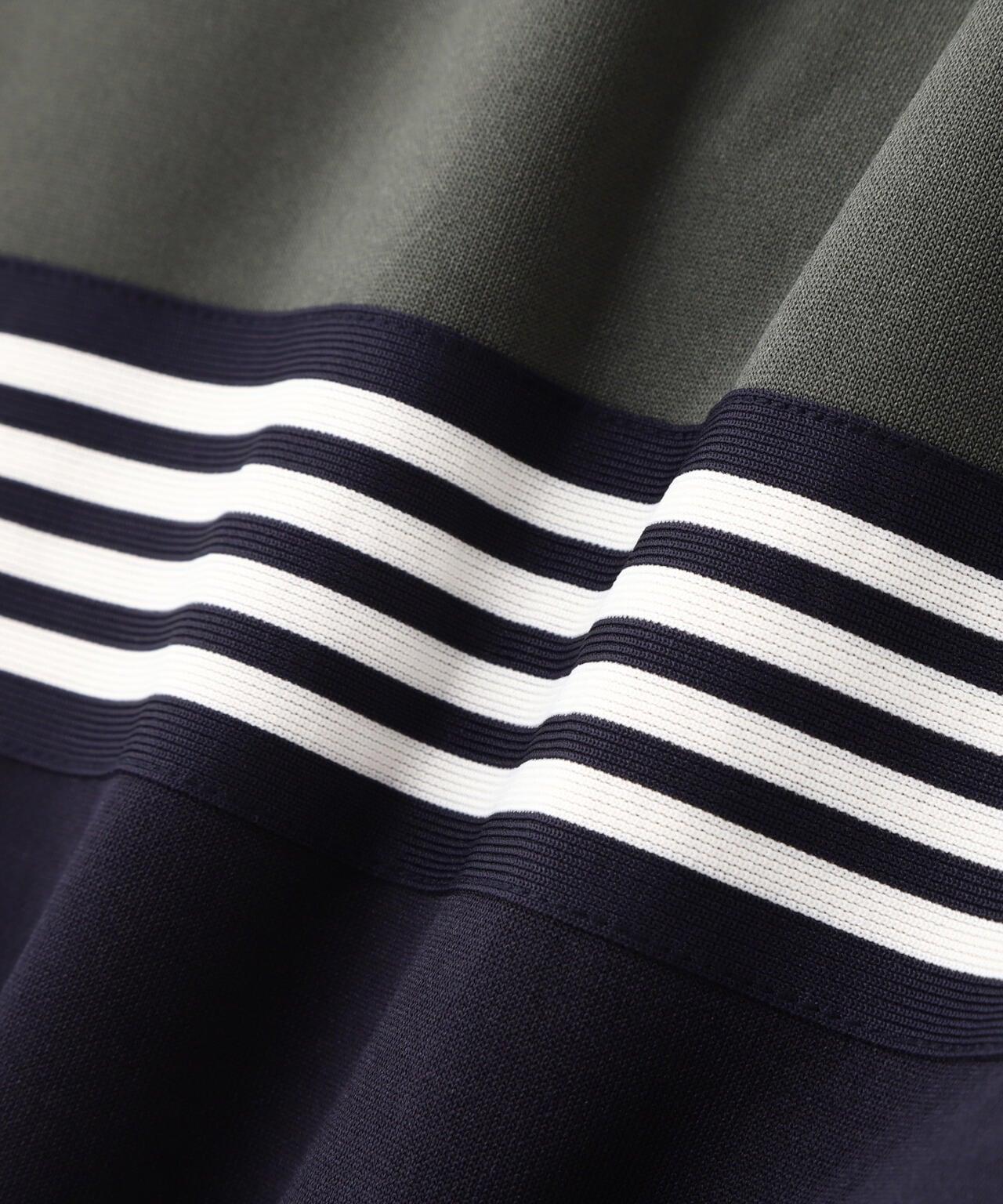 AVIREX官方旗艦店] 產品名稱:《CROSSOVER》運動夾克<產品詳情> - AVIREX 2024秋冬季 "CROSSOVER系列 "運動夾克 - 雙色針織面料 - 線帶結合款式。MA-1雪茄袋下垂設計,繡有品牌標識,勻稱剪裁。