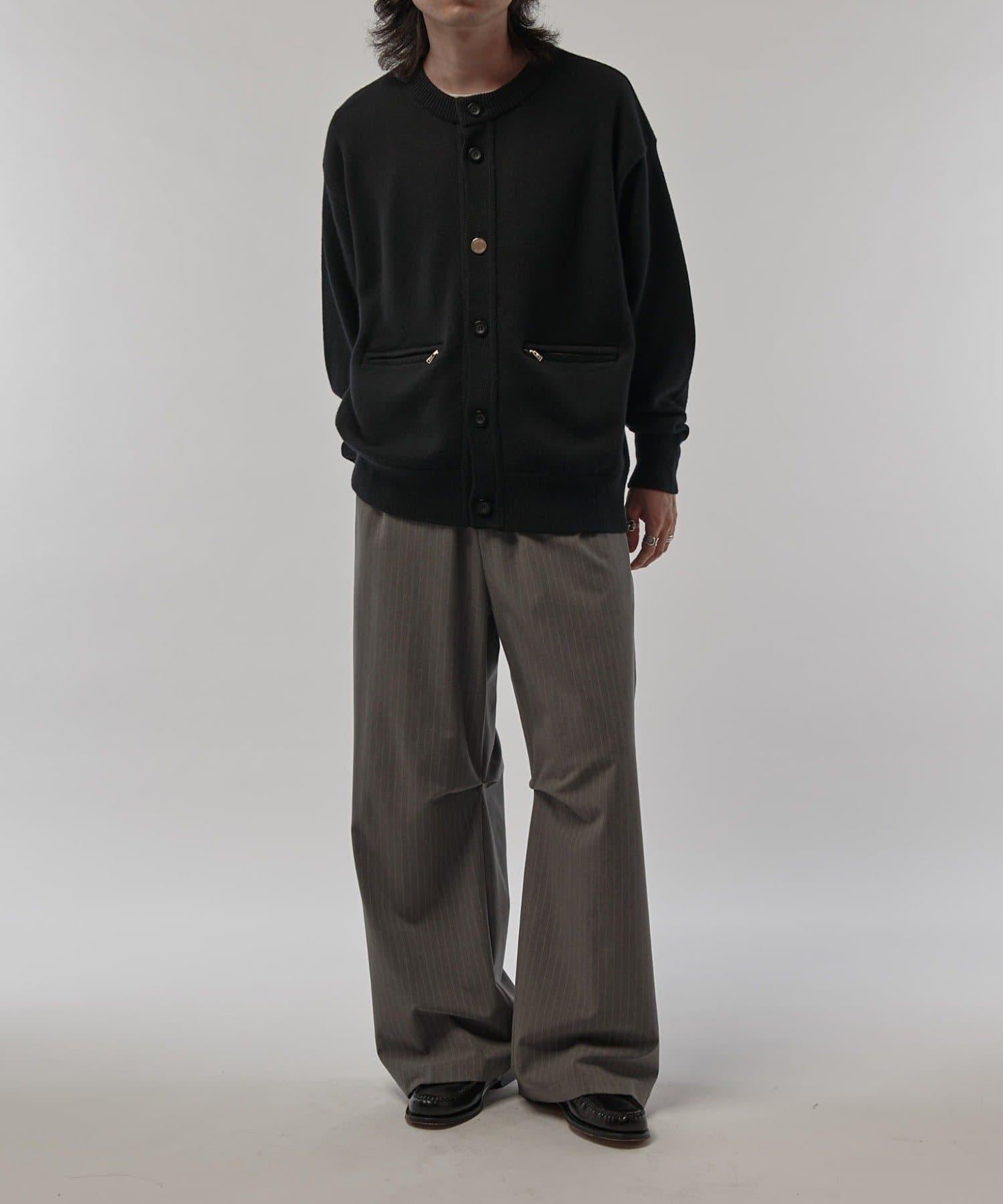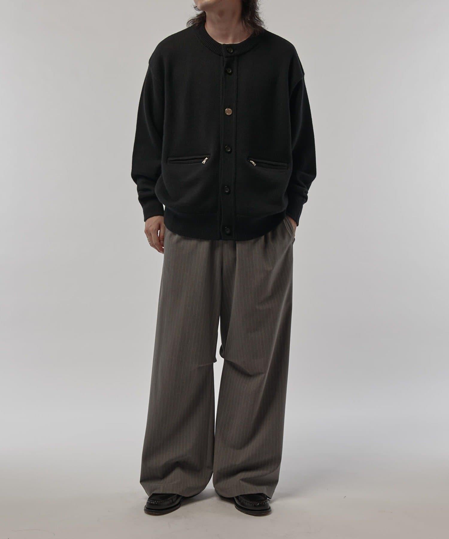 這款針織夾克給人一種簡潔優美的印象,建議搭配寬鬆休閒褲或喇叭褲,打造簡潔造型。