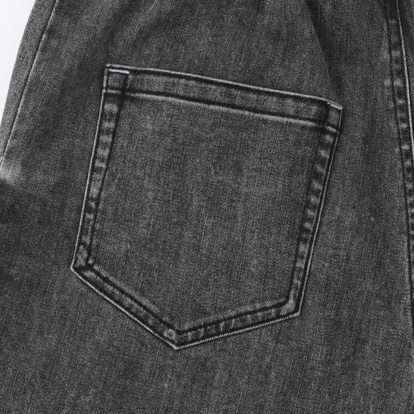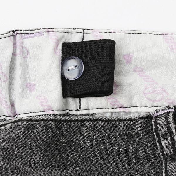 牛仔布料質感舒適,是本季的活躍之選! 褲子的腰部有可調節的鬆緊調節器。