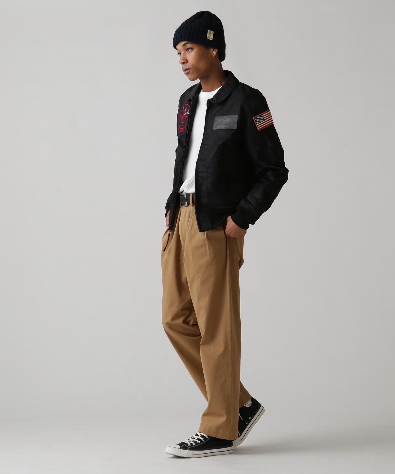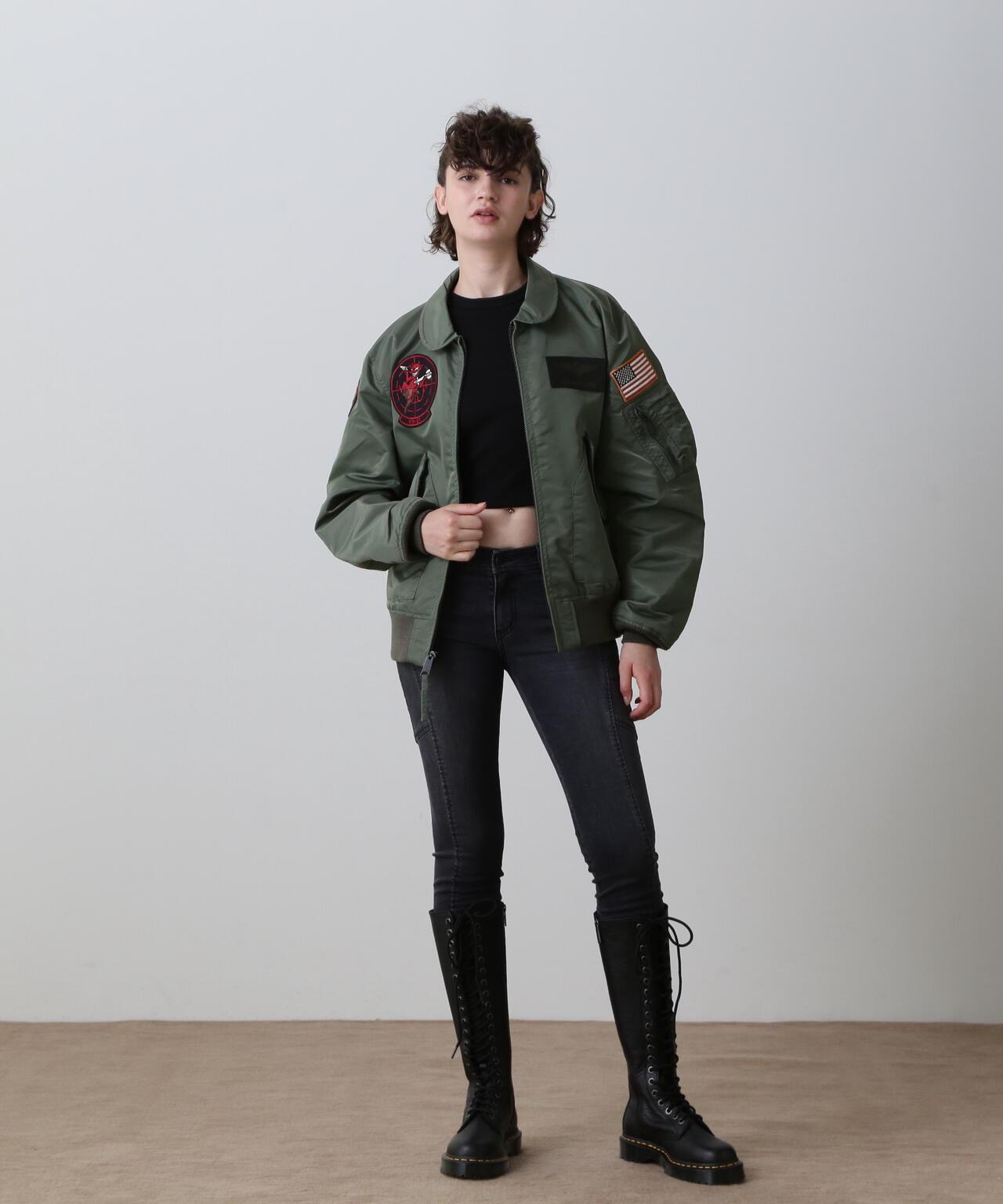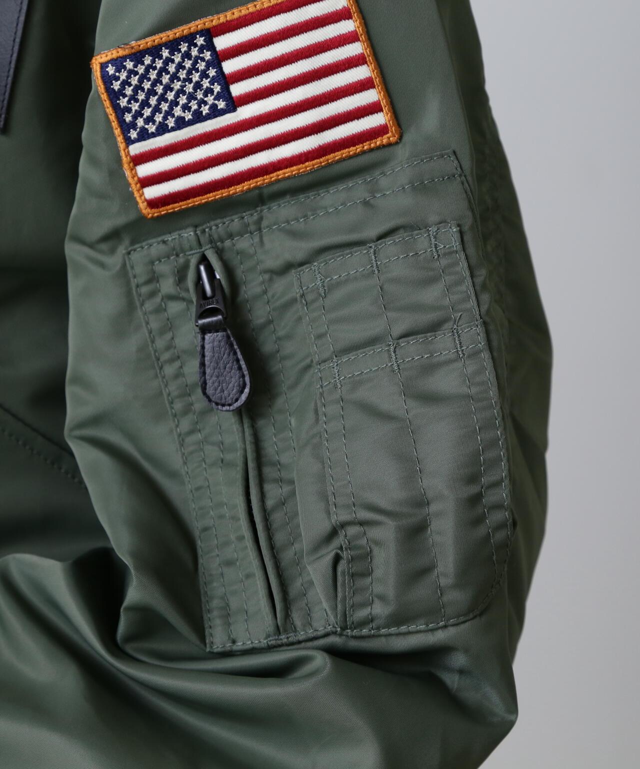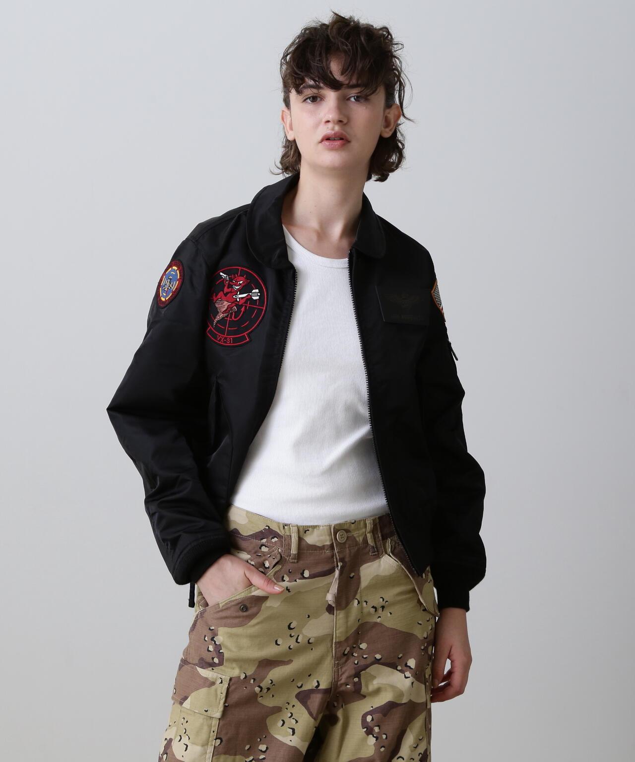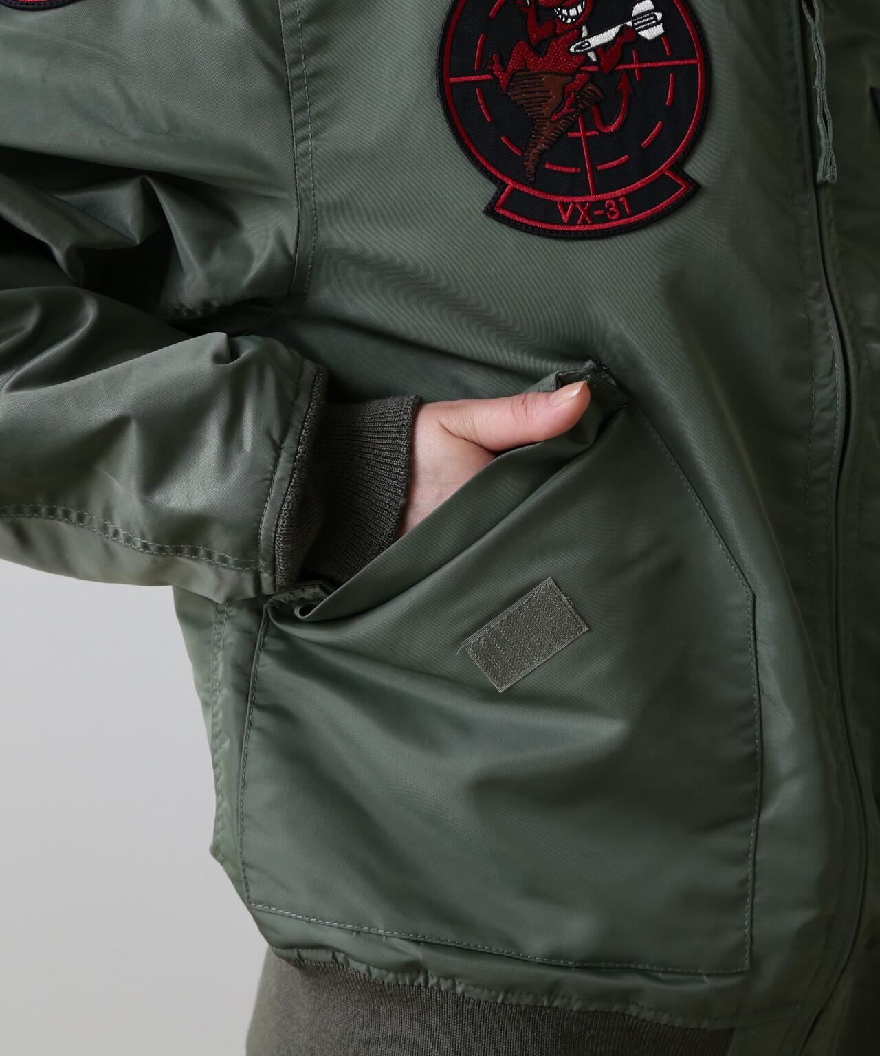 右袖上的補丁設計標誌著穿著者已從 "TOP GUN "畢業,左胸前的補丁設計是美國海軍的翼標和 AVIREX 徽標。左胸前的機翼標誌和 AVIREX 徽標的原始補丁設計,基本尺寸。