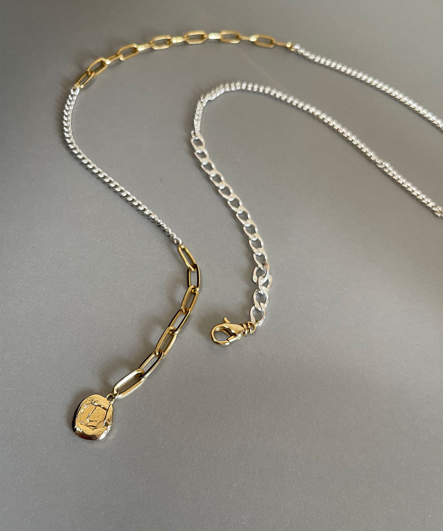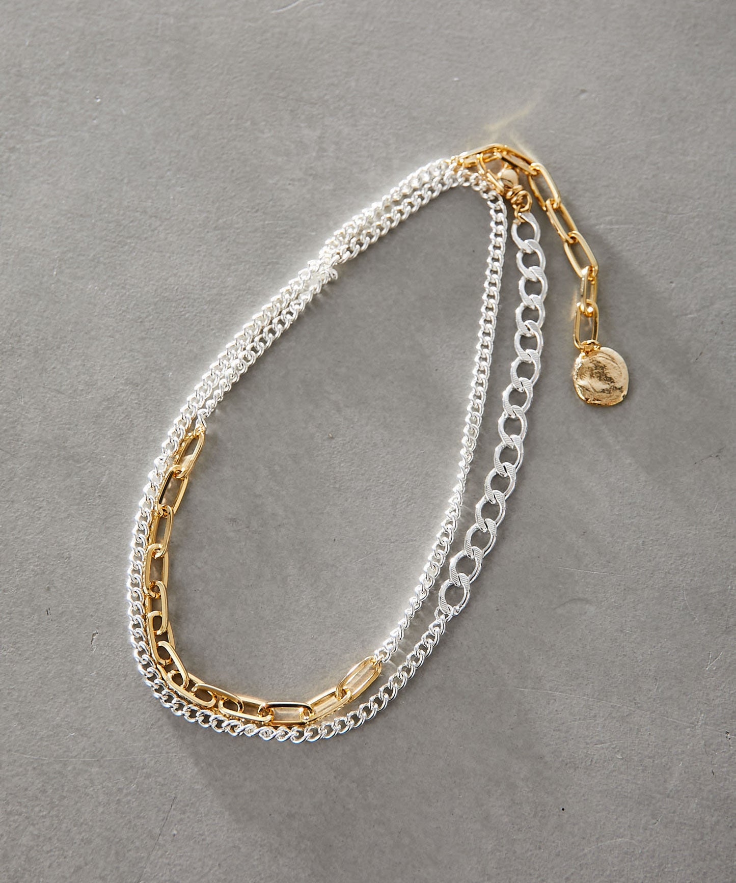 三種不同大小和顏色的鏈子組合在一起,使其成為疊加的好搭配。