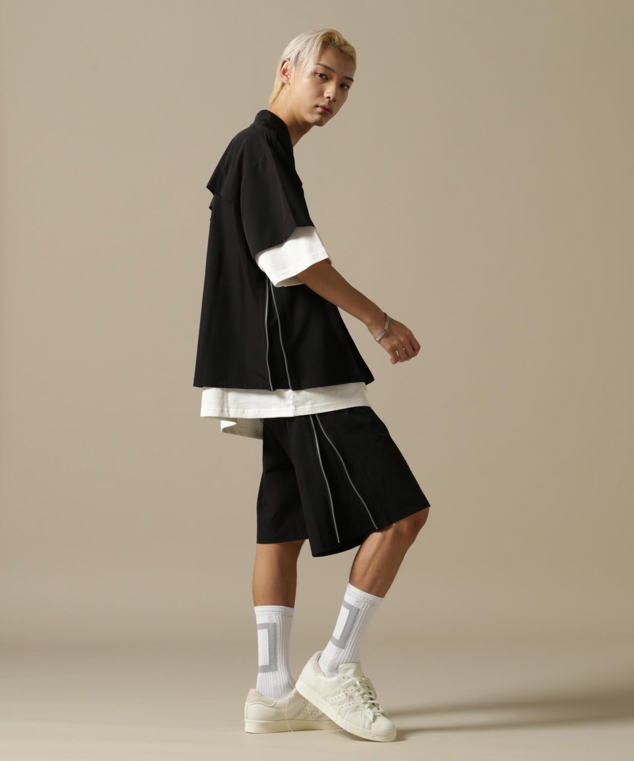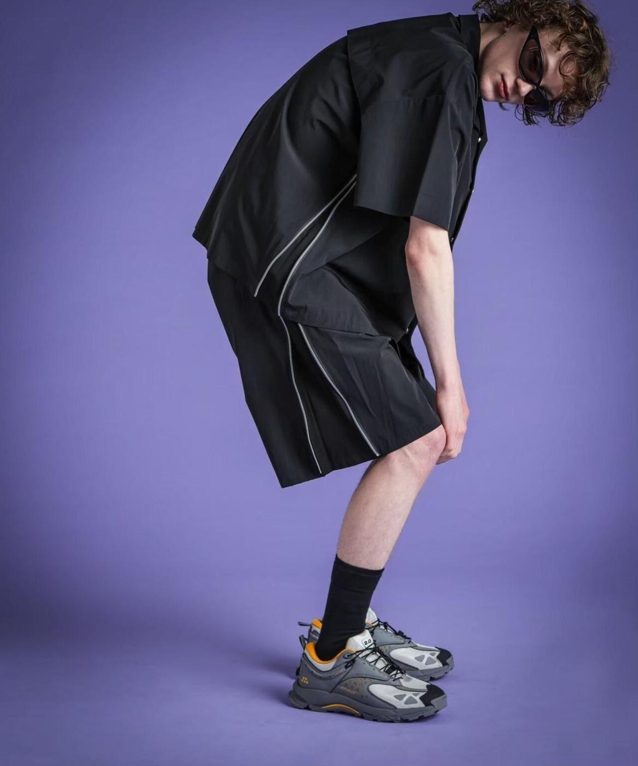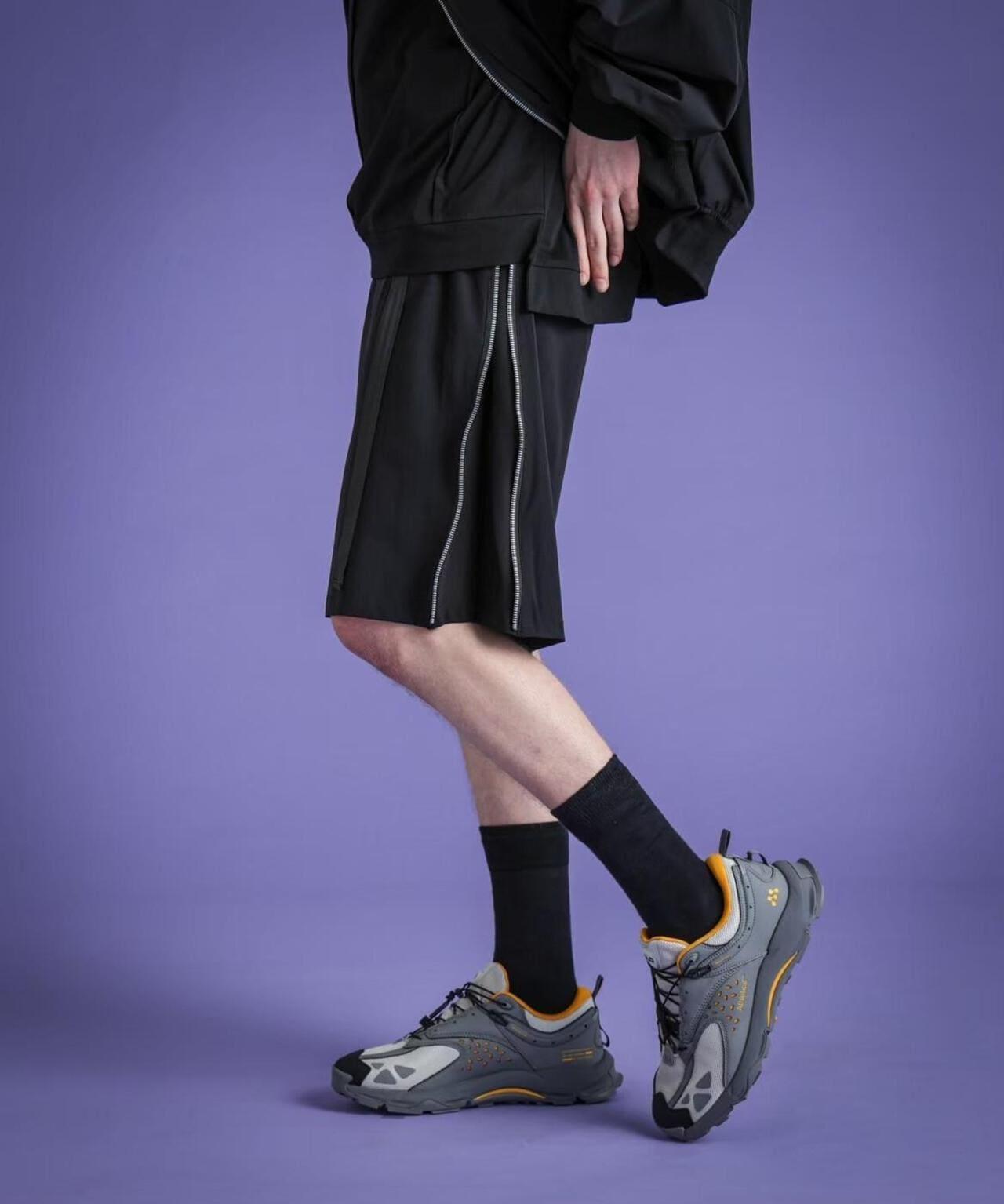 DankeSchon 側拉鍊短褲,尺碼寬鬆,外觀時尚。外側的銀色拉鍊是點睛之筆。長長的灰塵色抽繩可以垂下,營造出很好的氛圍。略深的內搭,採用廓形設計。網眼襯裡帶來出色的透氣性。DankeSchon ......DankeSchon是品牌的核心關鍵詞D digitaliy Digital A Architector Creator N Neologism New Expression K kittenish Mischief E Engrossing。首字母縮寫與德語 Schon 相結合,表達了品牌的意圖