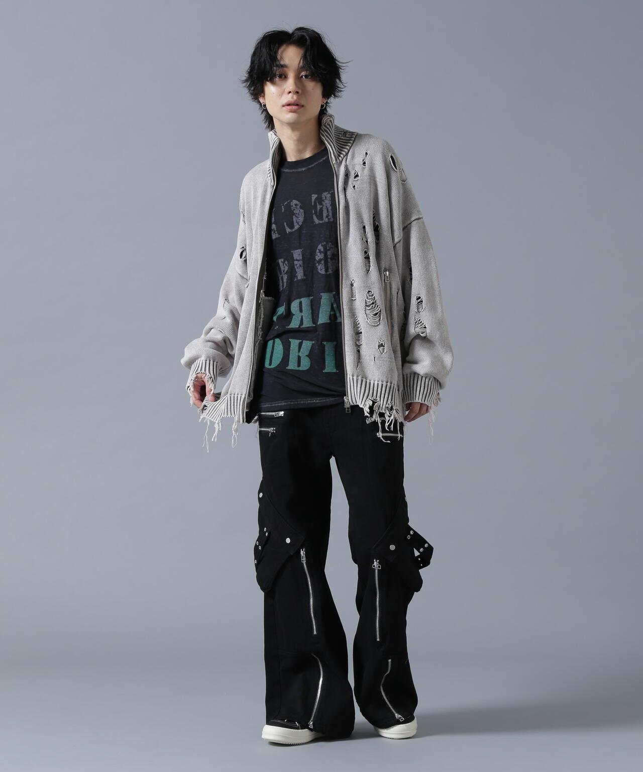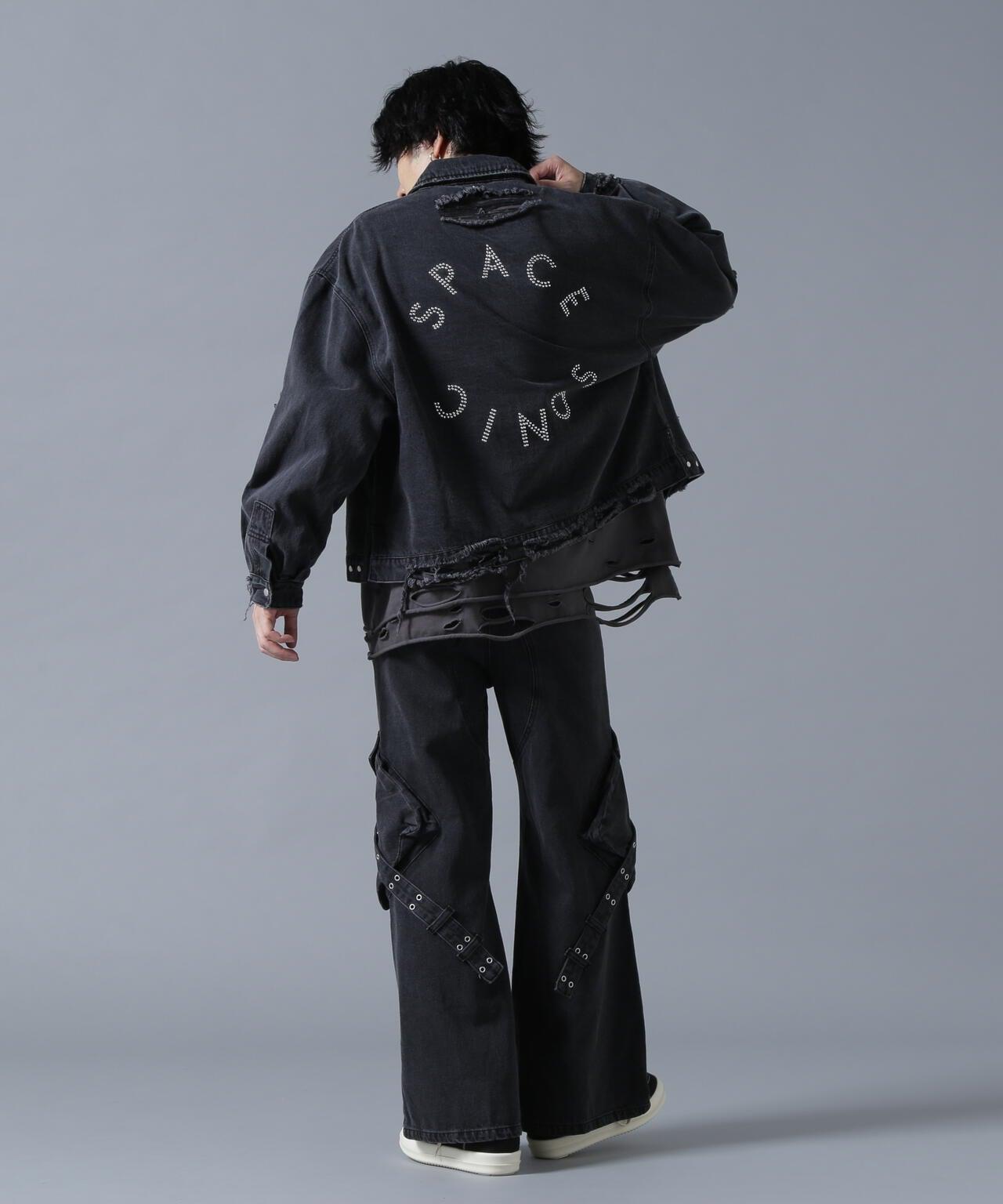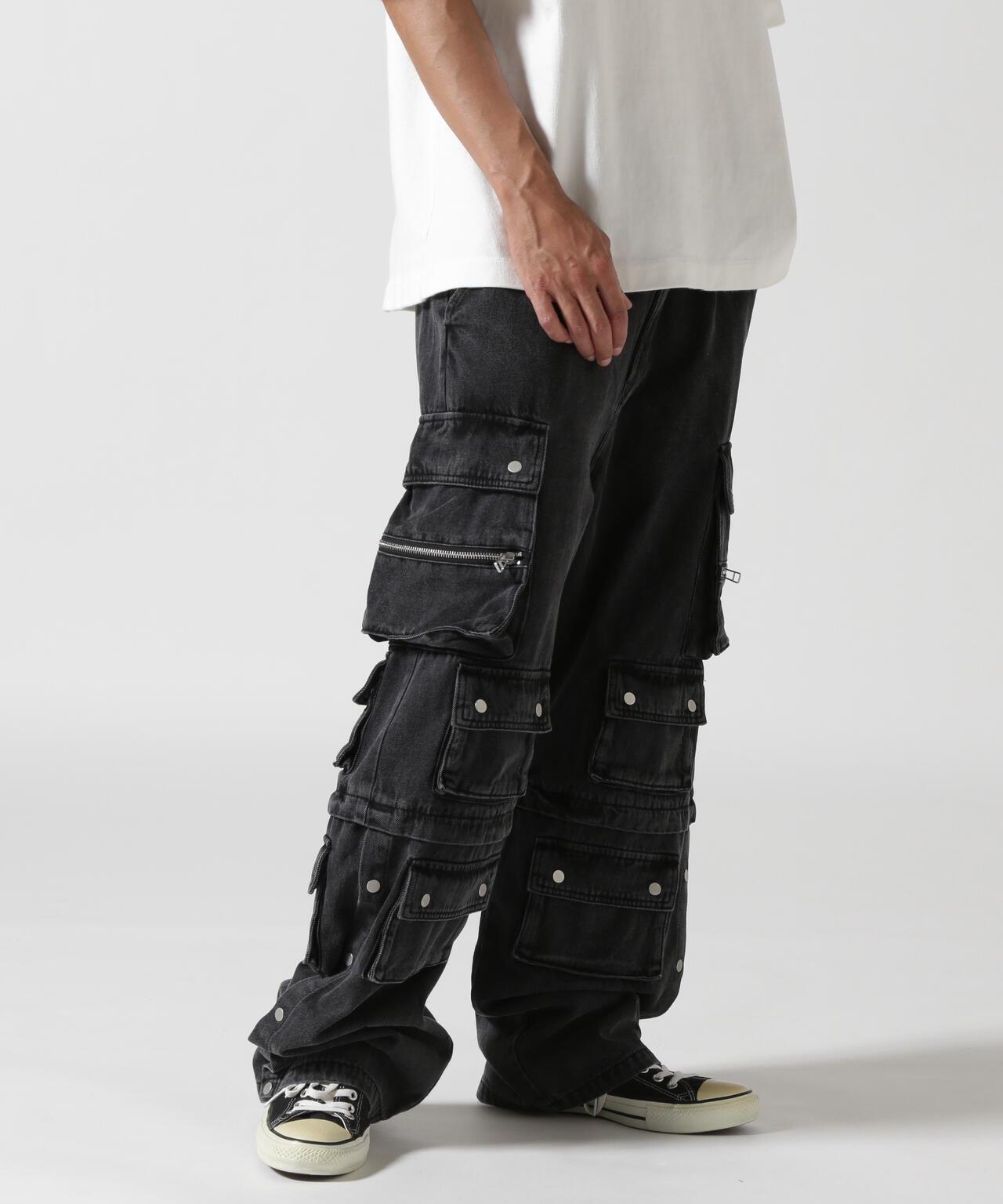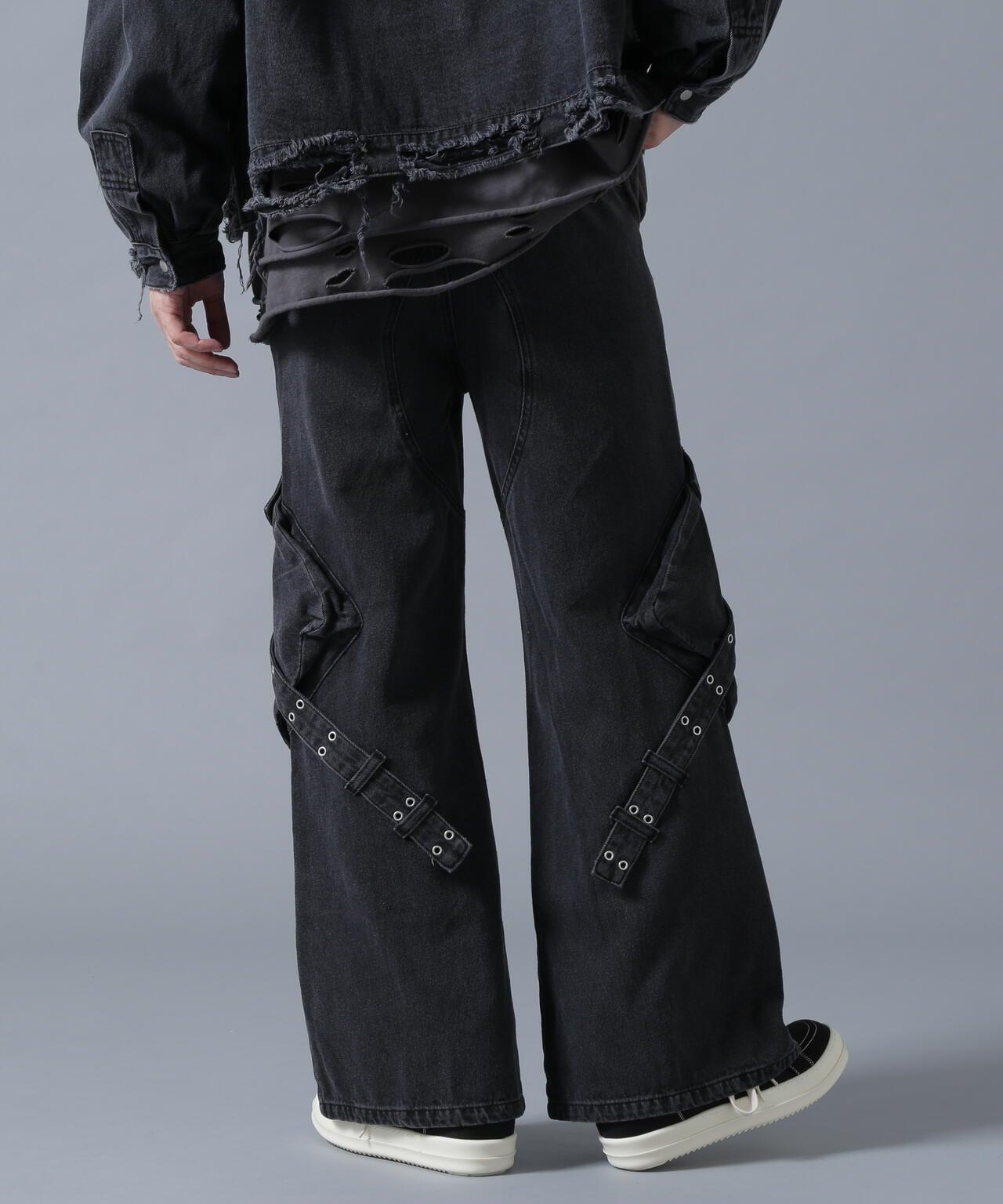 牛仔布貨褲,配有 DankeSchon 貨袋、拉鍊袋、拉鍊開衩、鴿子腰帶、金屬配件和醒目的點綴。尺碼恰到好處。喇叭形剪裁,下襬略微加寬。腰部內側的灰塵色抽繩設計使其可以不繫腰帶穿著。抽繩較長,因此也可垂下穿著,營造氛圍。kittenish pranksterE 令人著迷的令人費解的首字母縮寫詞