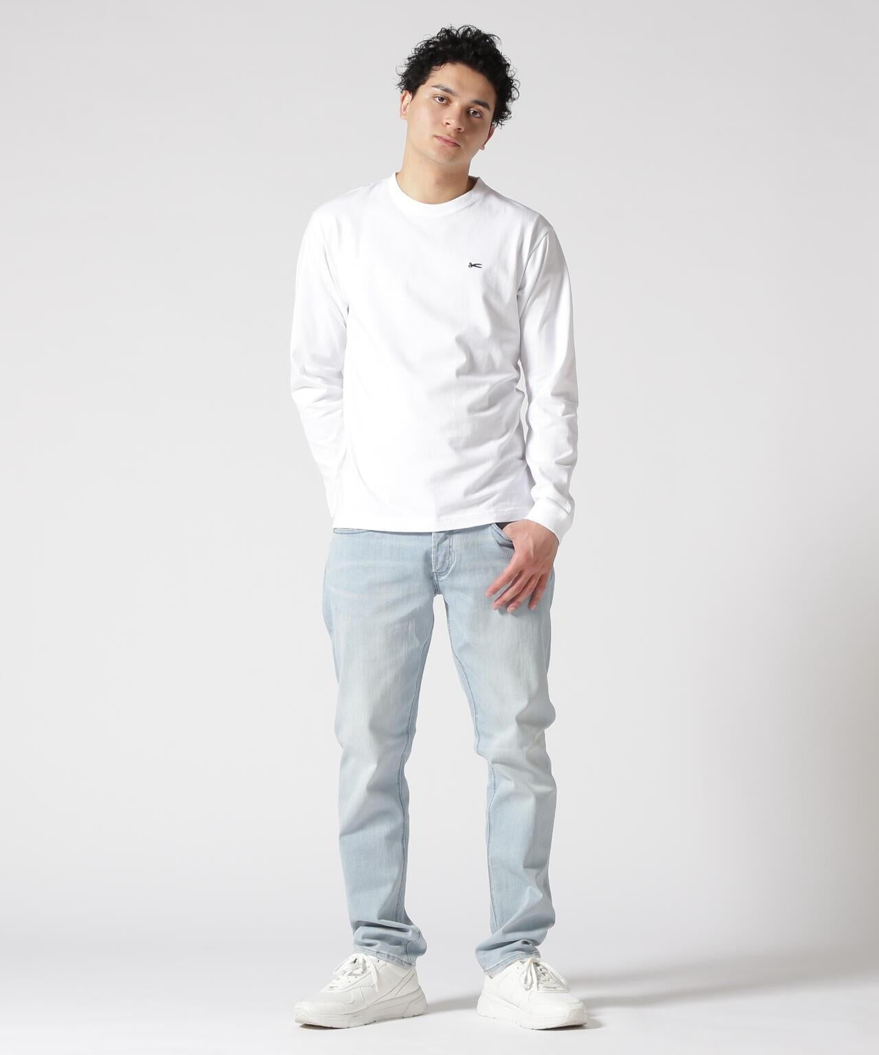 長袖 T 恤,胸前的剪刀印是一個微妙的點綴。領口和袖口採用羅紋設計,穿著舒適。DENHAM DENHAM 於 2008 年在荷蘭阿姆斯特丹由國際知名的英國牛仔工藝大師 Jason Denham 創立。Jason 是一位紳士風度和紳士藝術的大師。Jason 以將時尚主義與英式無政府主義相結合而聞名,曾與英國👍設計師 Joe Casley - Hayford 合作。