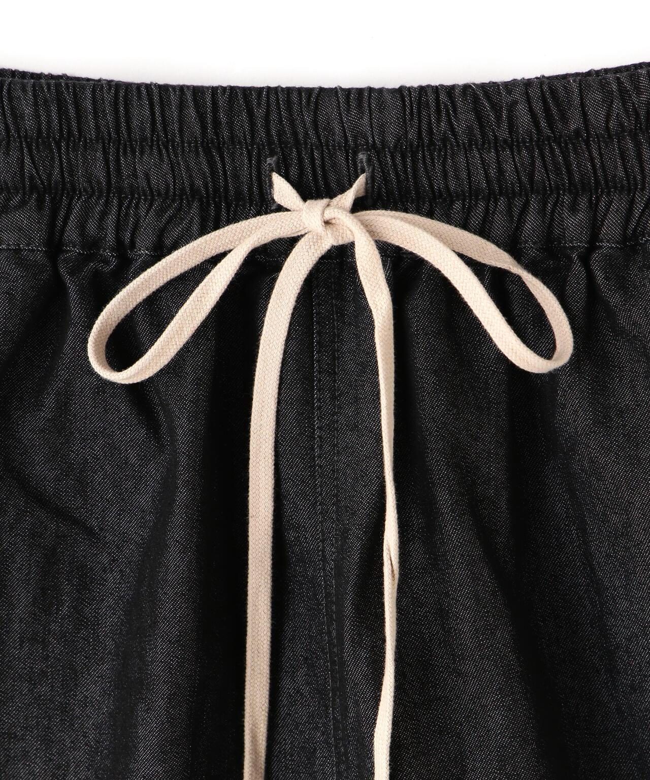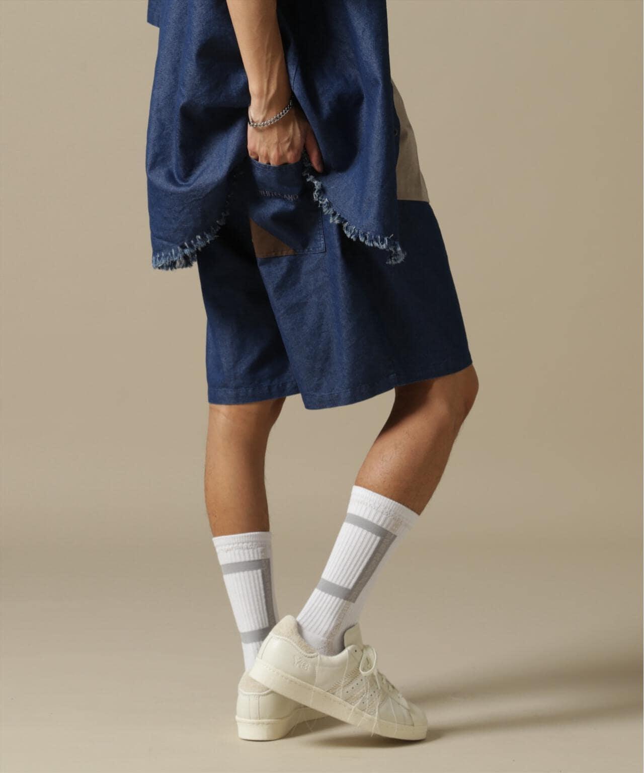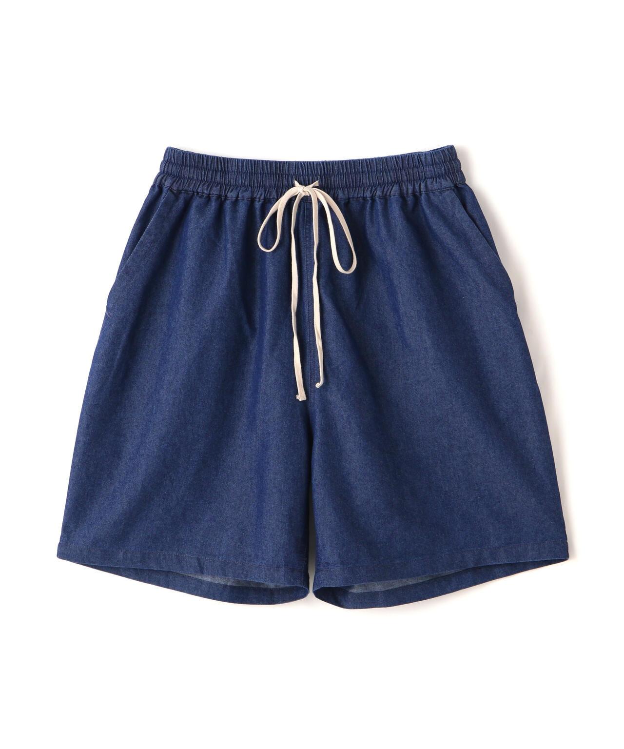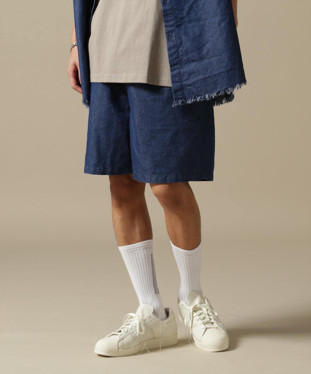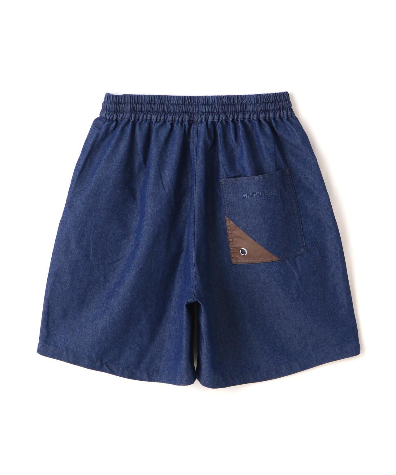 WHITELAND 寬版牛仔短褲。後口袋採用開關設計,並印有品牌簽名。略帶光澤的薄面料營造出清涼的氛圍。腰部鬆緊設計。長防塵領的抽繩也可垂下,營造更輕鬆的造型。既可單獨穿著,也可與同款牛仔襯衫搭配。WHITELAND......始於 14S/S 的 LHP 限量預售品牌。該品牌的主題是混合模式氛圍和趨勢,所有設計都具有透明感,同時注重細節。