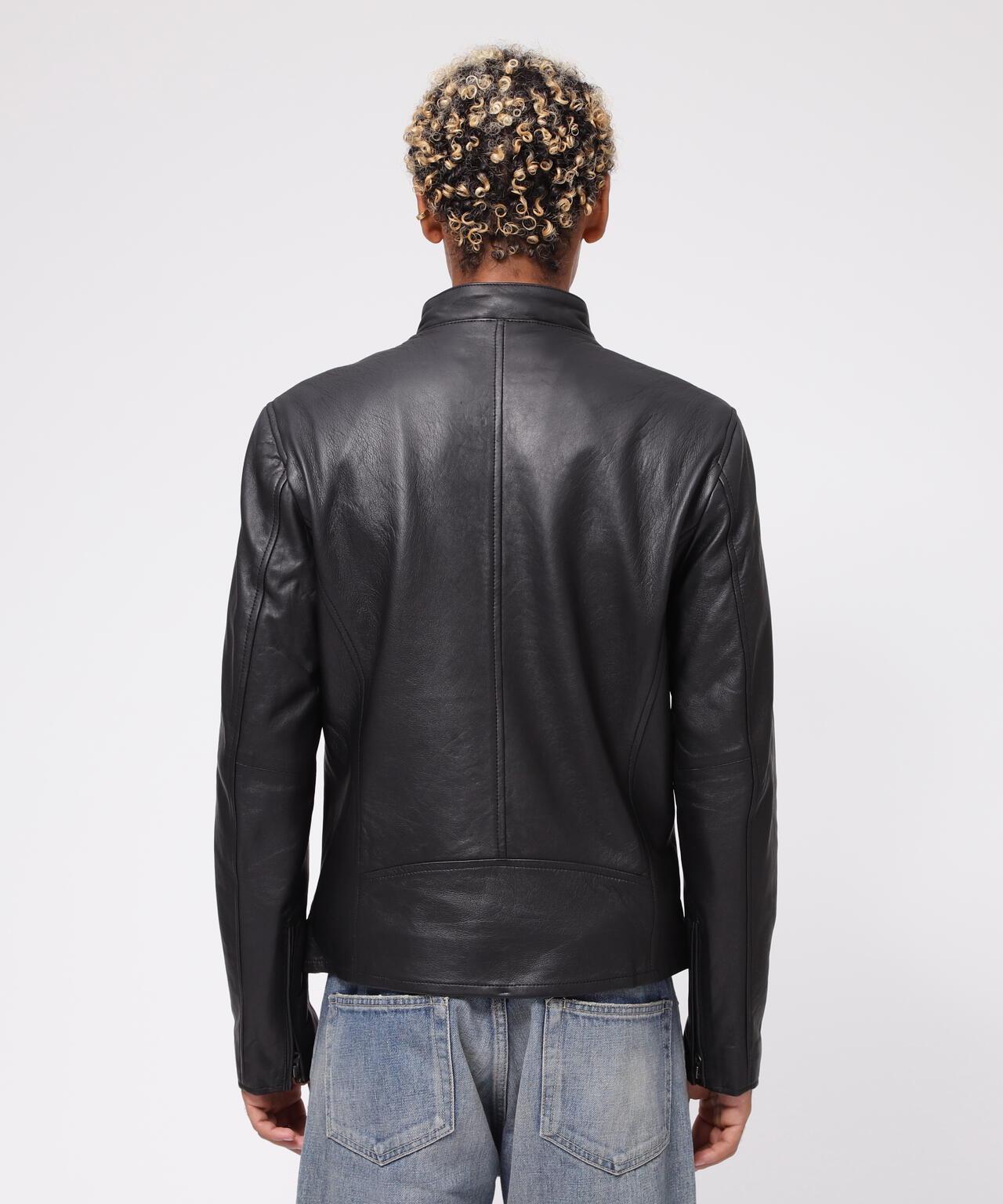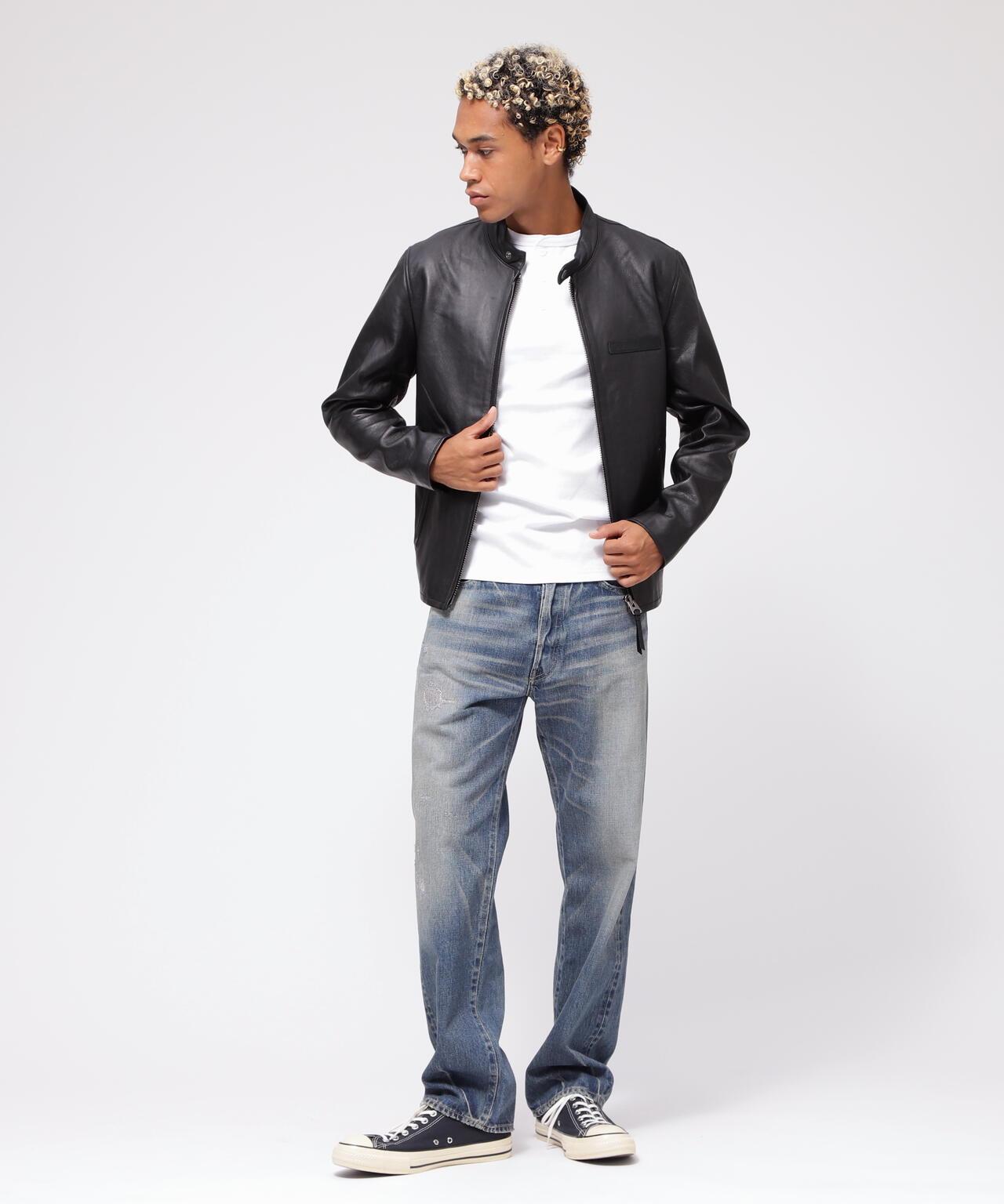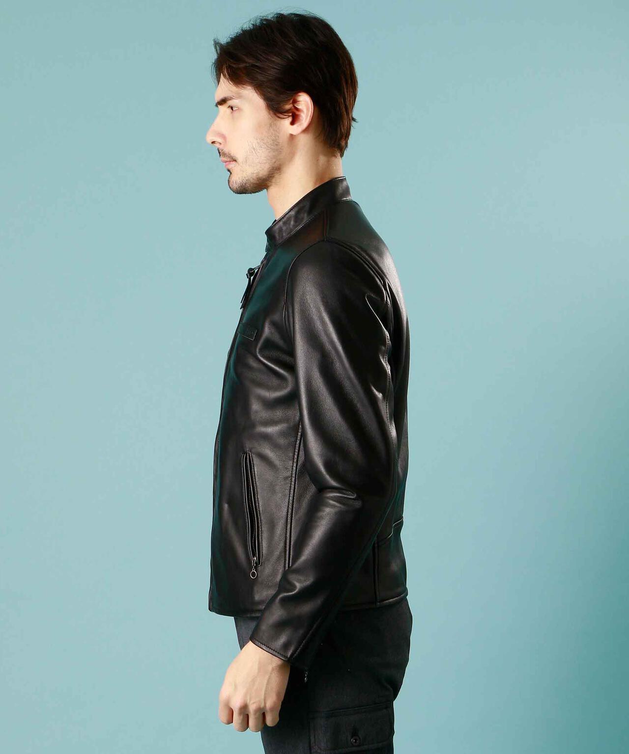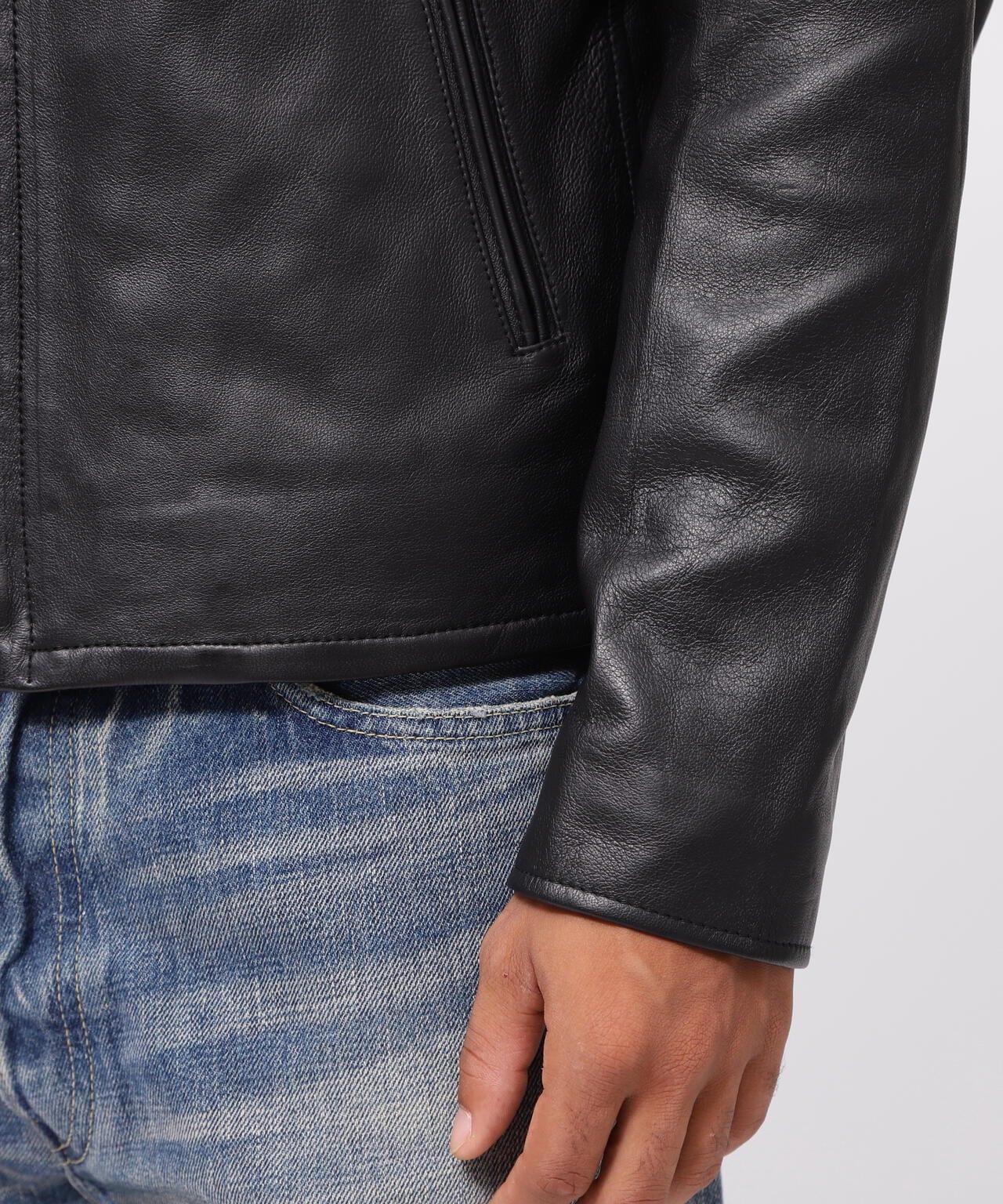 這是一款單人騎手款式的簡約騎手款式,軍裝風格的銘牌給人一種 AVIREX 的感覺。所使用的羊皮質地細膩,厚度適中,穿著柔軟舒適。原皮、細節和尺碼都保持在👍限度,因此可以在城市中隨意穿著,是一款適合所有年齡段男女的易穿單品。