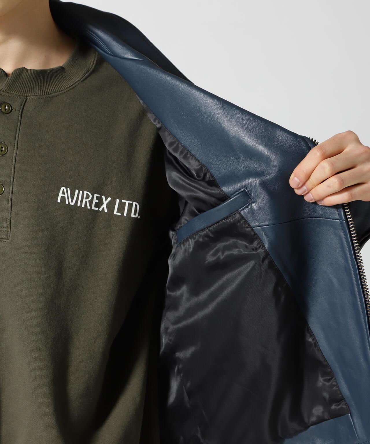 WEB&DEPOT 獨有的柔軟羊皮款式 - 產品描述 - 面料由經過植物鞣製和鉻鞣處理的羊皮製成。鉻鞣工藝的柔軟性和耐用性與植物鞣工藝的結實性和彈性相結合,隨著時間的推移,羊皮的光澤和紋理會逐漸加深。口袋:左胸和兩側有內袋和拉鍊口袋。袖口可用拉鍊調節。這是一款細節充滿魅力的連衣裙,如袖子的製作消除了不必要的空間感,便於活動,增加了手臂的活動範圍,並採用了便於活動的飛行夾克肩部設計。[AVIREX] 對比一些飛行夾克。