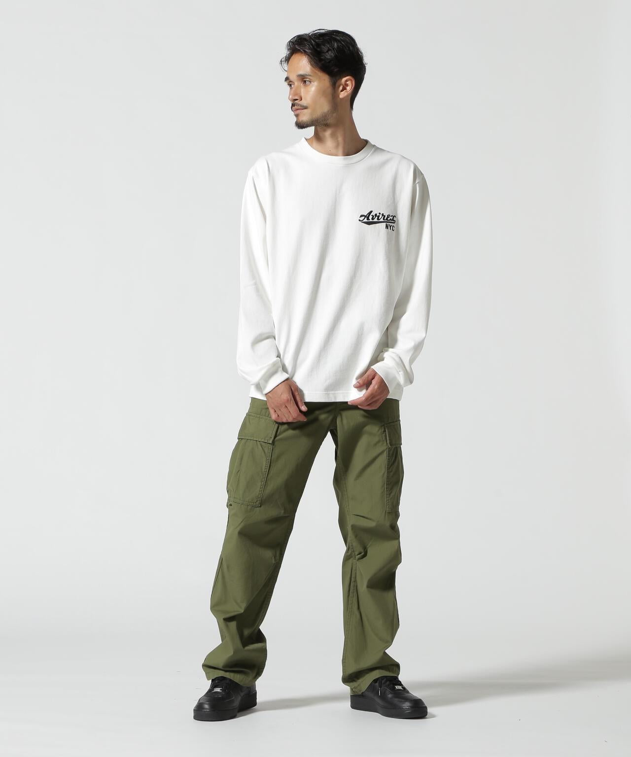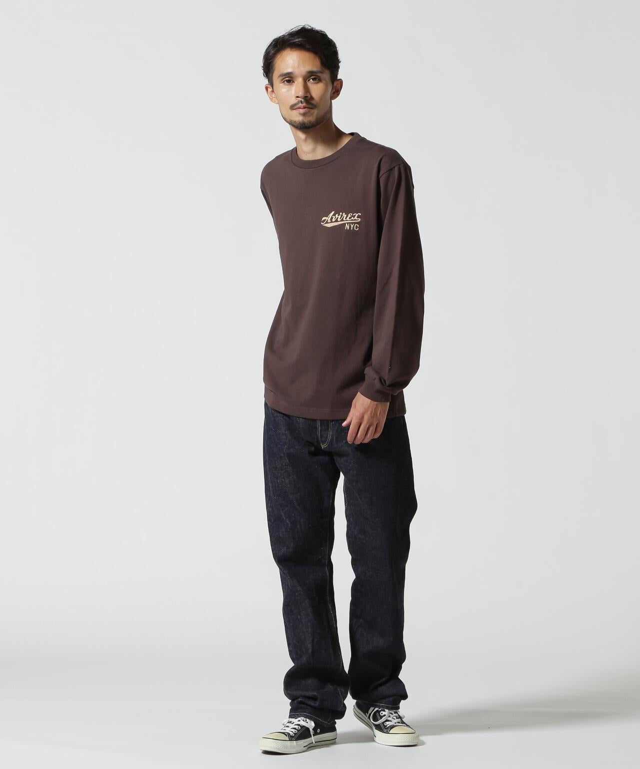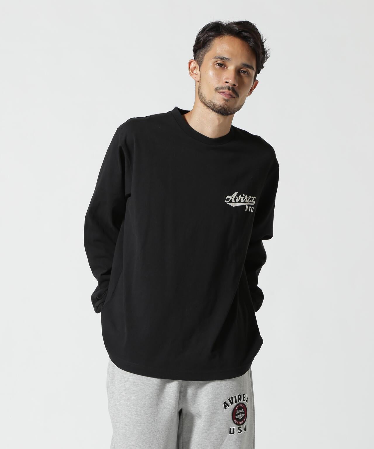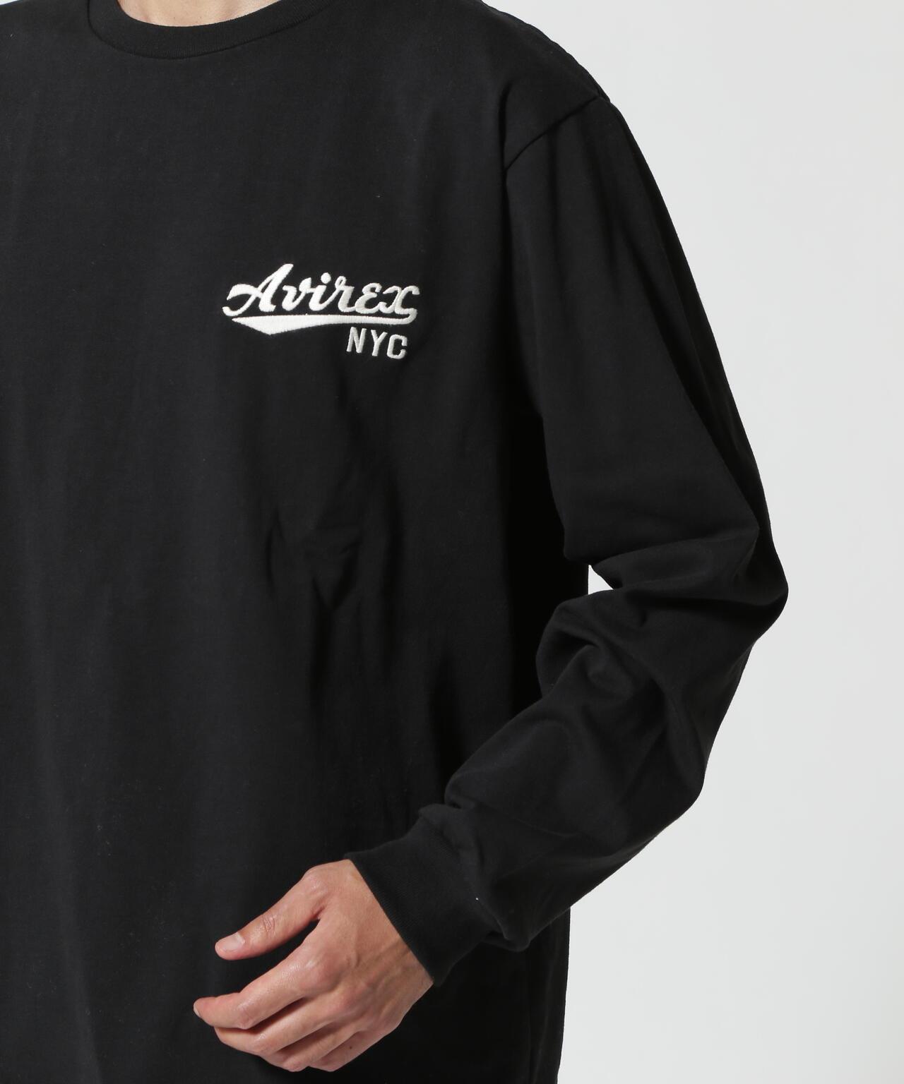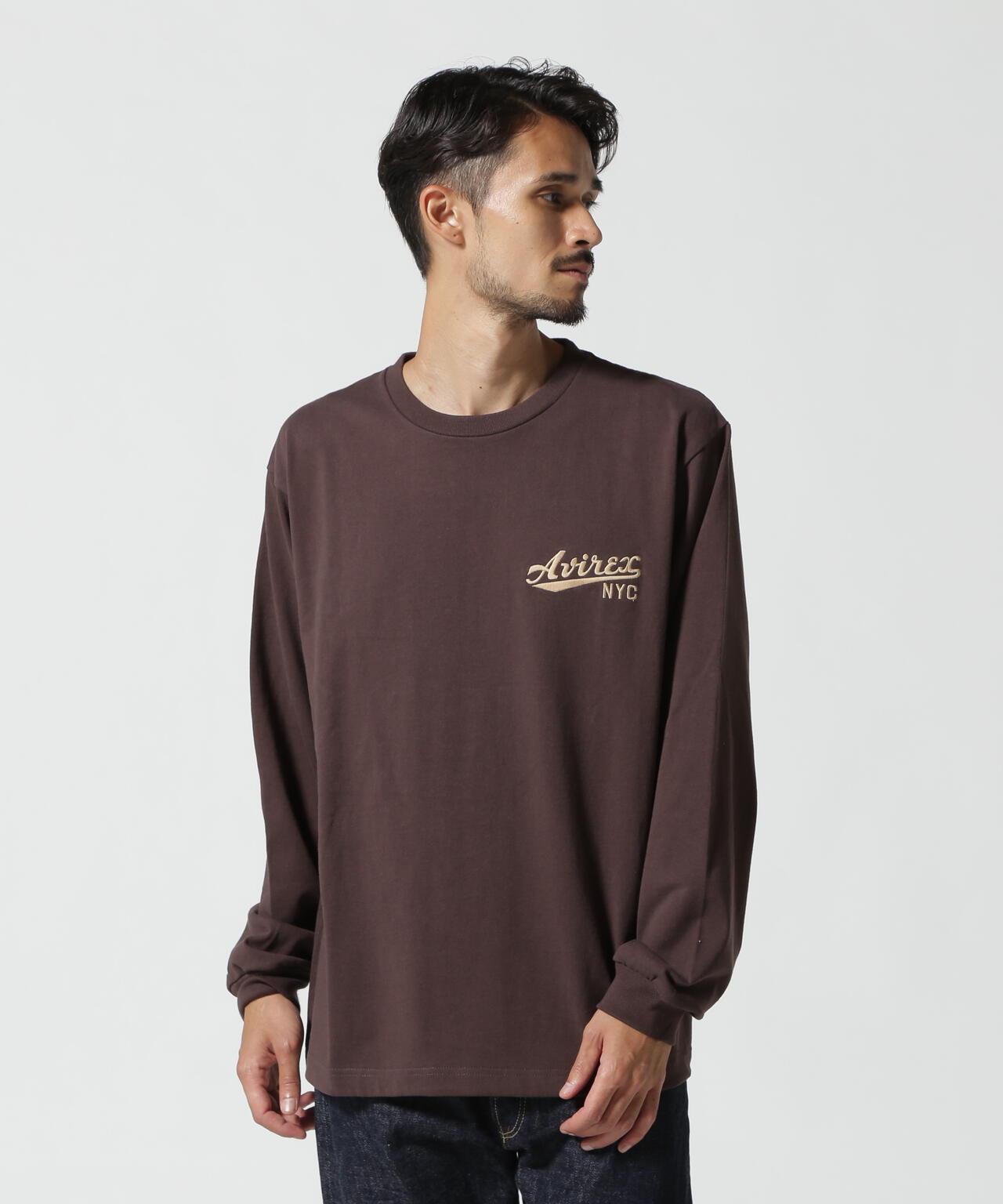 EXCLUSIVE款長袖T恤,WEB STORY專賣商品詳情 - 採用純棉針織面料的原創長袖T恤 - 左胸前繡有字體設計的品牌標誌 - 後幅以繡花貼飾立體表現品牌標誌、在印花中排列星條旗的立體感設計,笙名置於右下襬,常規版型,黑、白、深棕、深綠四色開發 [AVIREX / AVIREX] 成立於 1975 年,作為美國空軍的承包商,通過供應飛行夾克獲得了一定程度的認可。通過供應飛行夾克,公司的知名度大幅提升。Avirex 起源於軍事,其功能性設計散發著與眾不同的美感。